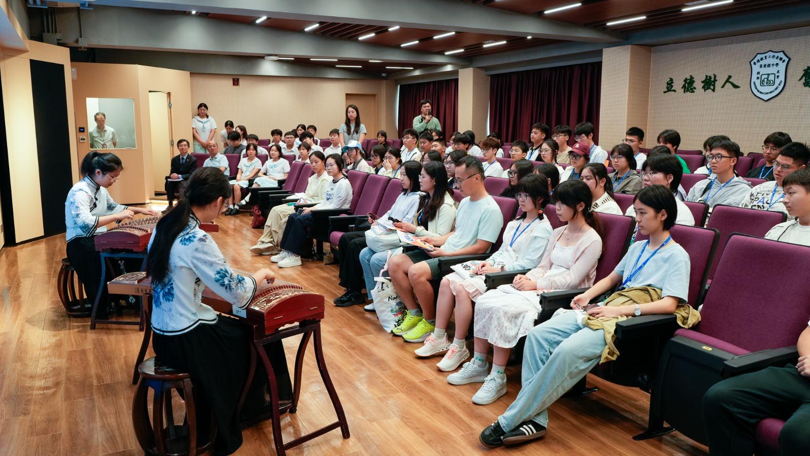 歡迎儀式正式開始,黃楚標中學許振隆校長致歡迎辭,向南京市溧水區第二高級中學團委書記宛玲女士、李剛老師及全體師生表示熱烈歡迎。許校長詳細介紹了學校的辦學理念與特色課程,強調兩地教育交流對青少年增進了解、厚植友誼的重要意義,真摯的話語贏得全場熱烈掌聲。儀式上,黃楚標中學的學生們以才藝展演為交流添彩。中二學生蕭善芝現場演繹太極與劍術,一招一式舒展流暢,展現中華傳統武術的剛柔並濟;中三學生林苡彤與劉紫晴則以古箏合奏《雲之南》,將祖國西南的壯麗風光娓娓道來。兩場表演不僅是才藝的展示,更為兩地師生架起了文化溝通的橋樑,讓南京師生深切感受到中華文化在港澳校園的生動傳承。