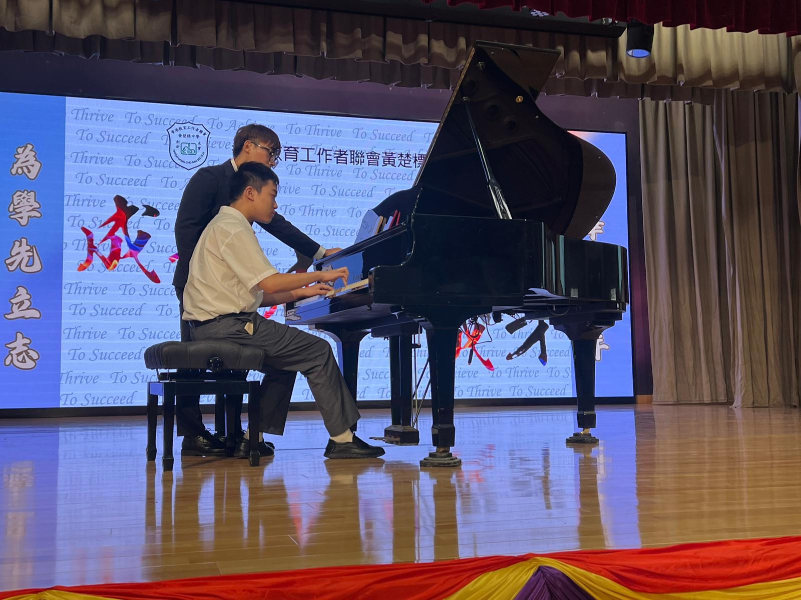 林校友當日演奏了蕭邦《敘事曲》、《瀏陽河》、宮崎駿動畫組曲及迪士尼經典金曲,展現精湛技巧與豐富感染力。隨後他分享學習音樂的心路歷程,強調「堅持」的重要性,並鼓勵學弟妹「在熱愛中持續成長」。除此之外,林校友還親身指導校內鋼琴學子,從指法到情感表達給予專業建議,使學弟學妹獲益良多。