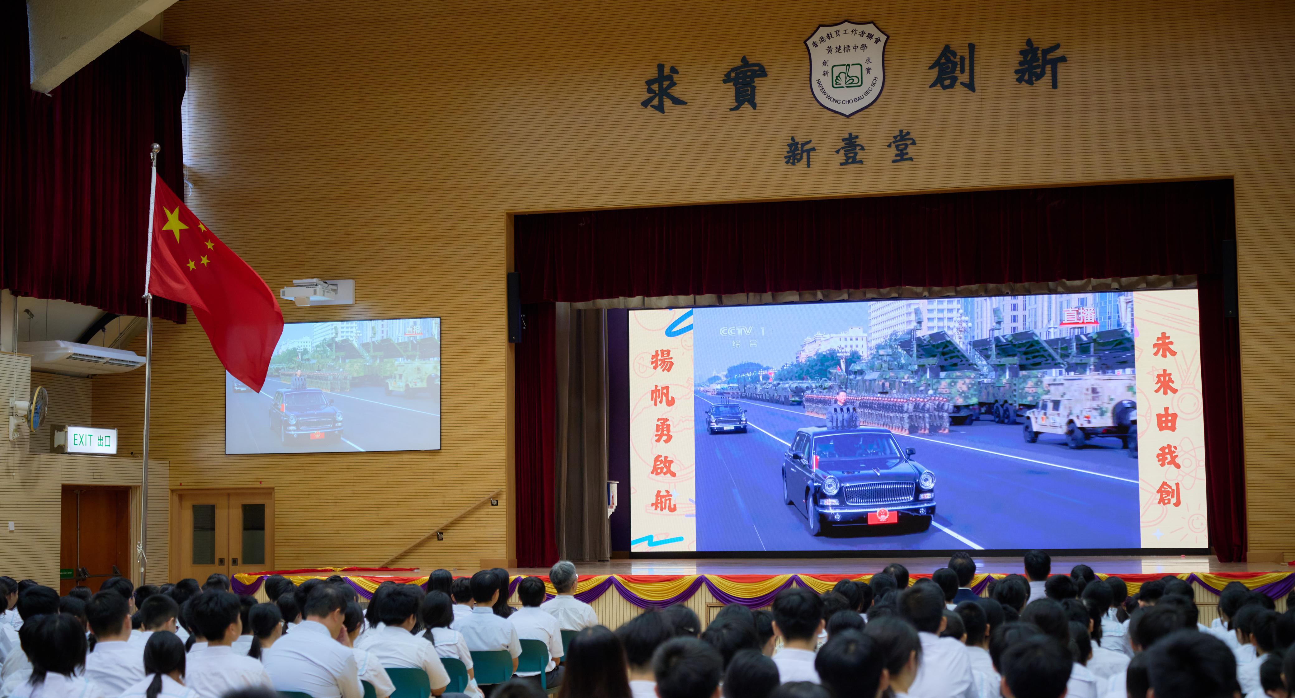 早會時段,我們進行了簡單而隆重的升旗儀式 🇨🇳,校長國旗下講話,回顧日軍侵華和14年抗戰的歷史📖,並提醒學生銘記歷史、緬懷先烈、珍愛和平、開創未來。之後,全校師生一起觀看「紀念中國人民抗日戰爭暨世界反法西斯戰爭勝利80週年大會」(九三閱兵)的直播 📺。師生無不感嘆國家發展迅速及科技進步 🚀,亦被軍人們整齊的腳步、澎湃的氣勢,以及各種新型軍事設備所折服 🛩。觀看閱兵儀式後,學生們均表示以身為中國人自豪 😊,也明白國家富強才能保護自己,進而維護世界和平 🌏。