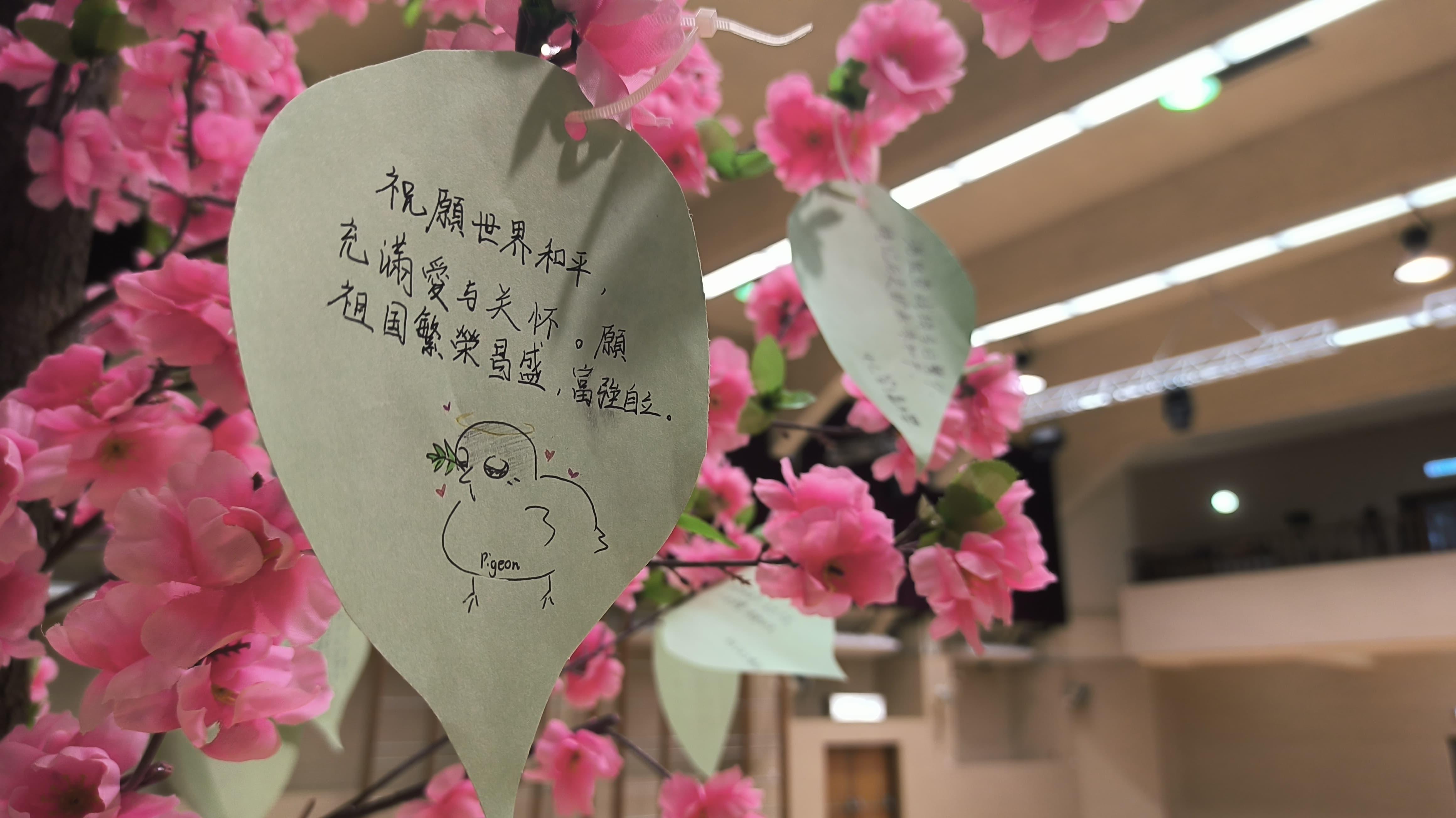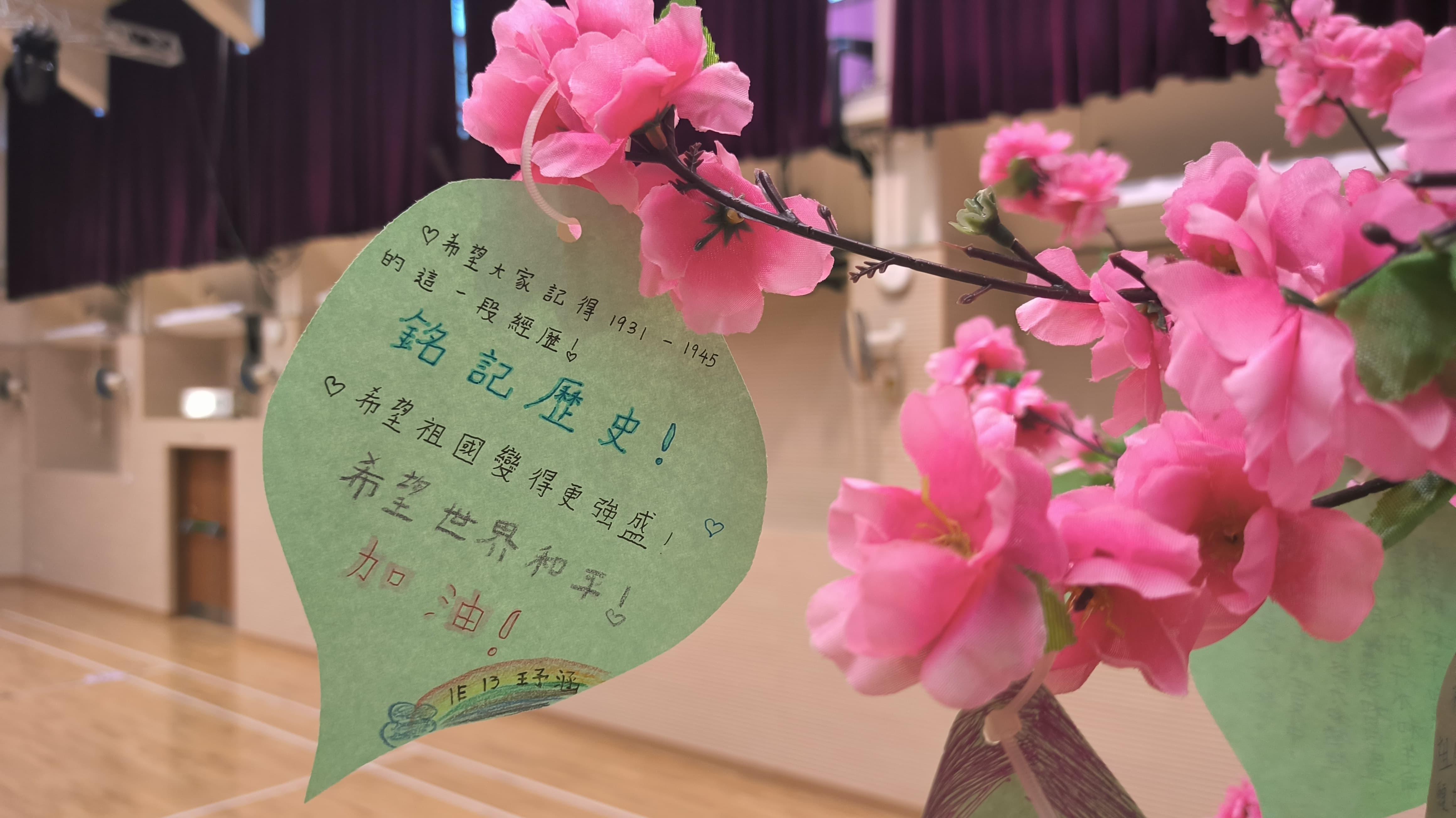 下午,我們舉辦了講座 📚,趙汝謙老師分享了多位抗日英雄的英勇事蹟,氣氛感人 ❤;鄭幗芬老師也圖文並茂地介紹了直播app在抗日戰爭中所發揮的作用與貢獻 🏙📖。學生聆聽後表示,這些資料平時較少機會接觸,講座讓他們加深了對抗日戰爭的認識,也對抗日先烈生起了更崇高的敬意 🙏。我們也舉辦了「珍愛和平祝願儀式」🕊,學生代表把對世界和平的祝願寫在樹葉上 🍃,掛上桃花樹 🌸,以表達對美好未來的期許 💫。最後,師生齊唱《恭喜恭喜》🎵,黃艷妮老師介紹這首歌曲的背景,讓學生認識到這首歌曲原來並不是新年歌,而是慶祝抗戰勝利的歌曲 🎶💡。學生們日後在新年時唱誦這首歌曲時,也會記起歌曲本義,甚有意思 。