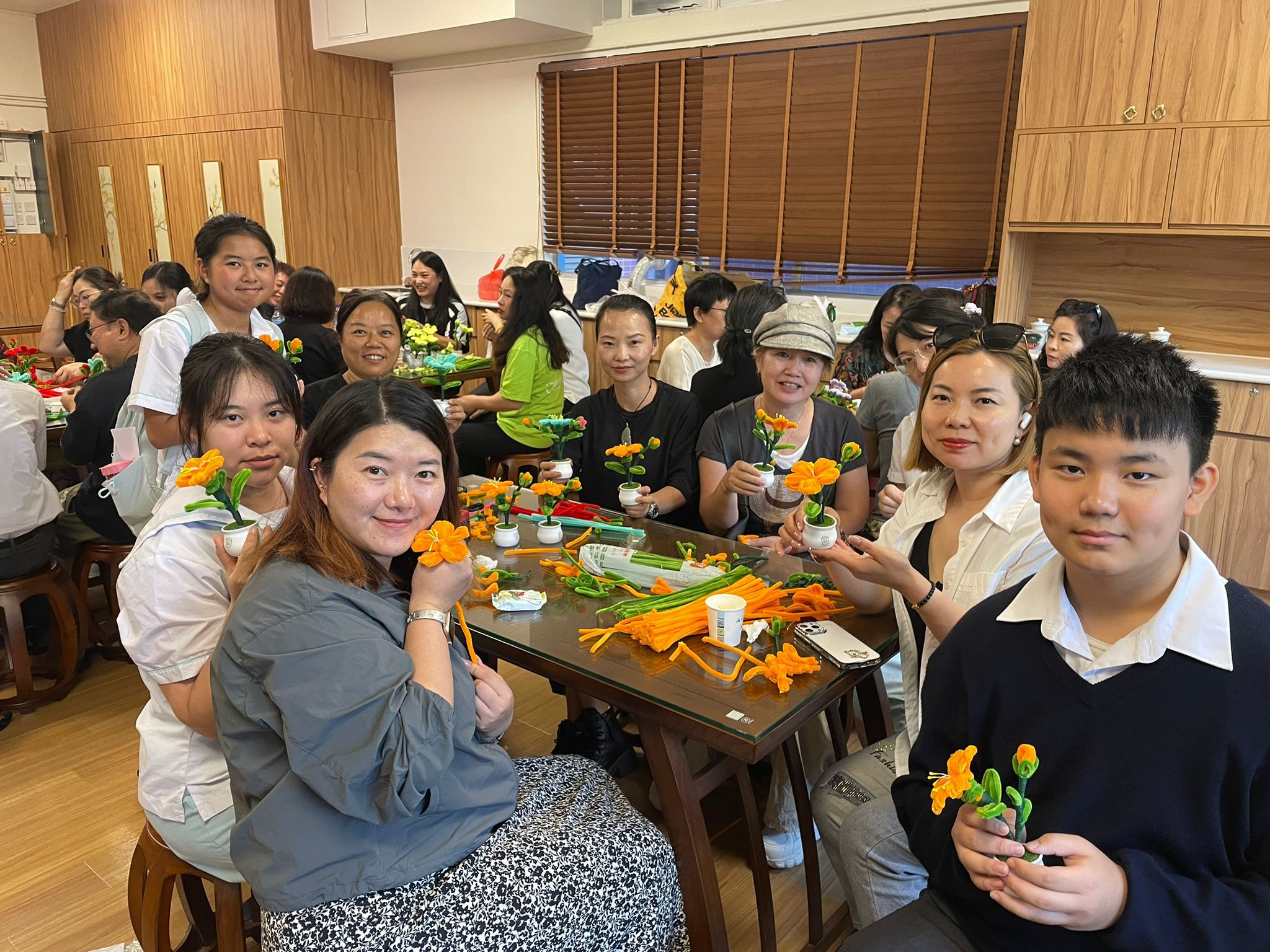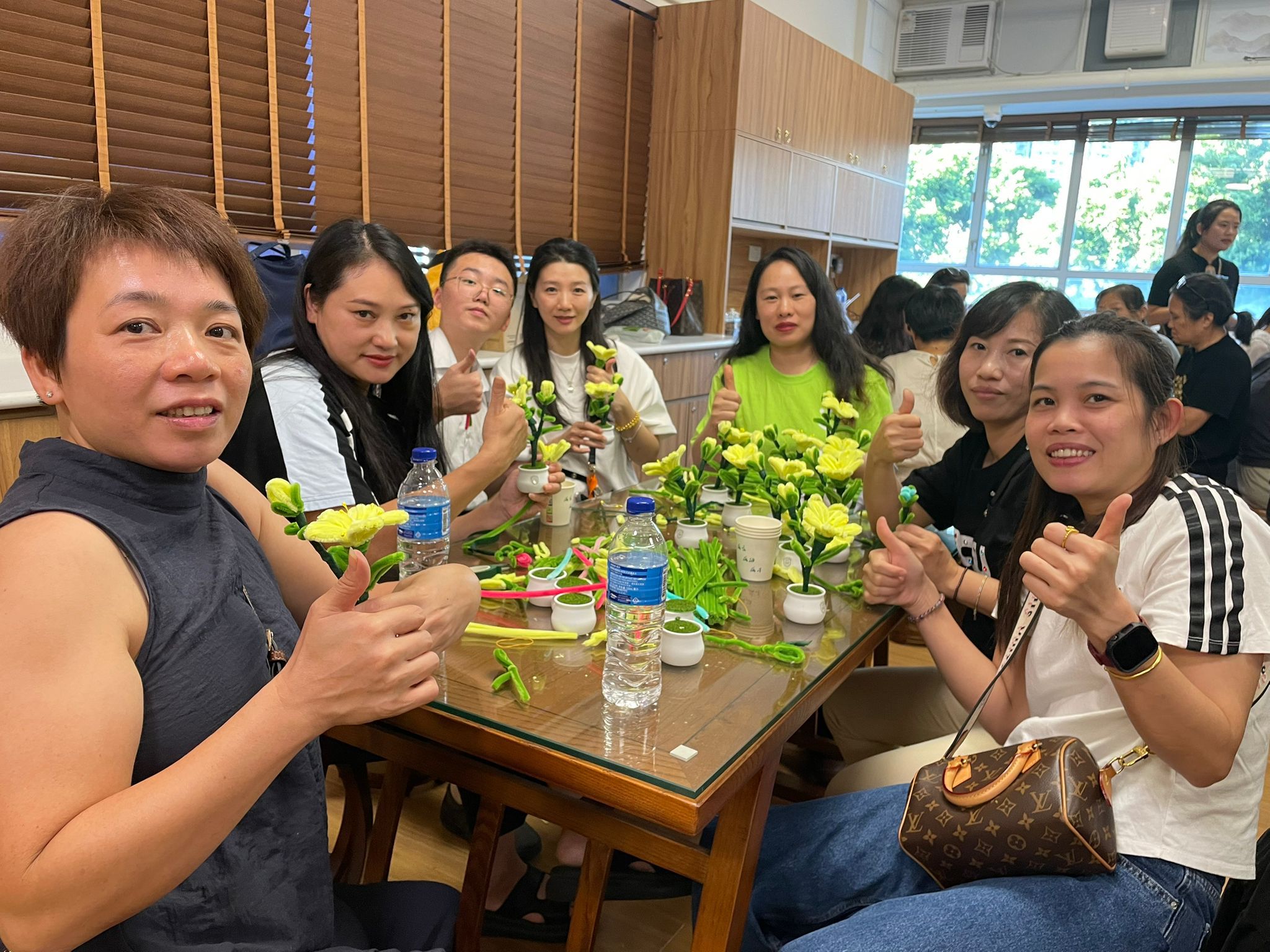 當天家長執委與二十多位家長義工齊聚一堂,在廖海英主席的耐心指導下,運用巧手製作永不凋謝的盆栽花卉🌺 從精心挑選花材、細心組合搭配到創意裝飾,每個環節都承載著對老師們的誠摯謝意💝