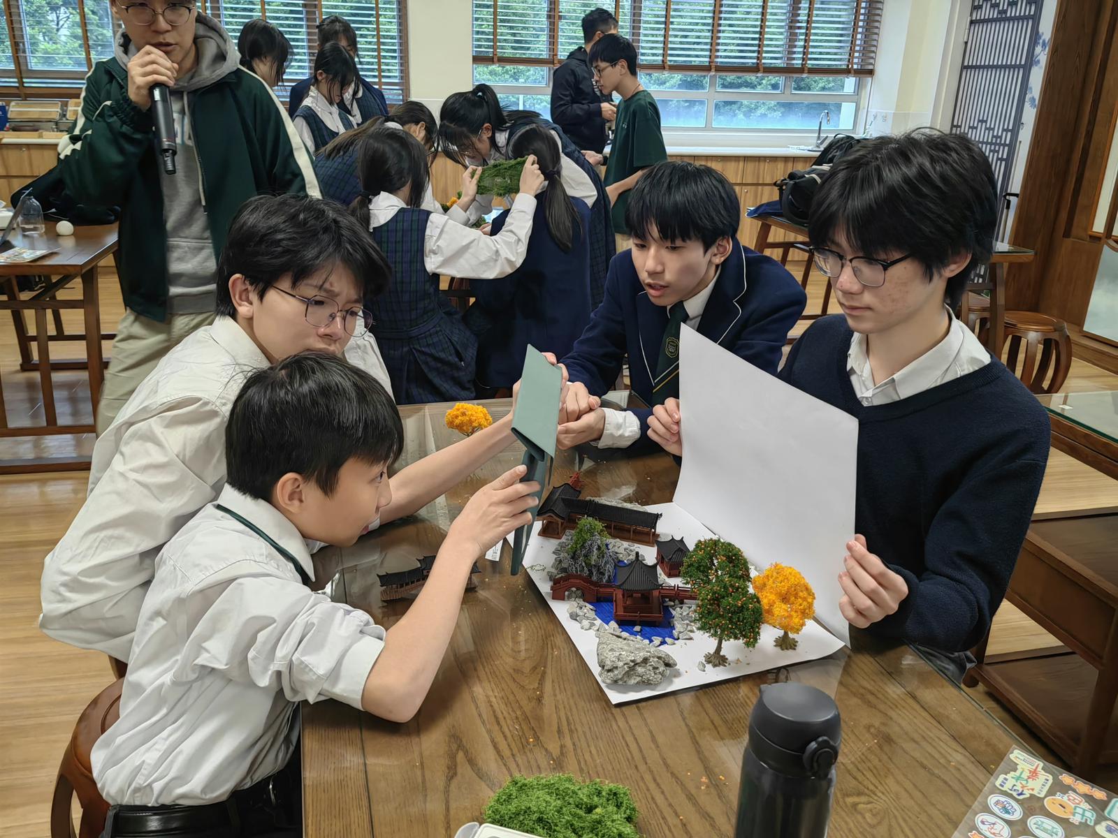 透過親手拼接微縮園林🌳模型,學生將詩詞中的意境化為立體景觀,在方寸之間再現「道法自然」的傳統智慧💡。每個精巧的亭台樓閣、小橋流水,都承載著學生對中華文化的理解與創意🎨