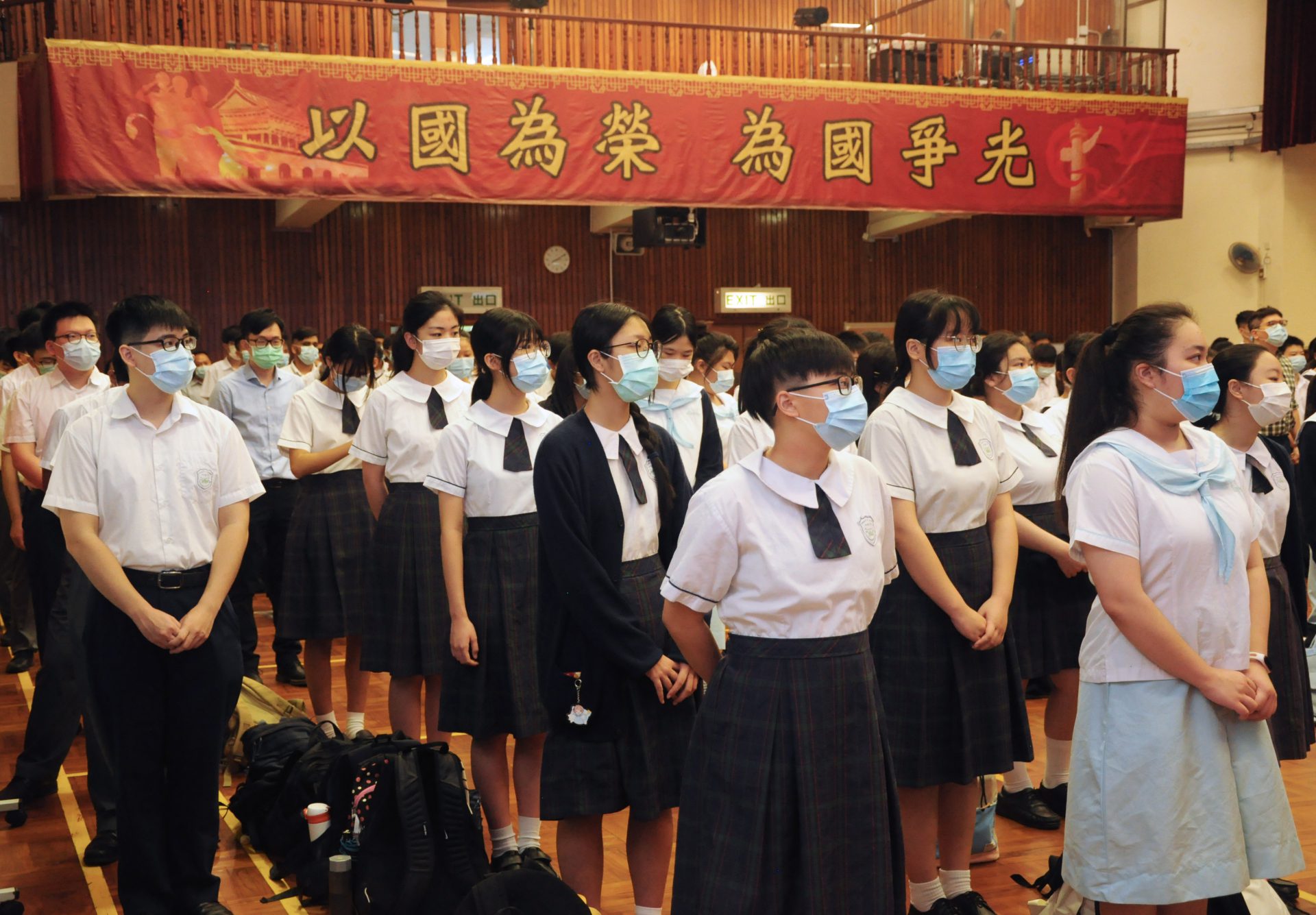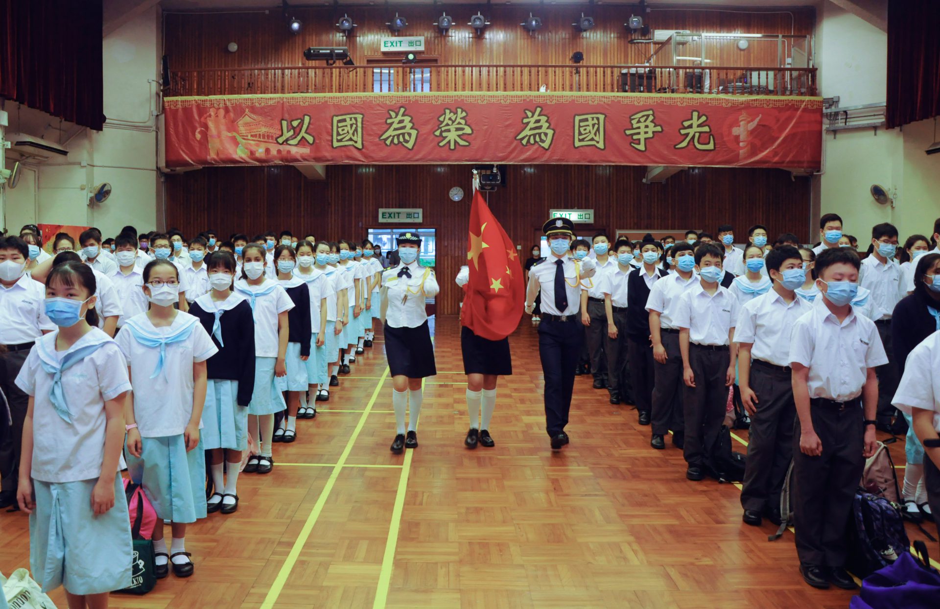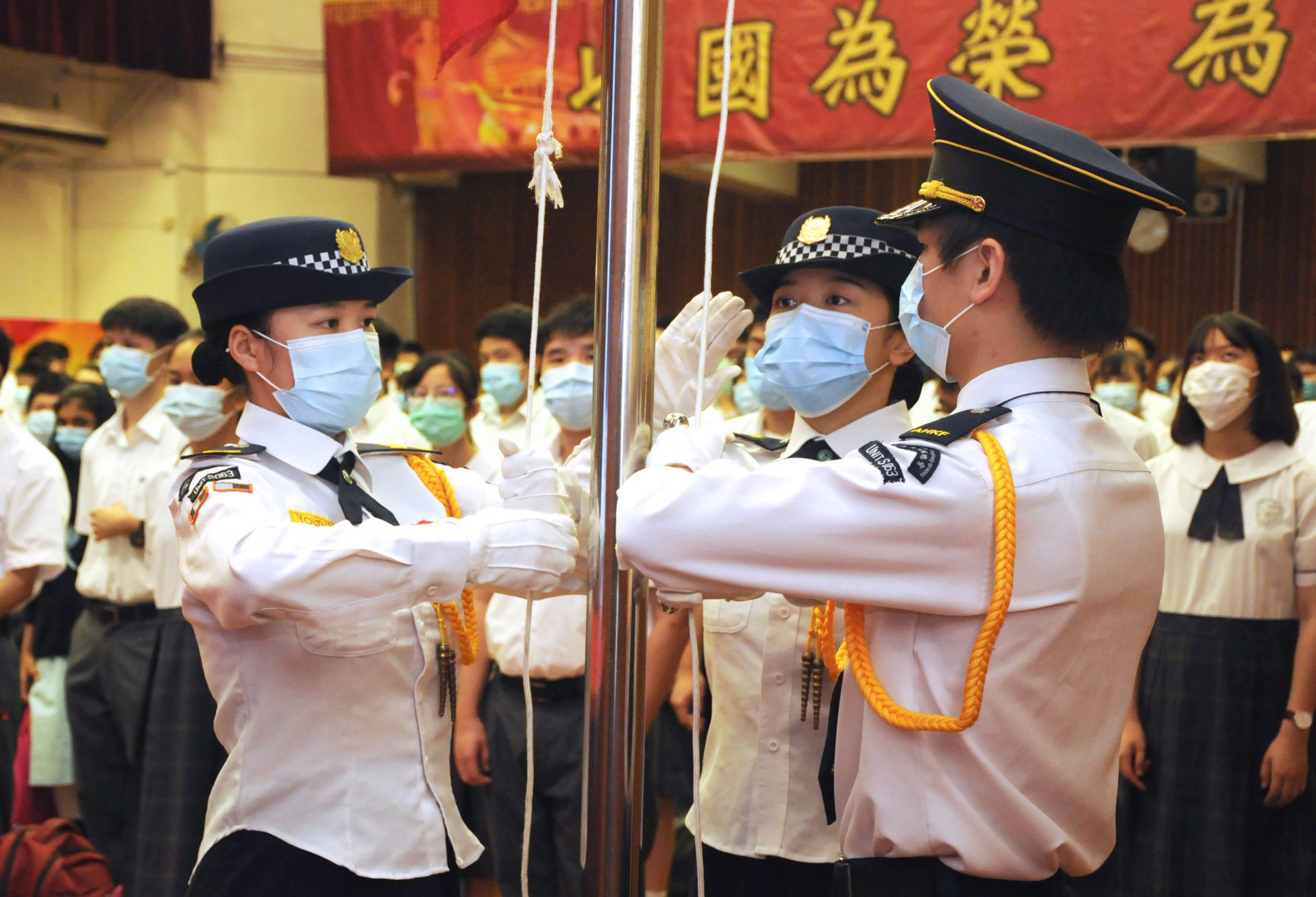 週一早會,鮮艷的國旗在標中禮堂飄揚