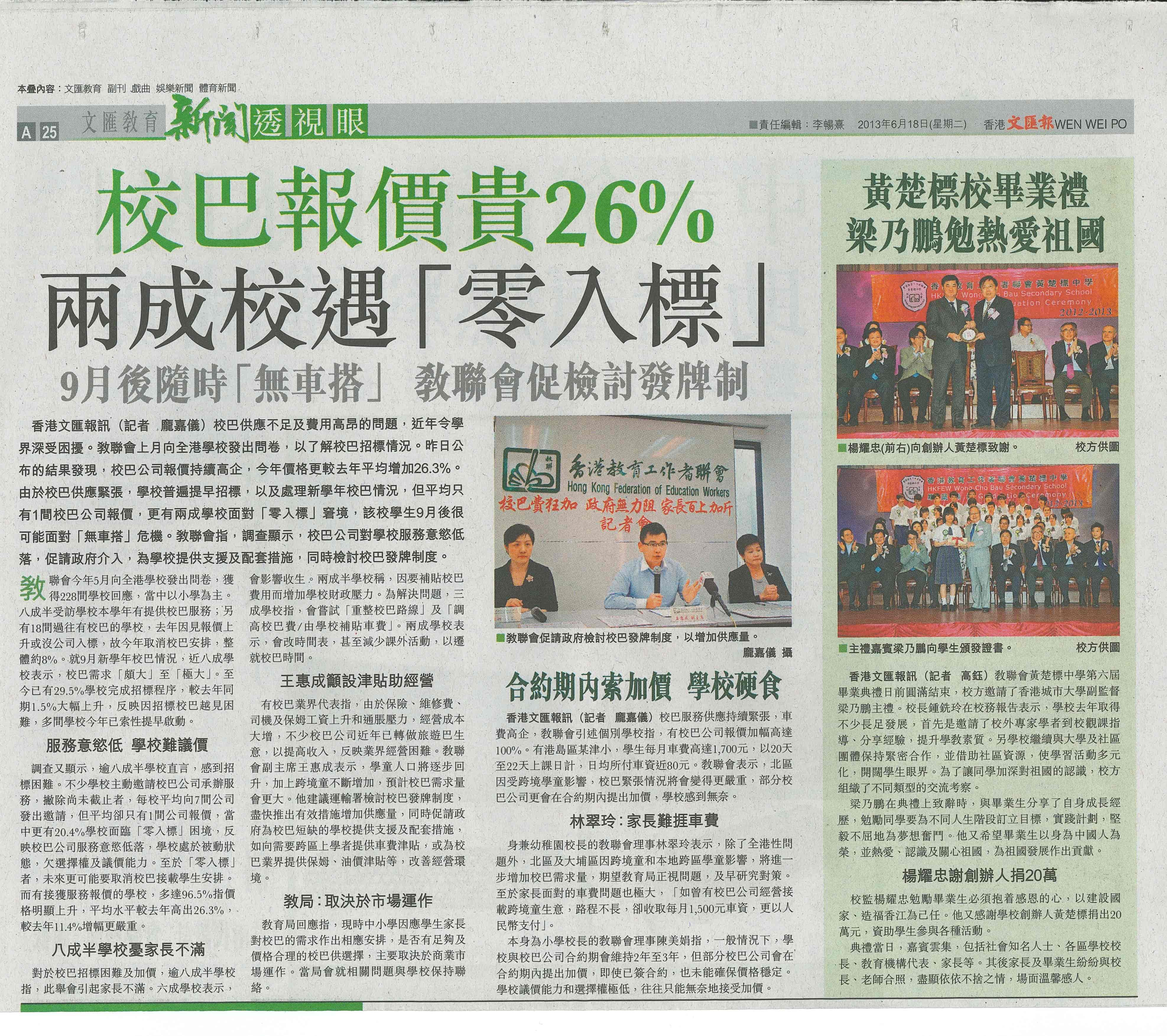 黃楚標校畢業禮梁乃鵬勉勵熱愛祖國(文匯報 18/06/2013)