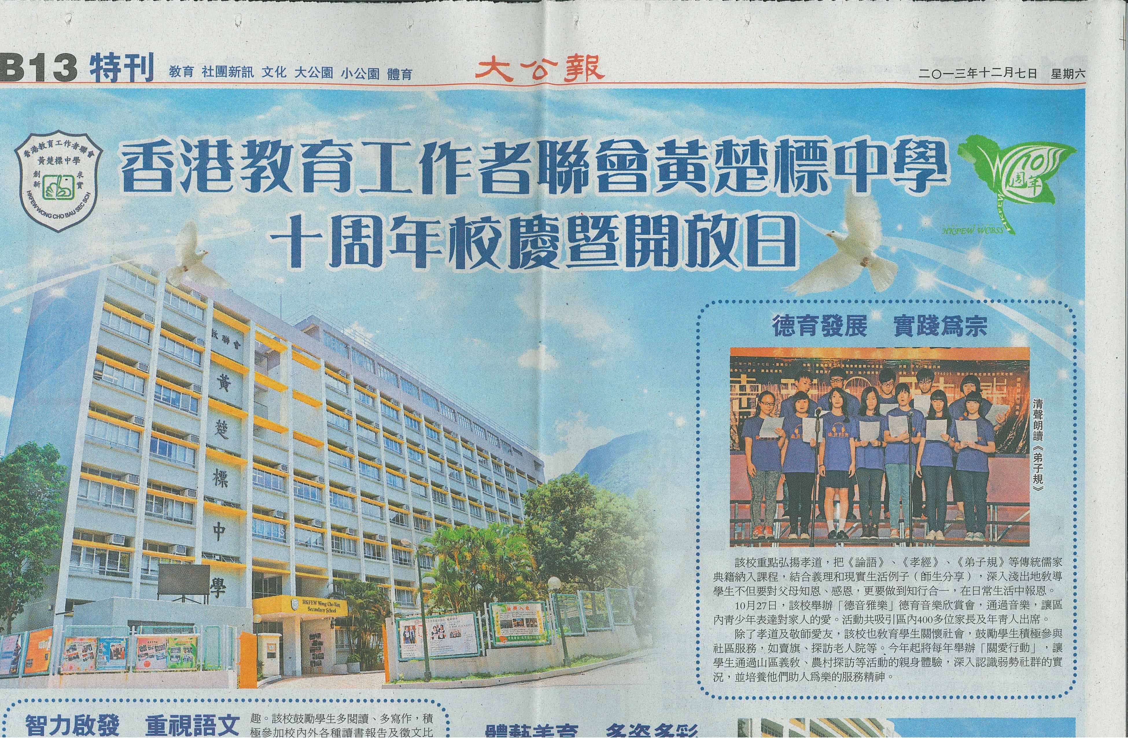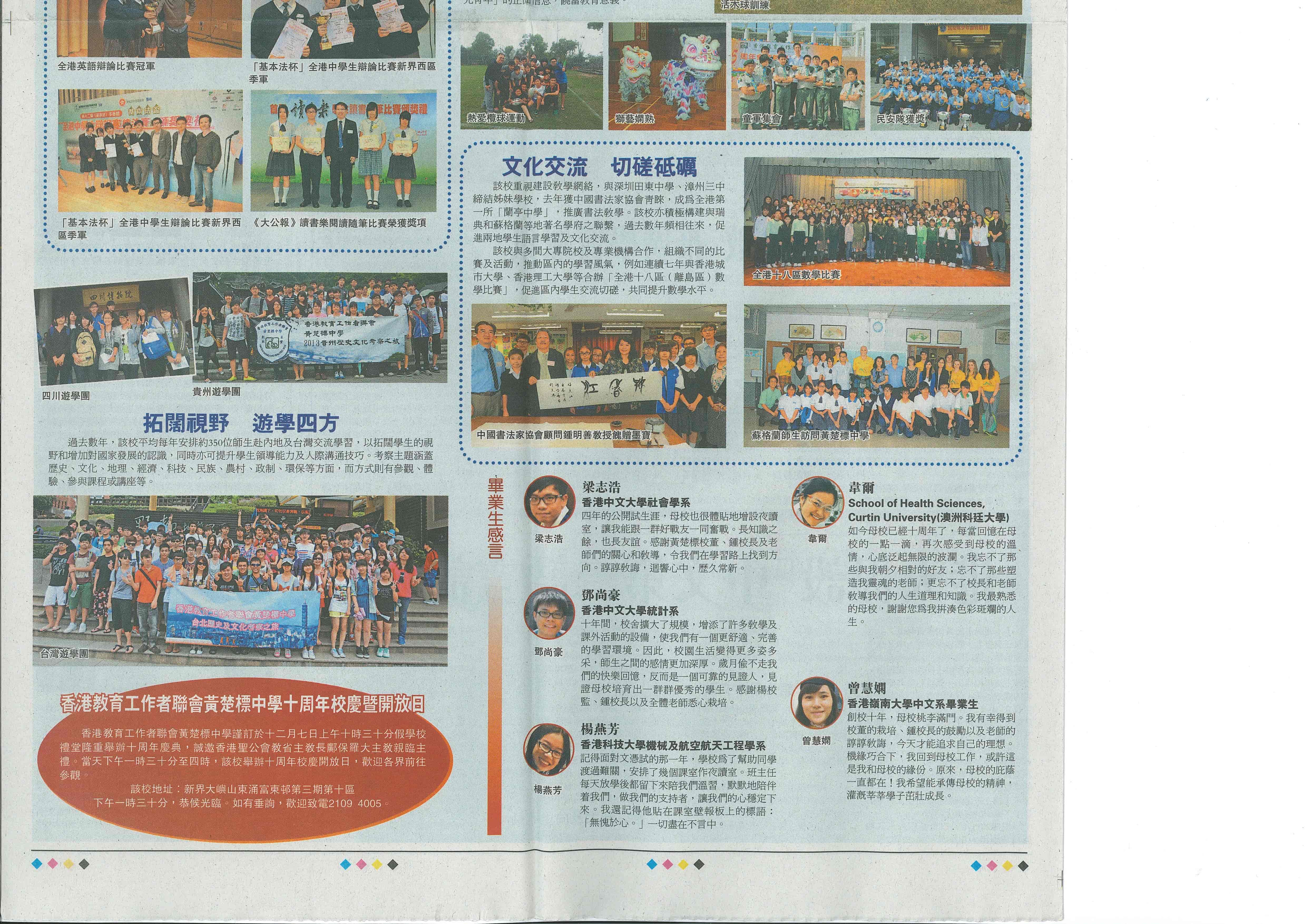 教聯會黃楚標中學十週年校慶暨開放日(大公報 07/12/2013)
