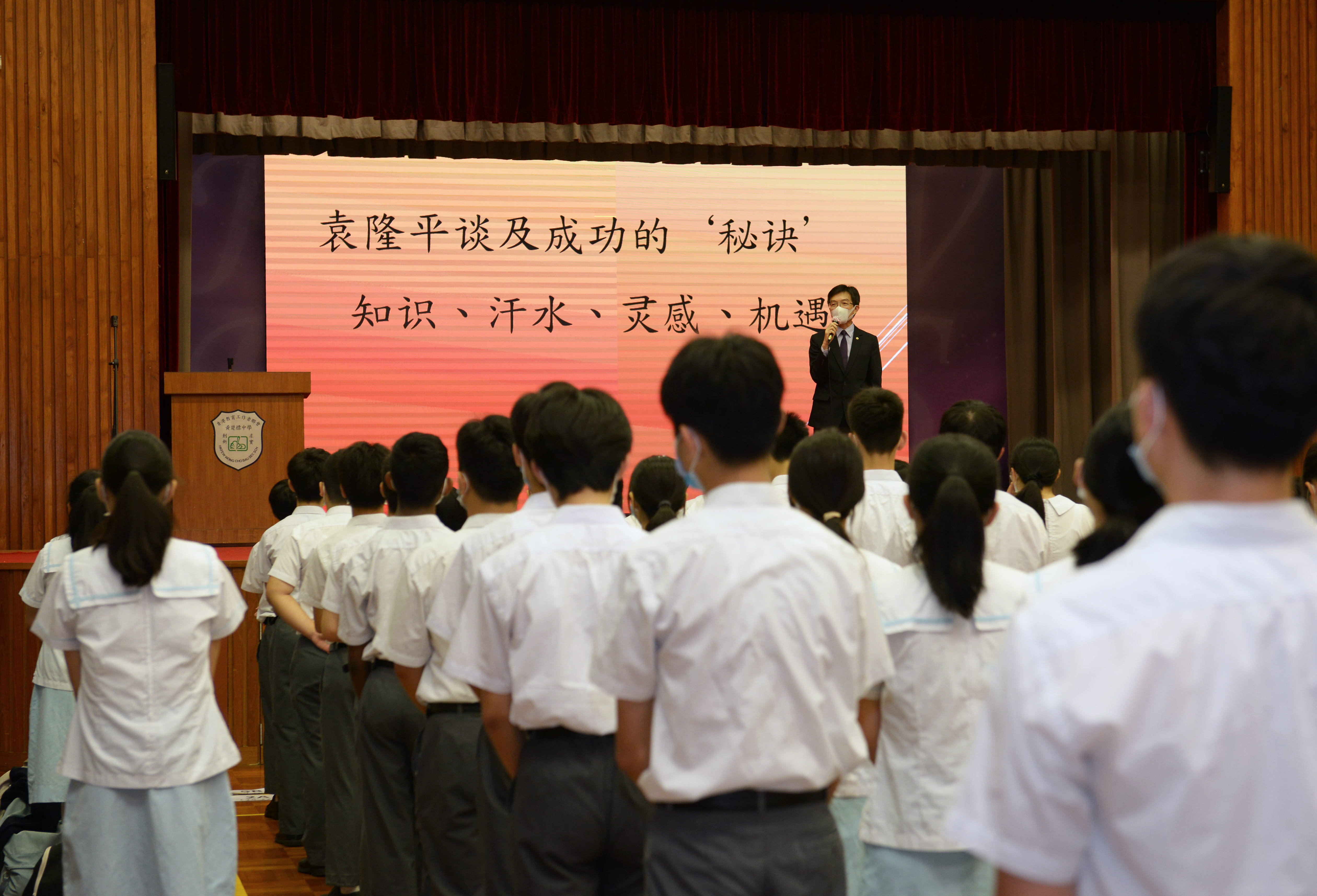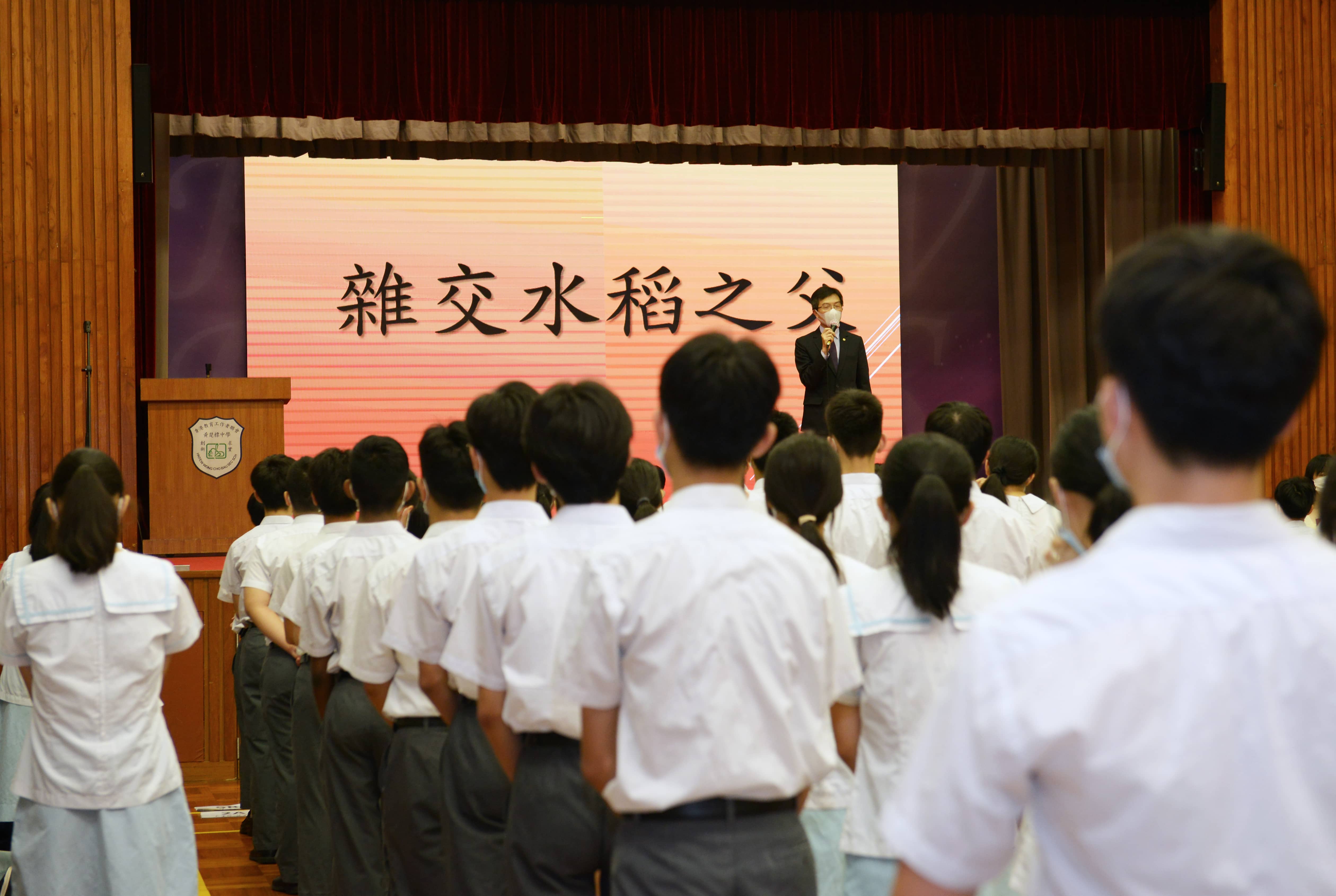 5月24號早會顯得特別莊嚴而肅穆。升旗禮過後,許振隆校長進行「國旗下的講話」,和同學一起緬懷「雜交水稻之父」袁隆平。校長分享了袁隆平談及「成功」的秘訣,即「知識、汗水、靈感、機遇」八個字,鼓勵學生學習袁隆平腳踏實地鑽研科學技術的精神。