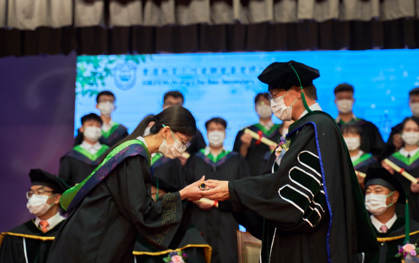 典禮在雄壯的國歌聲中拉開了序幕。首先,我校校監黃均瑜太平紳士致辭,指今屆畢業生經歷了不少挑戰,但這些挑戰其實是難得的學習機會。他勉勵畢業生珍惜這些經驗,日後無論遇到甚麼突如其來的情況,都要持守正道、堅定信念,視挑戰為歷練,永不放棄。他也提醒學生要常懷感恩之心,時刻感謝父母、師長、社會、國家,以及身邊幫助過自己的人,讓內心更加富足。