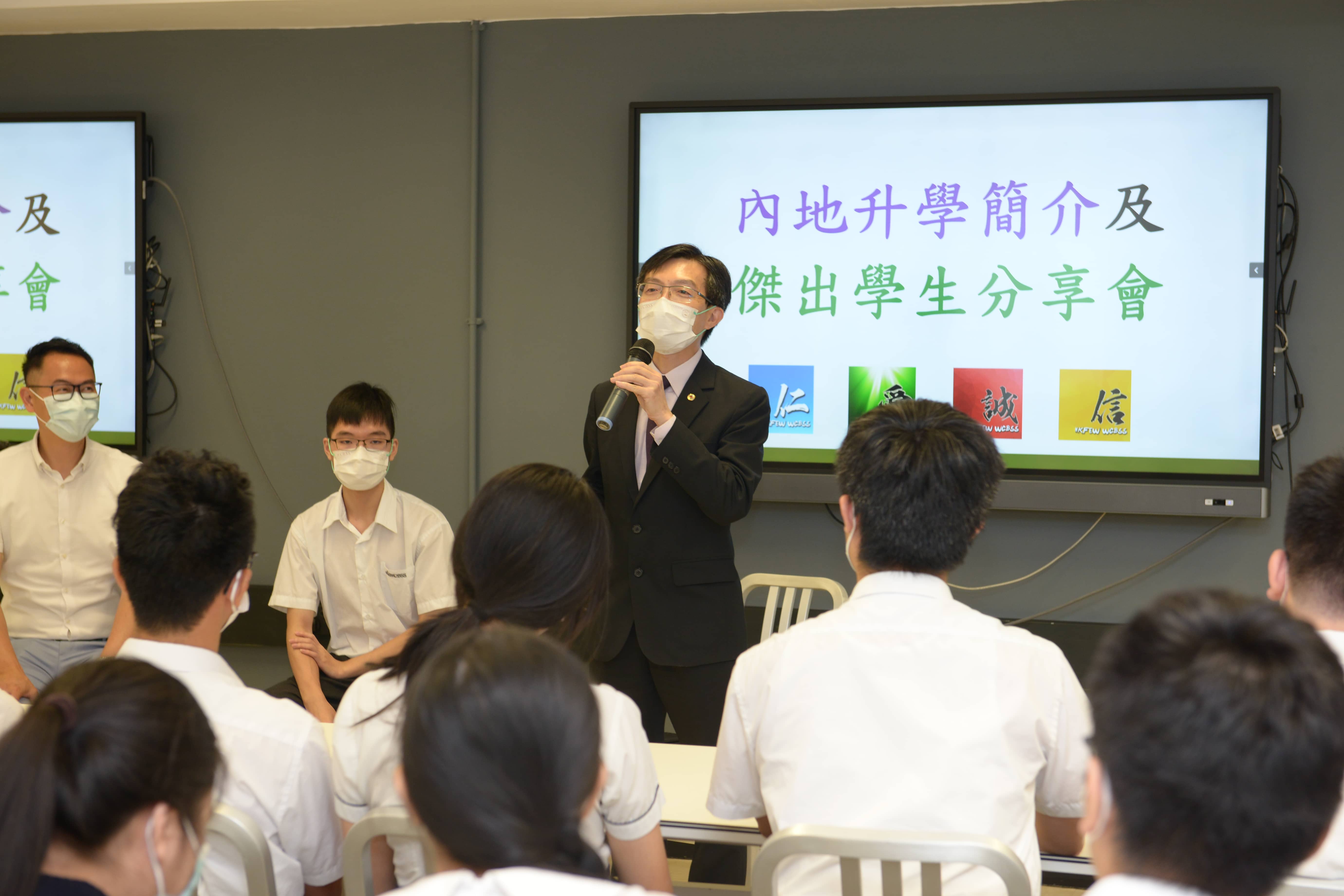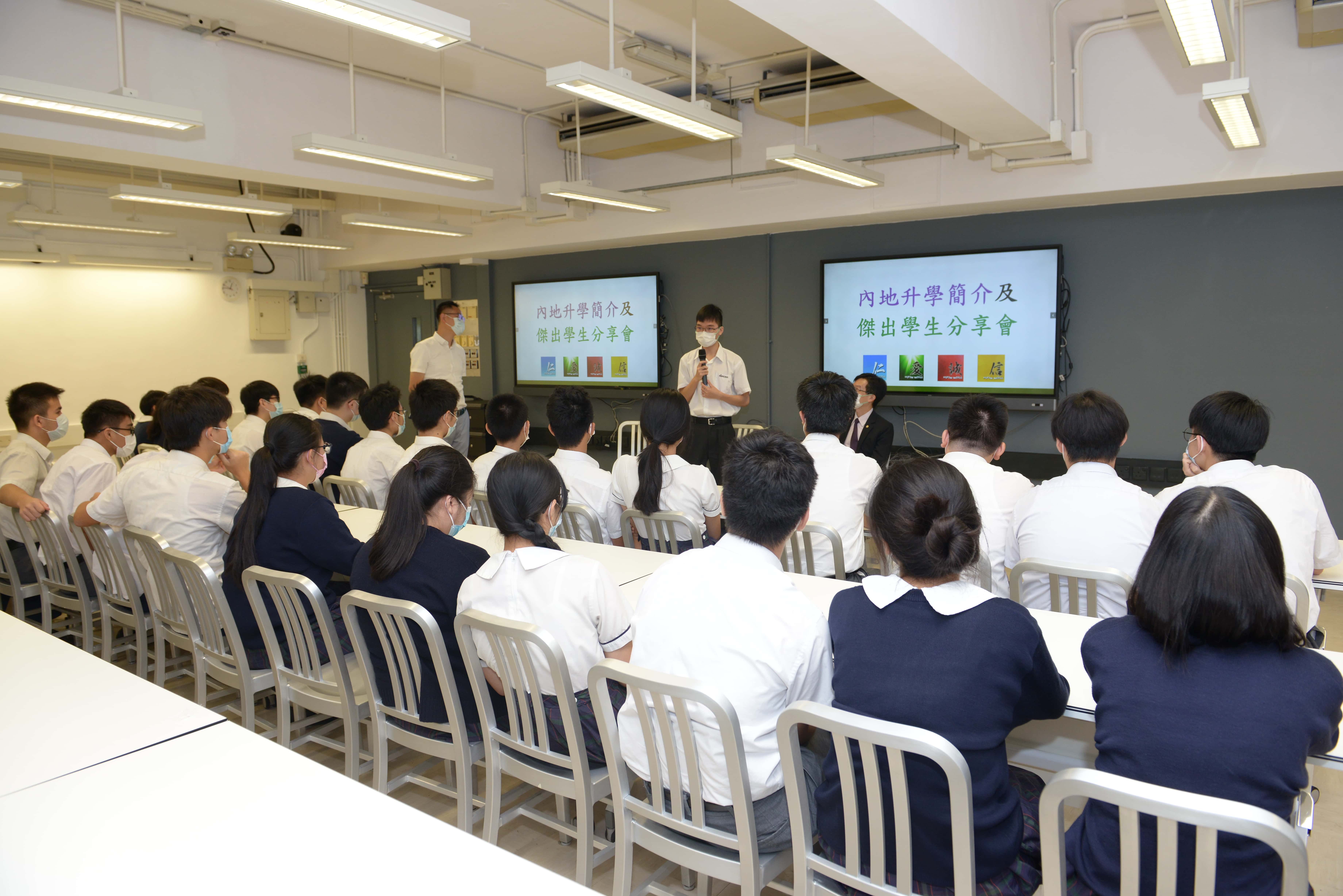 7月13日,我校邀請到傑出學生司徒銳文同學為中五學生做分享會,同時介紹了內地升學情況,鼓勵同學努力備戰來年DSE考試。