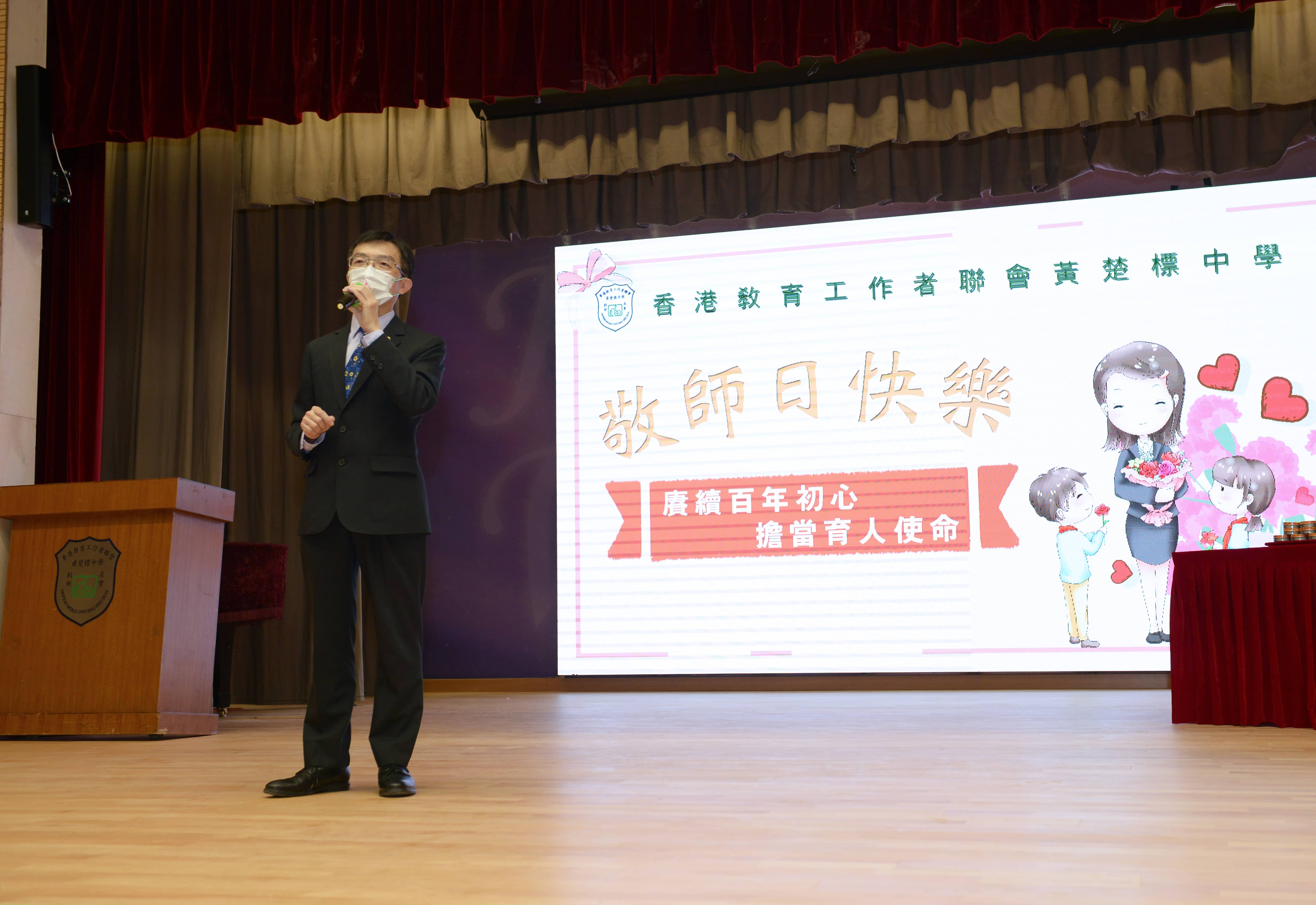 九月十日,我校舉辦「敬師日」早會活動,邀請家長代表、學生代表等與老師共度敬師佳節,表達對老師的敬意。