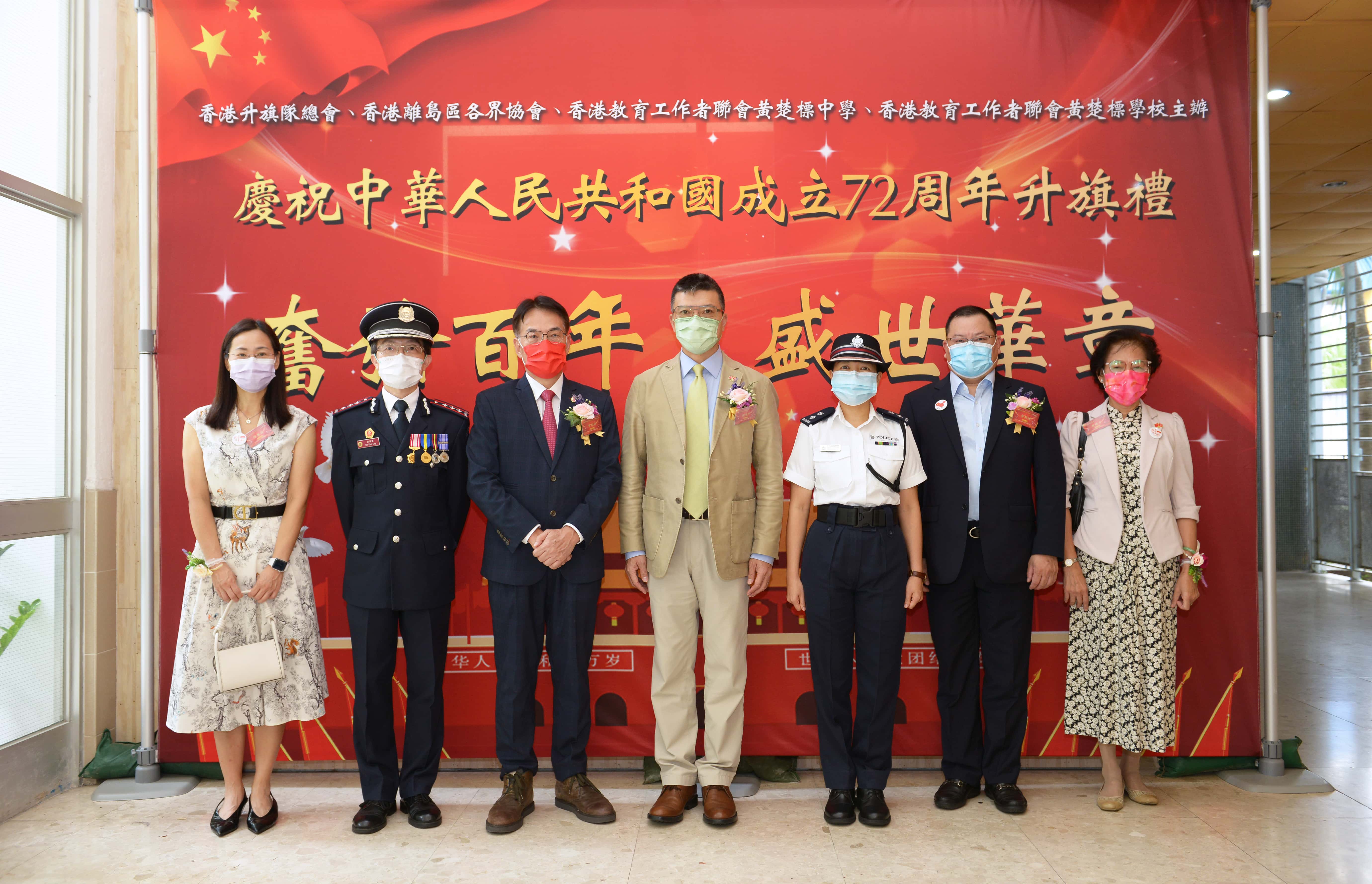 為慶祝中華人民共和國成立72周年,直播app、直播app學校、直播app升旗隊總會、直播app離島區各界協會,於十月一日聯合舉辦「奮發百年.盛世華章」升旗禮。港區全國人大代表黃均瑜太平紳士、離島區議會主席余漢坤太平紳士、大嶼山警區指揮官張凱茵高級警司、中聯辦新界工作部余新捷處長、離島婦聯主席周轉香太平紳士等社會賢達擔任主禮嘉賓。