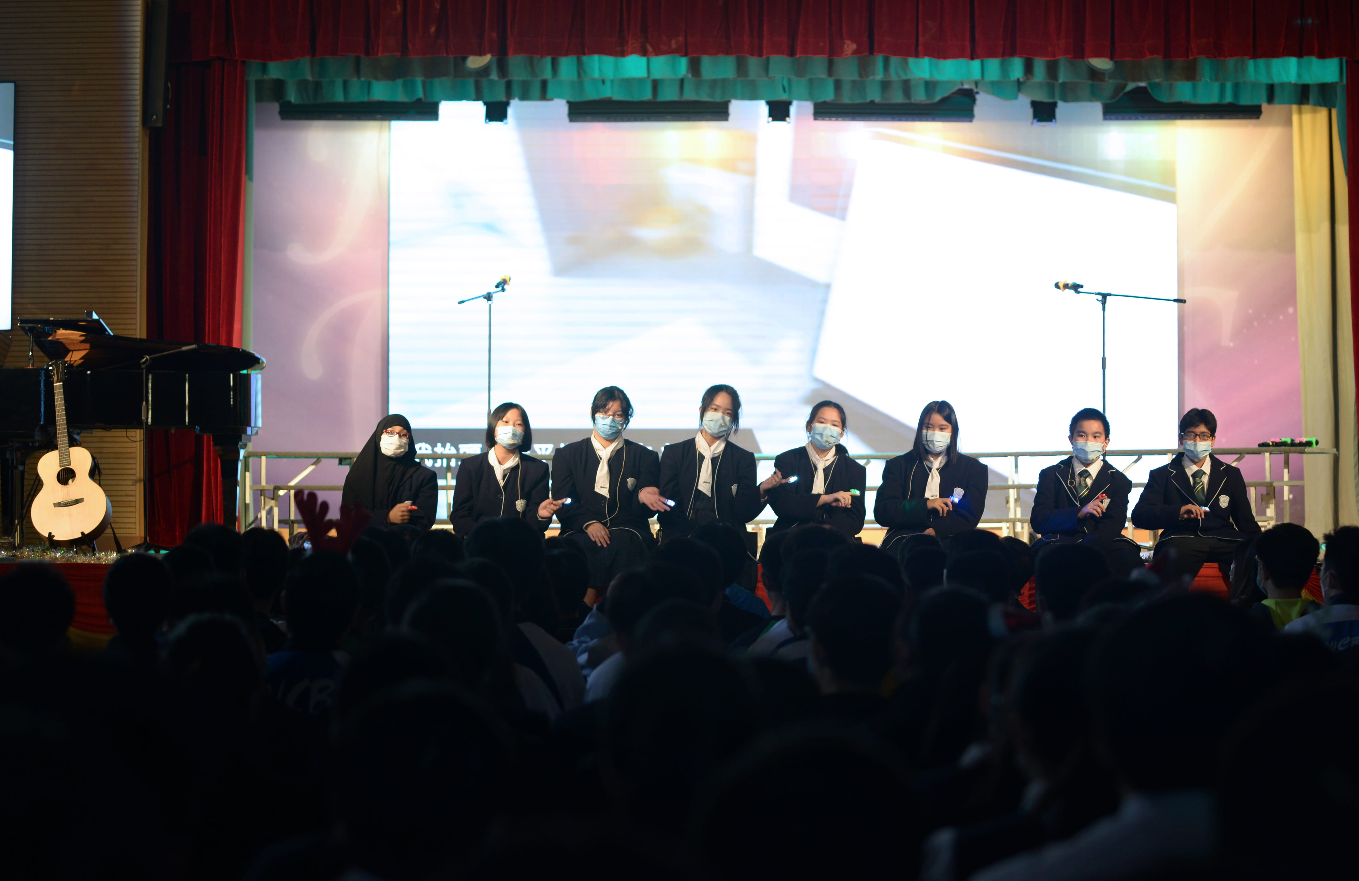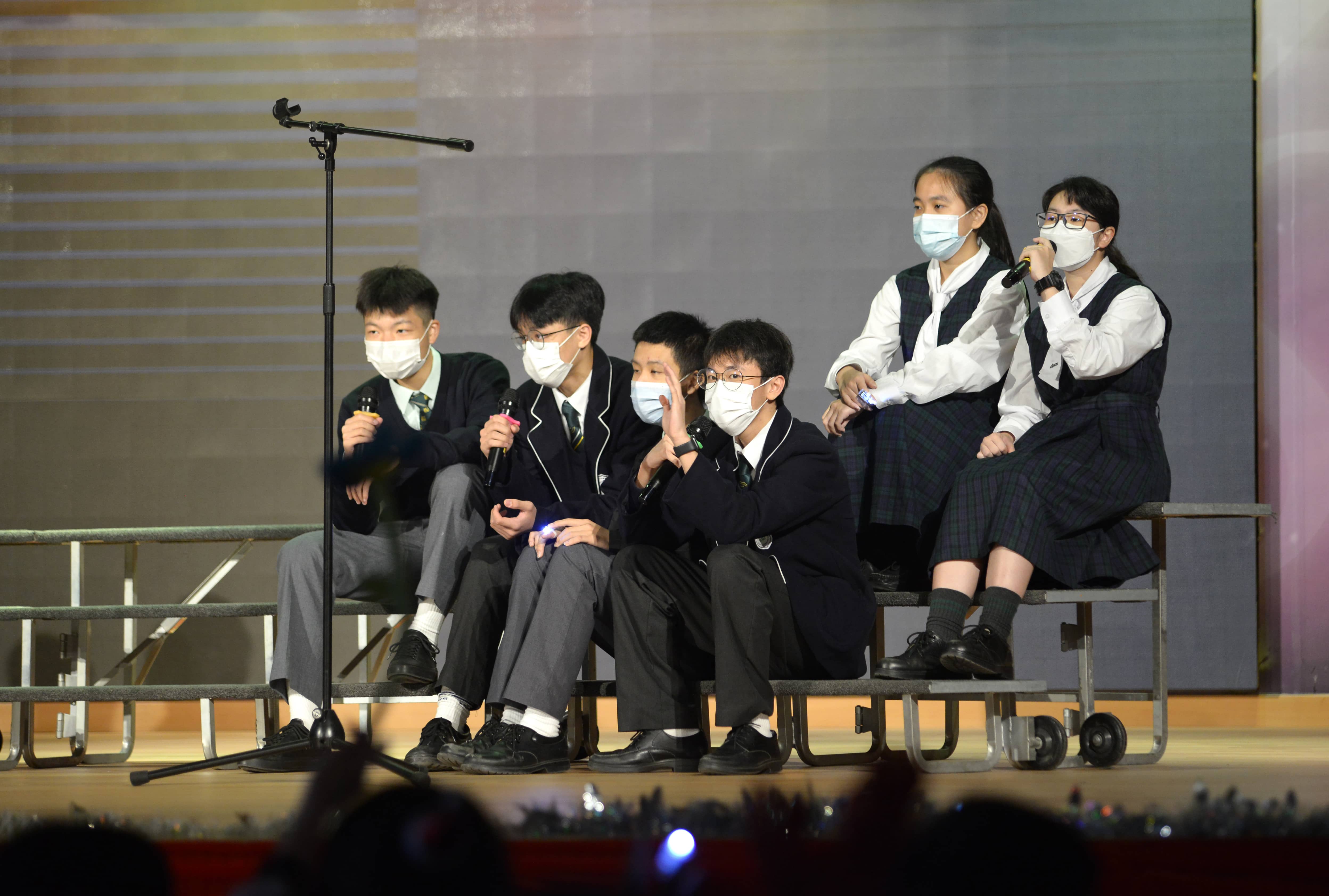 活動開始了!許校長致辭引用〈詩大序〉「詩者,志之所之也。在心為志,發言為詩。情動於中,而行於言。言之不足,故嗟嘆之。嗟嘆之不足,故永歌之。永歌之不足,不知手之舞之,足之蹈之也。」,鼓勵同學積極投入,以表演抒發情感。比賽分為班際比賽、社際獨唱組、社際合唱組及社際師生組。班際比賽中,跨境班混合線上線下模式,讓同學可以遙距參與活動;其他班別亦合作無間,盡顯深厚的同窗情誼。參賽者水平之高已經不在話下,更重要的是全場氣氛高漲,喝采聲、歡呼聲不絕於耳,台下同學不時與表演者一起放聲歌唱,足見他們對這次活動的熱愛!