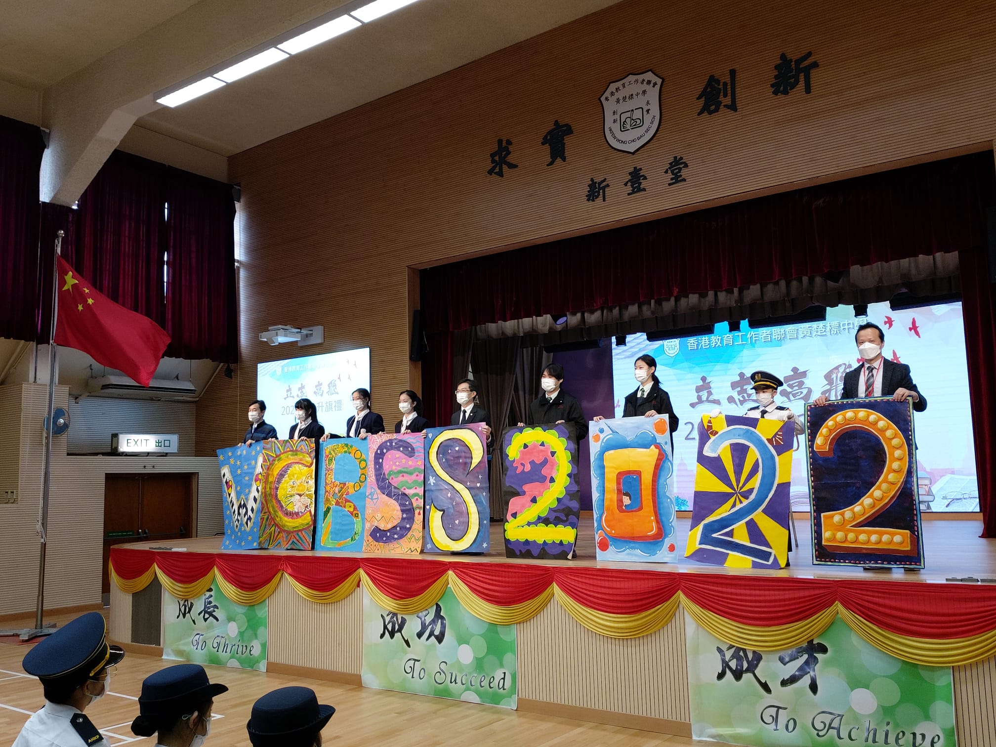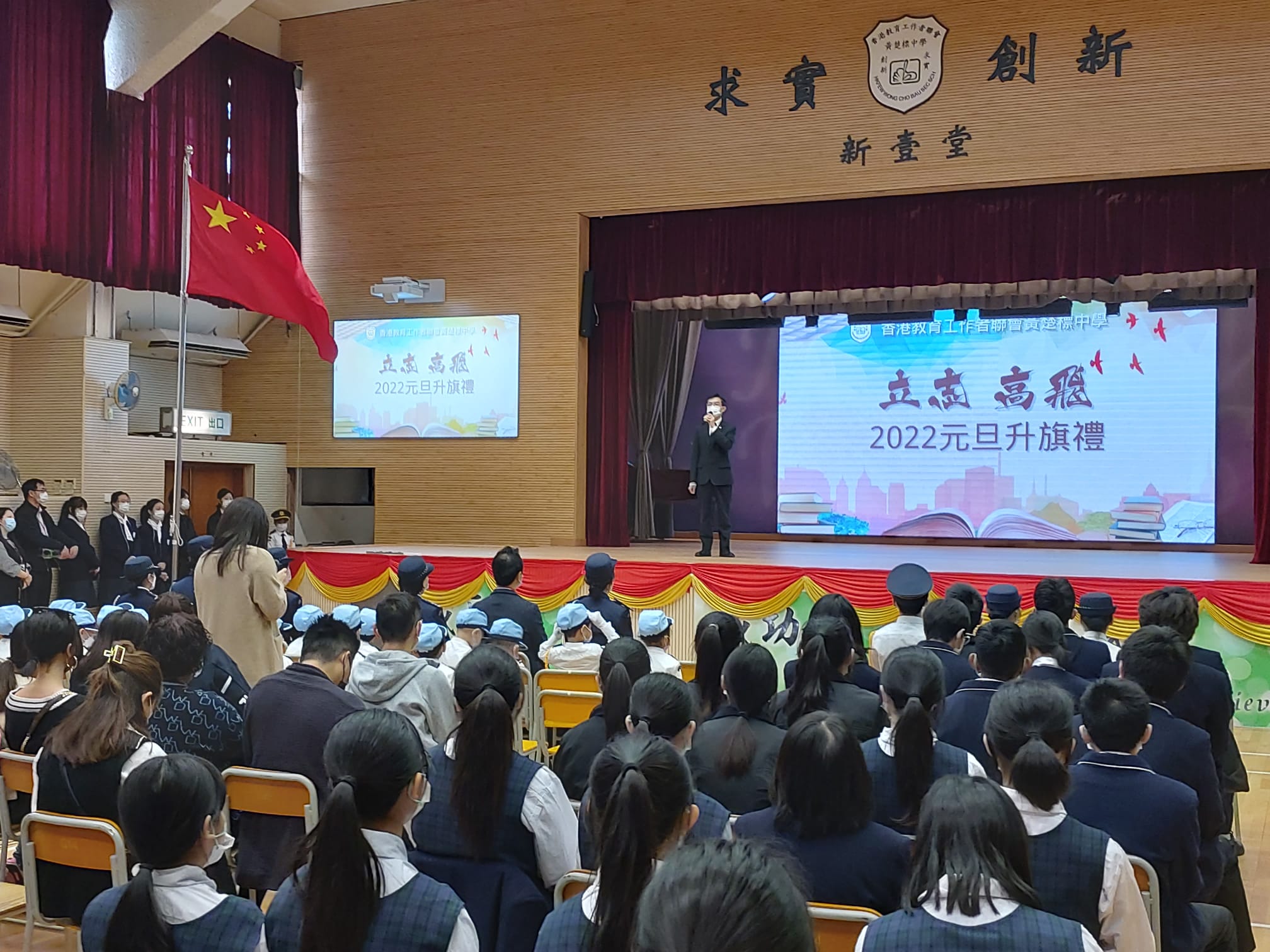 許校長致辭時,以「一日之計在於晨,一歲之計在於春,一生之計在於勤」,勉勵學生及早訂定目標,努力奮鬥,爭取成就。他亦提醒學生高飛方能望遠,希望學生充實自我,以更高的角度,認識社會,為國家發展作出貢獻。許校長隨後帶領中一至中六級的學生代表,於典禮上發表新年願望,表達對社會發展、學習成長,以至家庭生活的美好祝願,並展示師生合力創作的圖畫,象徵以團結、和諧、美滿,迎接新的一年。