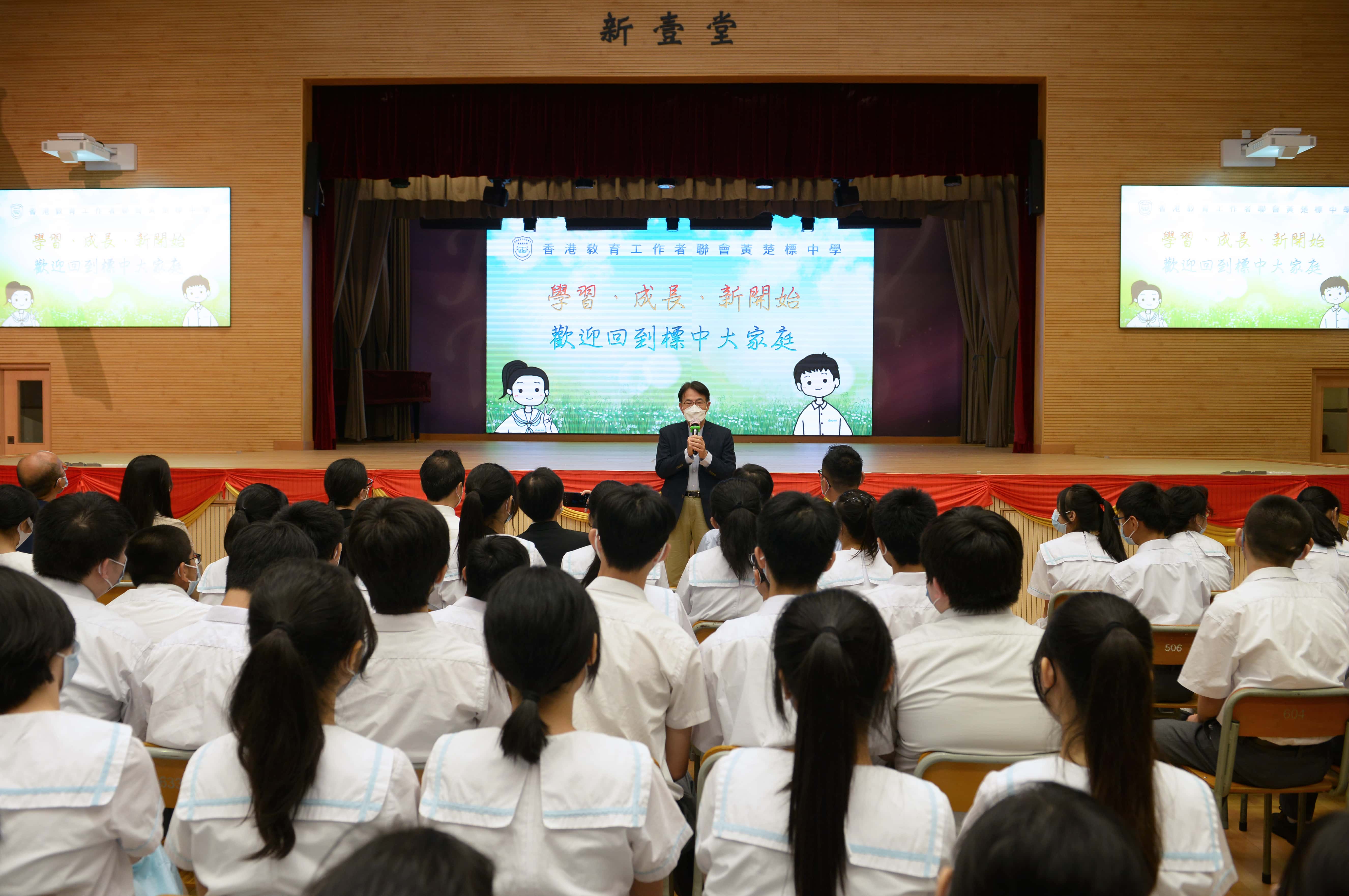 開學第一課,黃均瑜校監勉勵同學們新學年新氣象,更要刻苦讀書,勇於追求自己的夢想。許振隆校長勉勵同學們要敢想,更要勇於奮鬥,才能把夢想實踐出來。並希望我們時刻緊記習主席的話:幸福是奮鬥出來的!