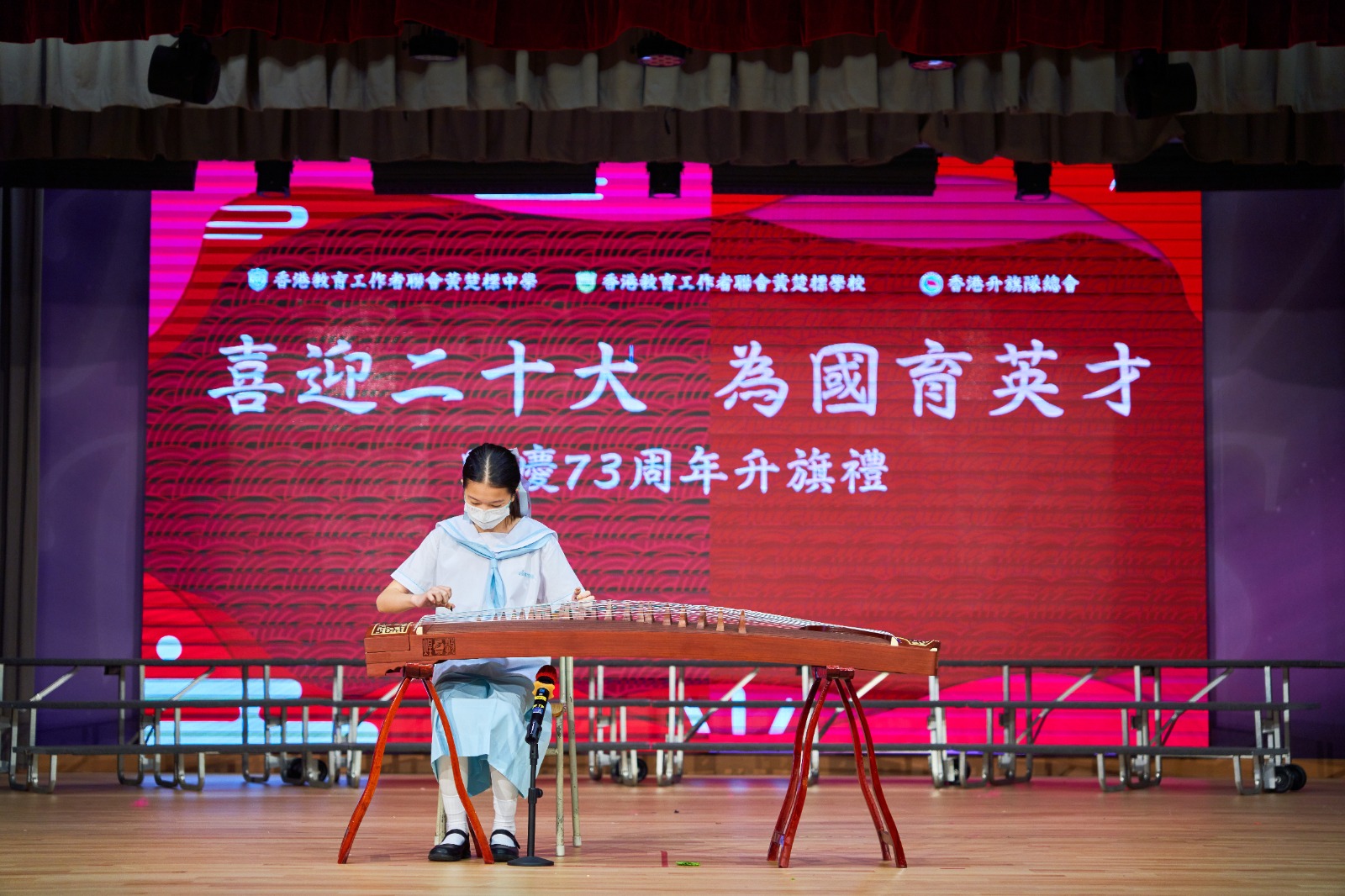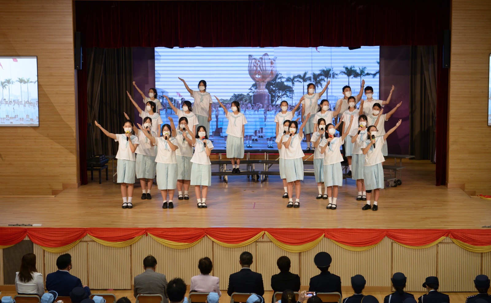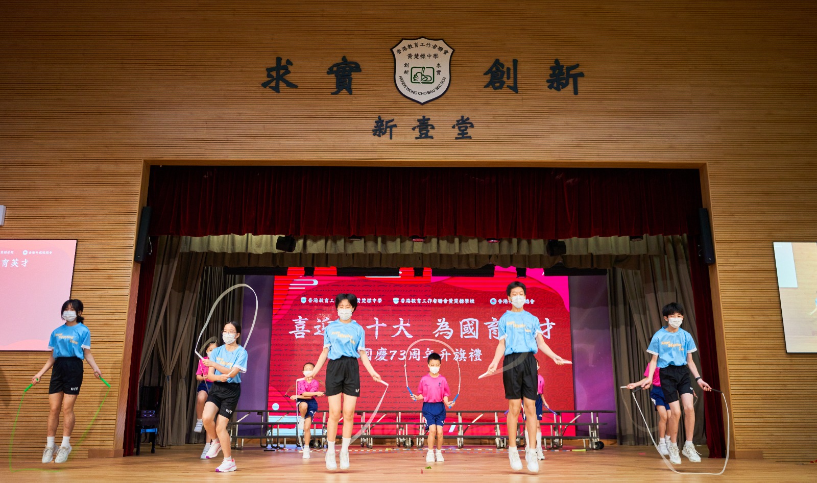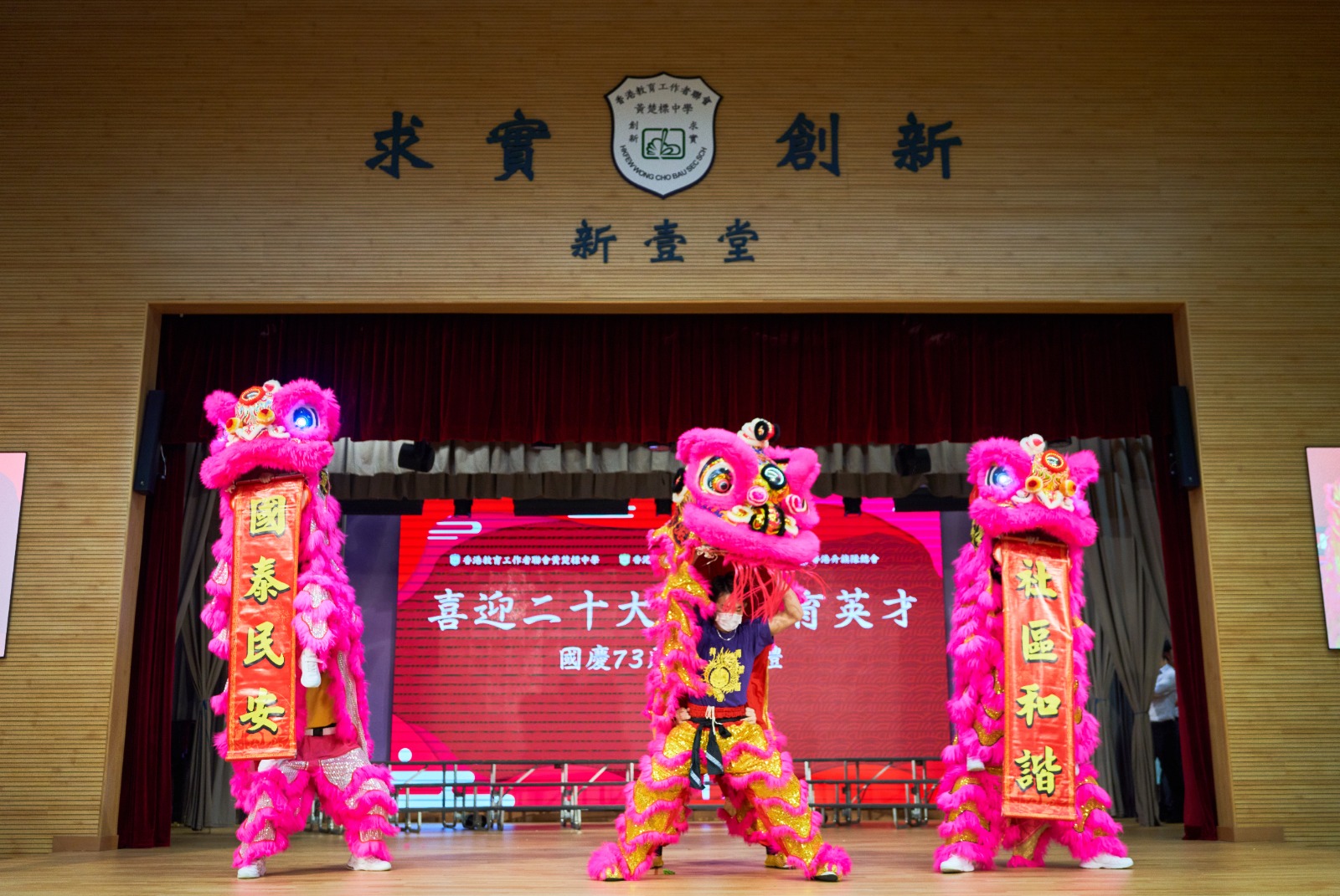 典禮中有龍獅隊助慶,隨後更帶來朗誦表演《可愛的中國》,古箏獨奏「井岡山上太陽紅」,以及花式跳繩表演「跳出新未來」等諸多精彩節目。典禮尾聲該校合唱團與全體來賓共同獻唱《今天是你的生日,中國》, 聲音嘹亮,振奮人心,盡顯愛國情懷,亦為是次活動畫上圓滿句號。