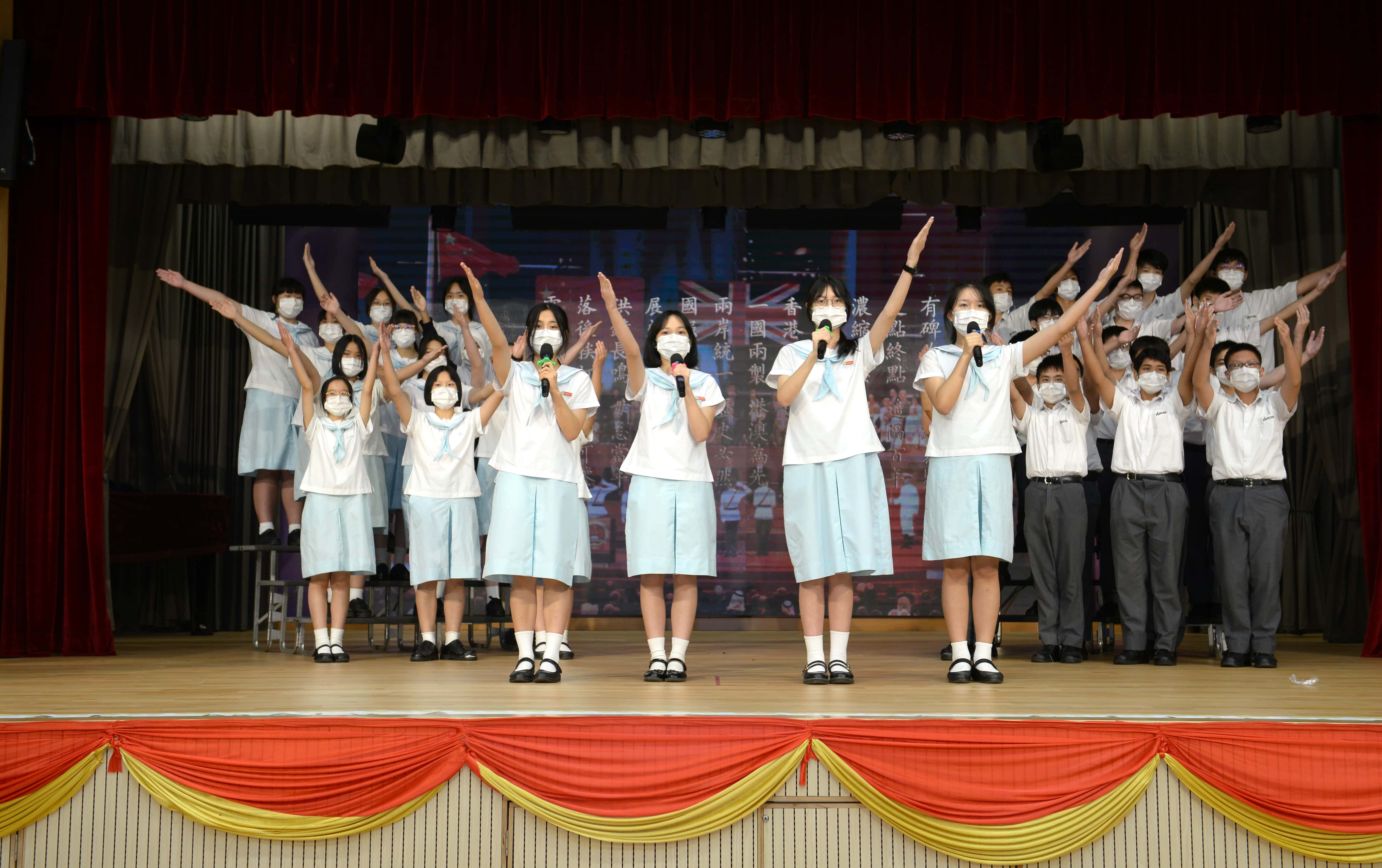 其後,教聯會黃楚標中學的同學們為來賓們帶來精彩的靜海寺警世鐘銘文朗誦表演。台上同學聲情並茂,聲音洪亮,慷慨激昂。同學們富有感情的朗誦,令在場來賓感受到中華民族遭受列強侵略的悲痛和中國人民堅強不屈的奮鬥精神。學生代表陳嘉立同學發言,提出作為青少年,應該承擔起建設祖國的責任,用知識去創造更美好的中國﹔同心協力,一起為偉大的民族復興而奮鬥。
