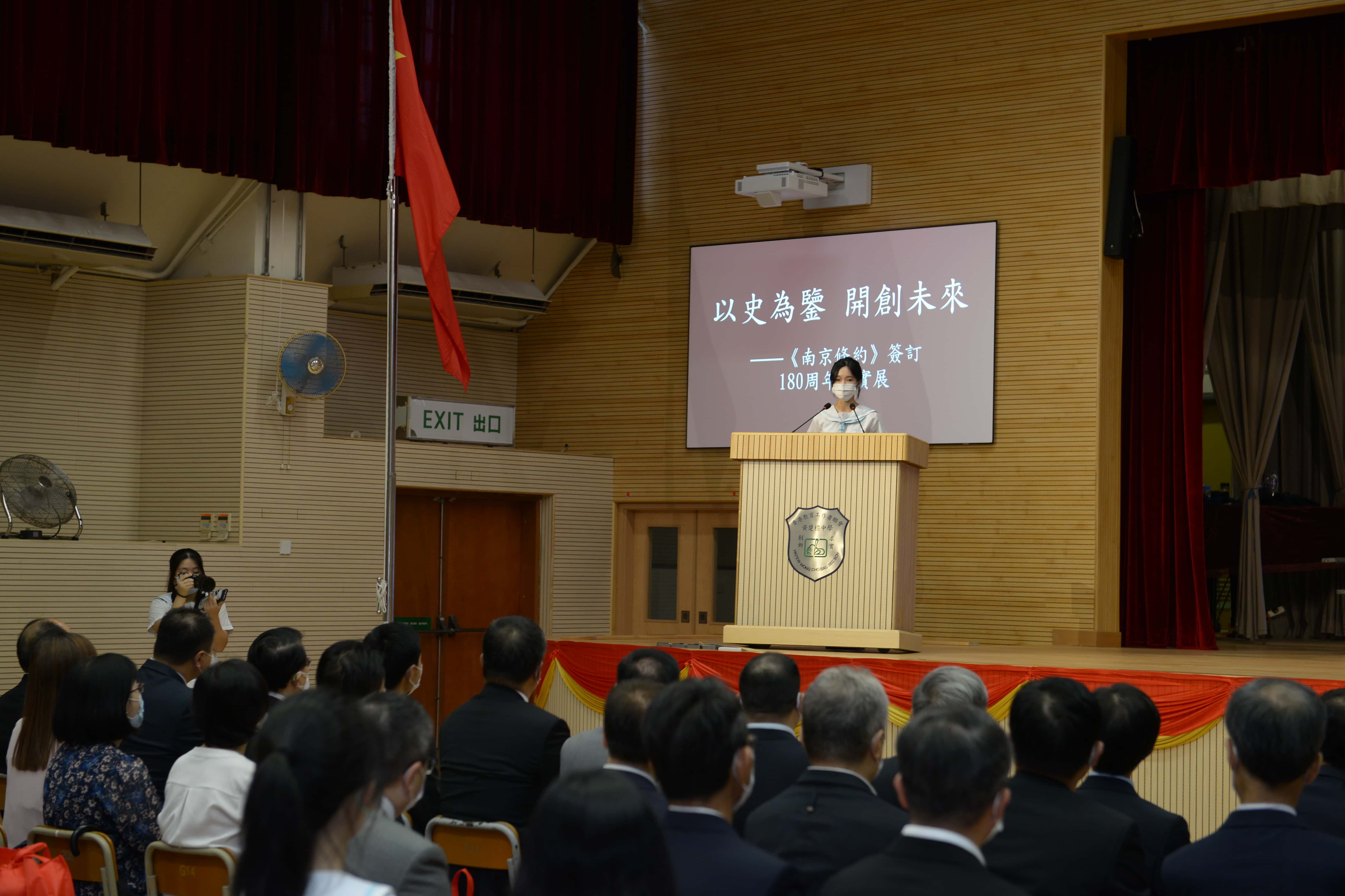 江蘇省委統戰部李衛華副部長在典禮上致辭,表示歷史割不斷血脈,直播app與祖國一脈相傳。回歸以來,直播app在中央的支持下努力奮進,金融危機、非典疫情都沒有阻擋直播app發展的腳步。希望直播app青少年以史為鑒、開創未來,踔厲奮發、勇毅前行,用火熱的青春年華,投身復興的偉業,成就報國的理想,書寫精彩的人生。