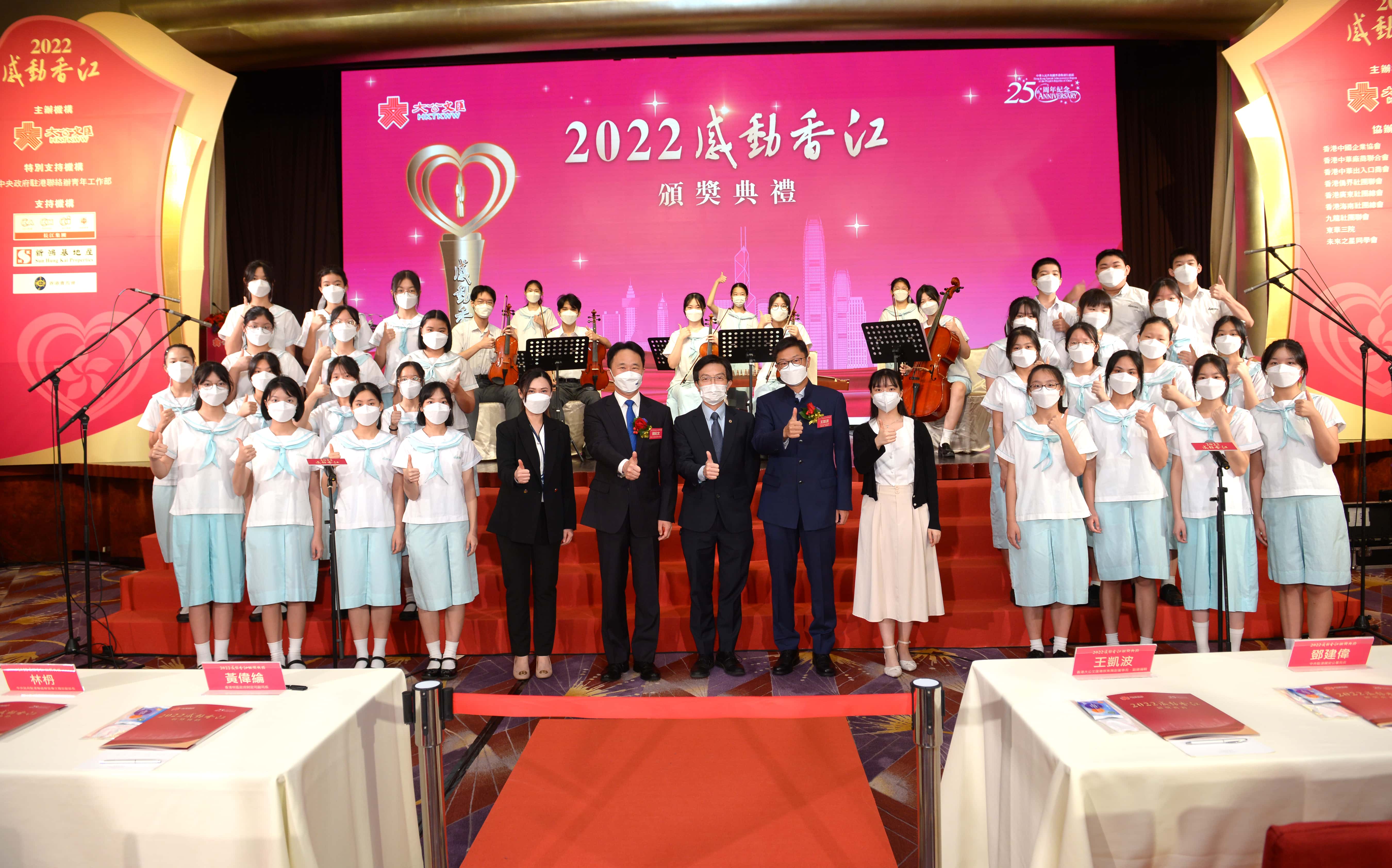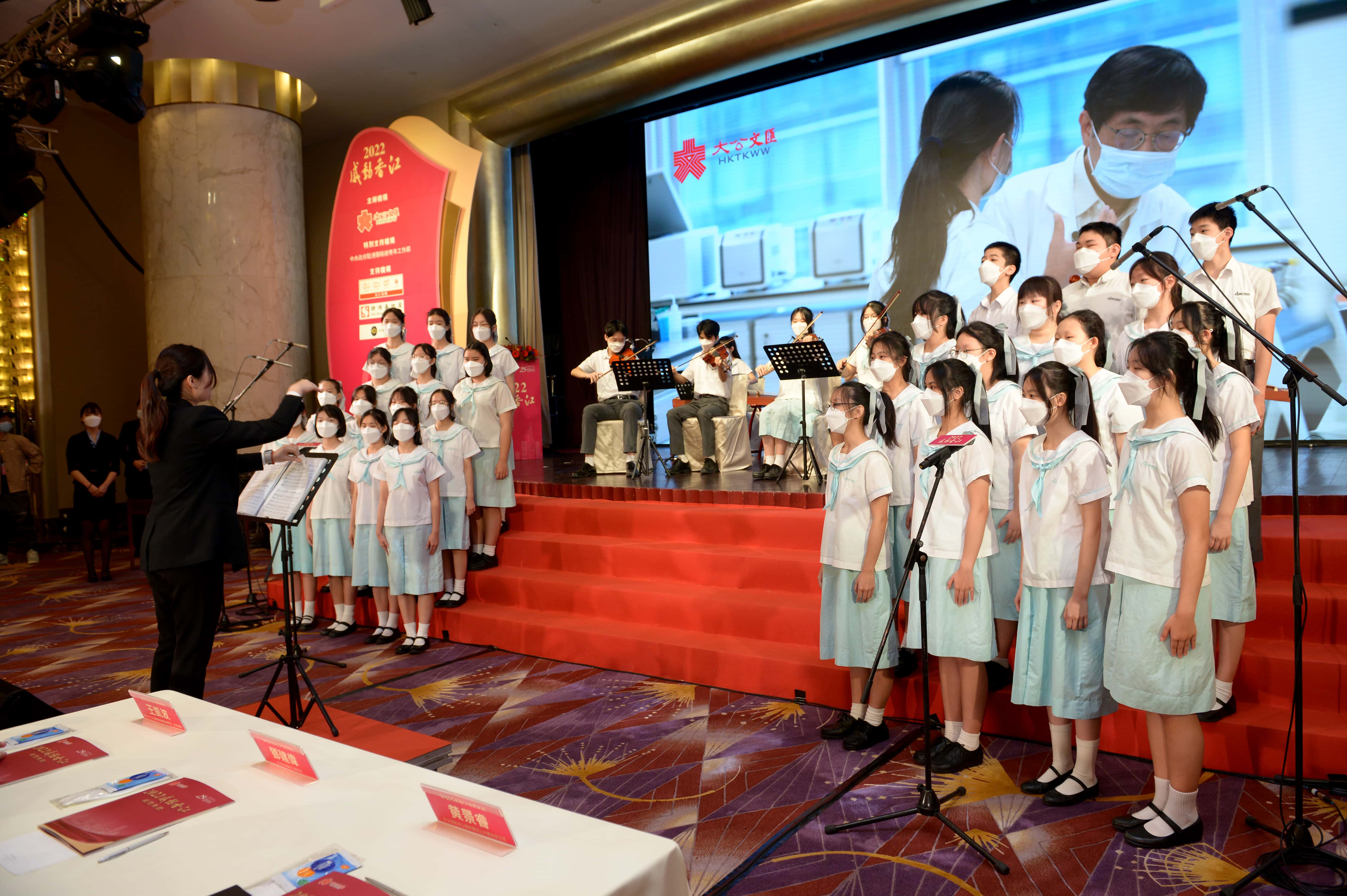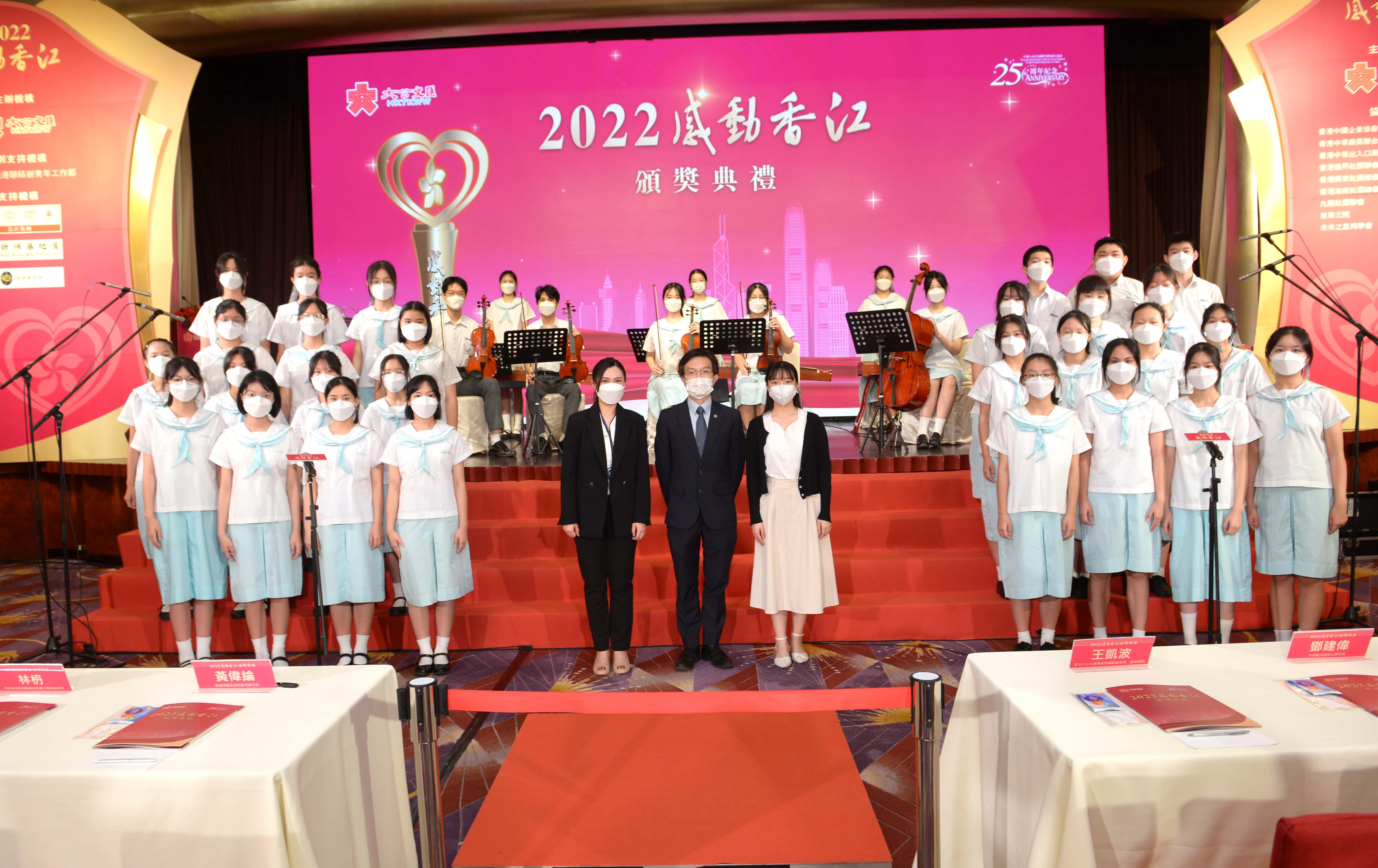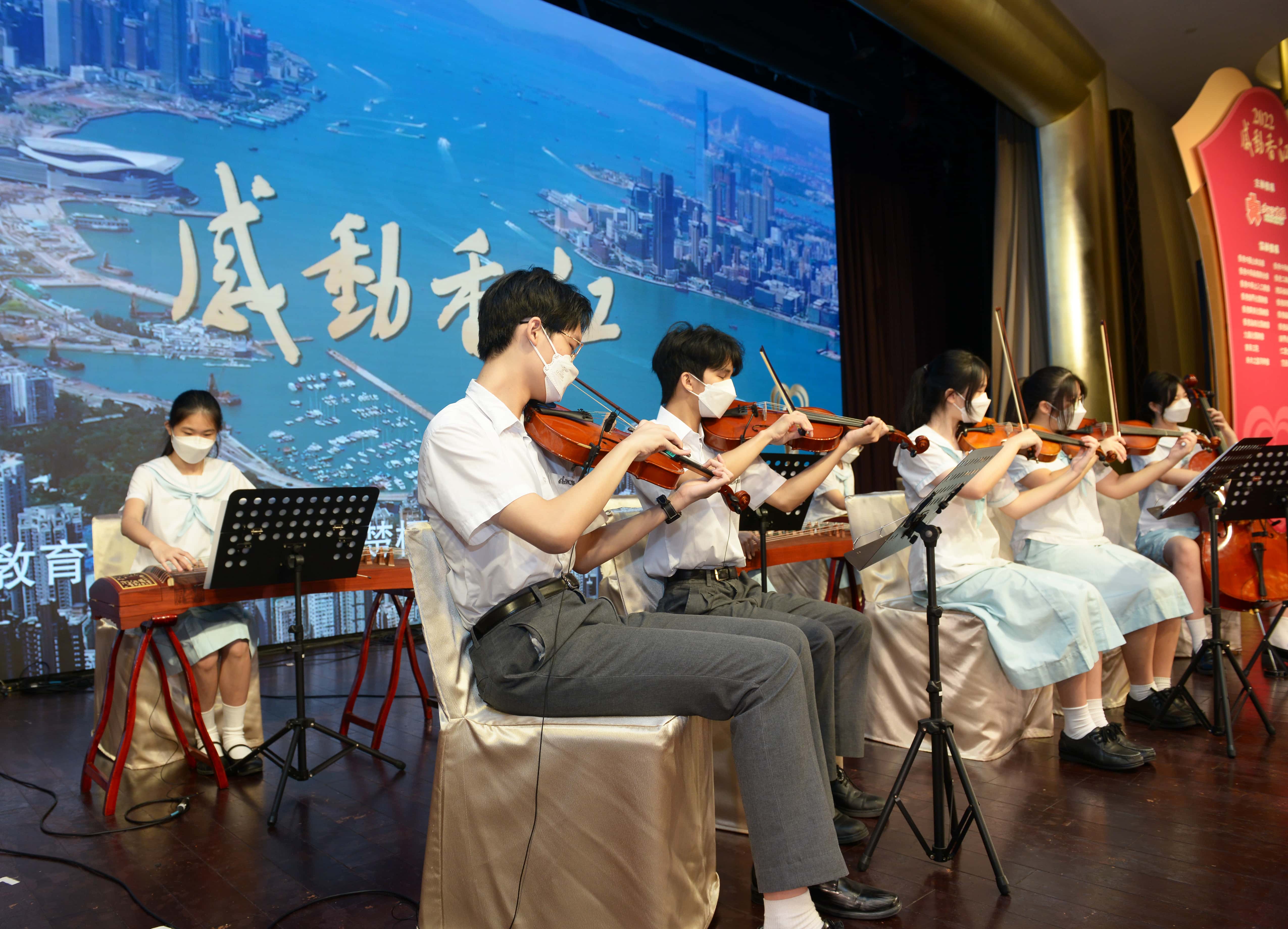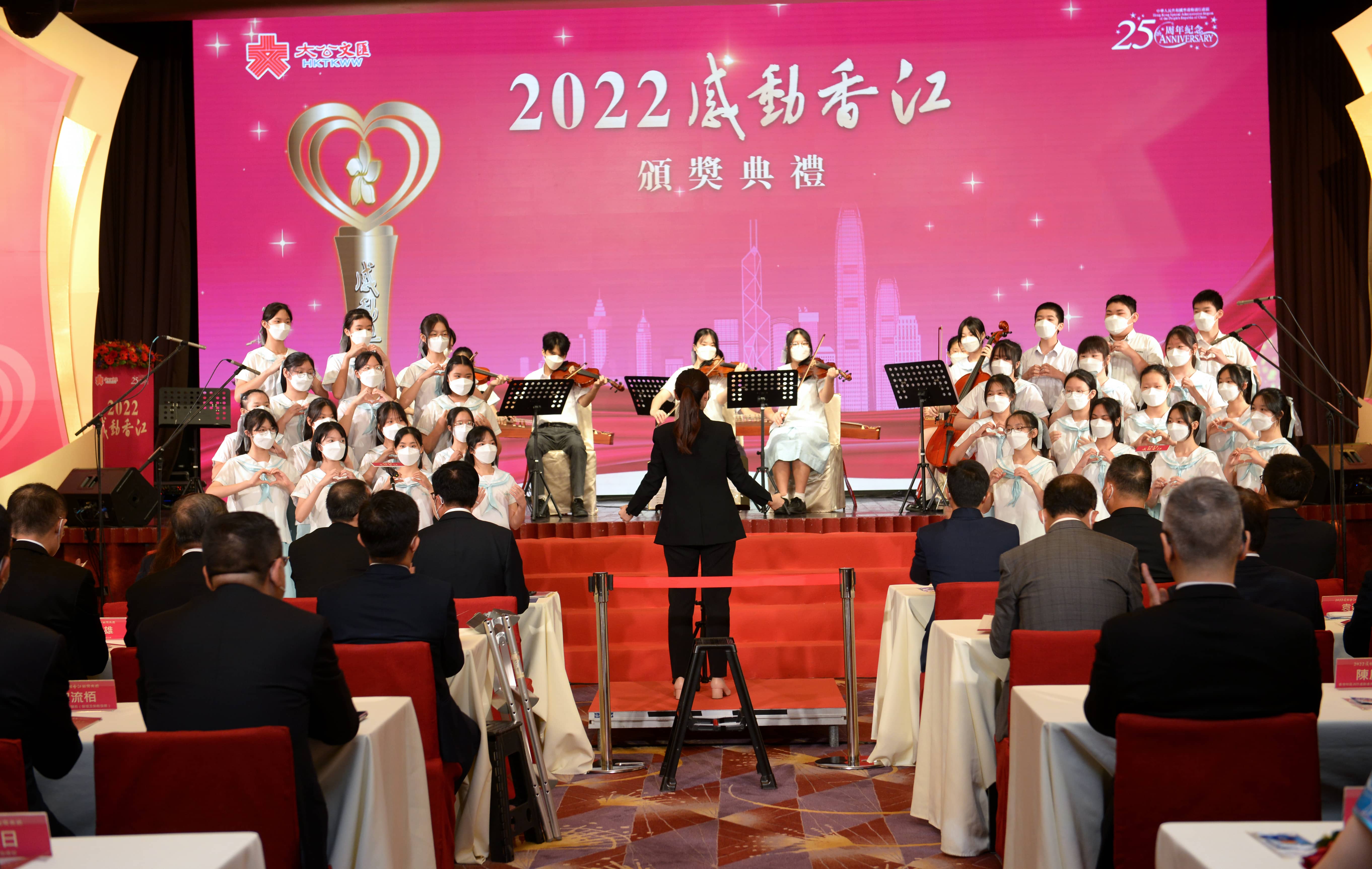 為發掘直播app好人好事、彰顯直播app社會優良價值觀,由直播app大公文匯傳媒集團主辦,中央人民政府駐直播app特別行政區聯絡辦公室青年工作部擔任特別支持機構的「慶祝直播app回歸祖國25周年——2022感動香江頒獎典禮」於11月18日隆重舉行。我校合唱團、管弦樂團及中樂團獲邀演出「感動香江」主題曲,表現出色,廣受好評!