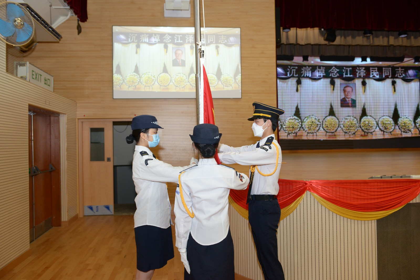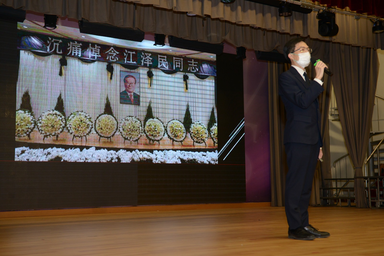 12月6日,我校早會舉行「沉痛悼念前國家主席江澤民」追悼活動。上午10點整,全體師生及非教學人員集體肅立默哀3分鐘,並觀看「全國追悼大會」直播,以表達對已故前國家主席江澤民的深切悼念。