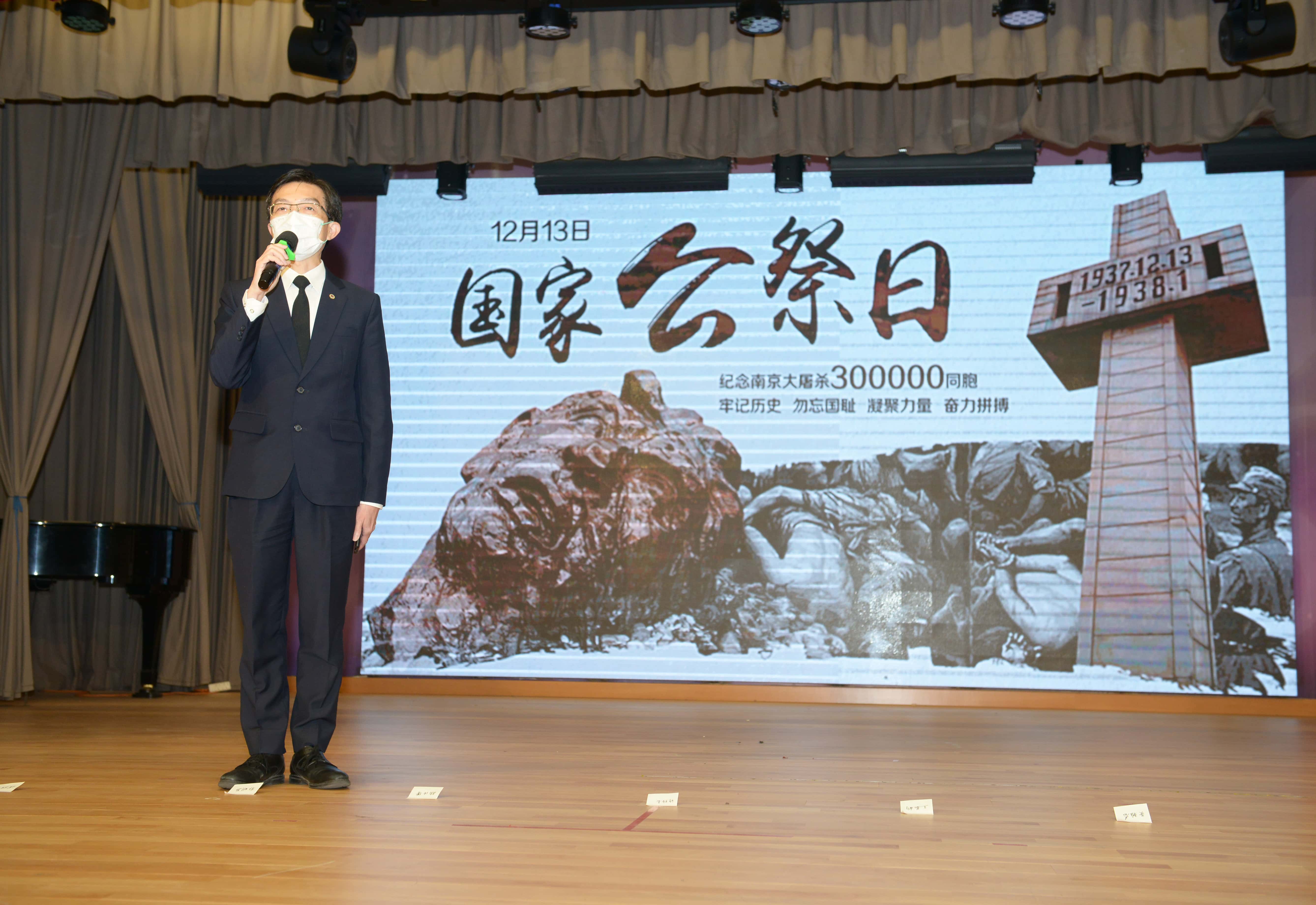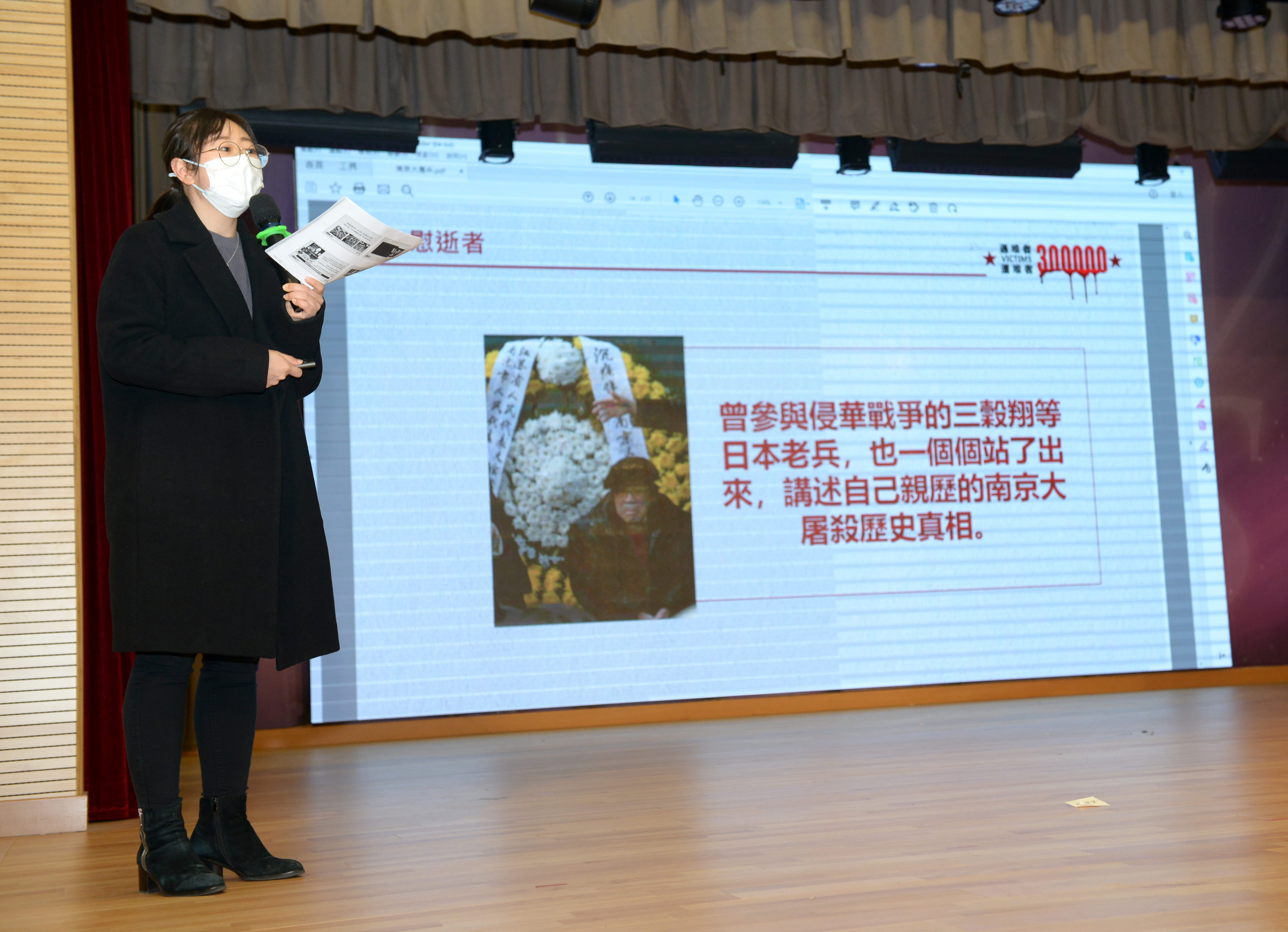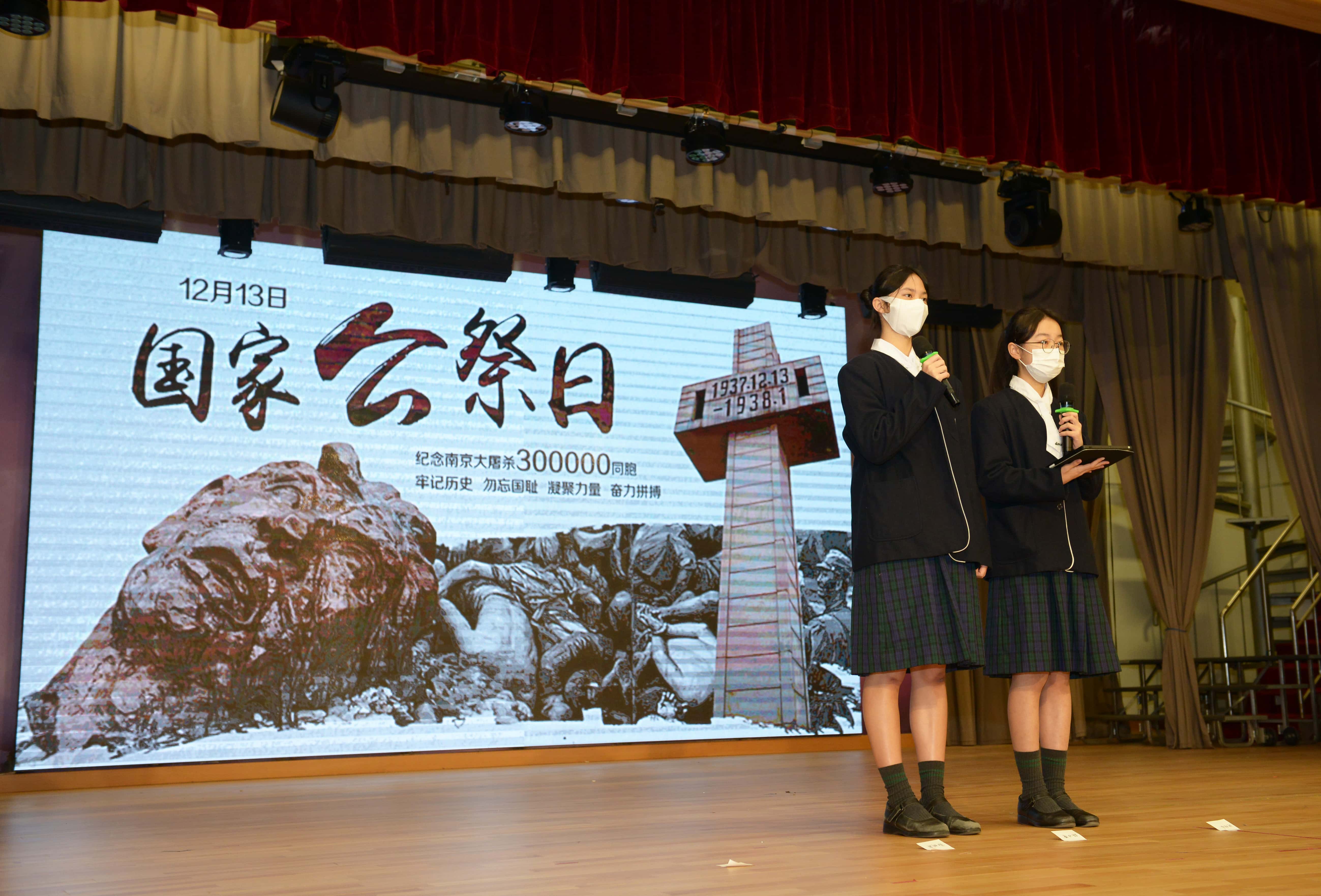 12月13日為國家公祭日,我校於早會進行了「銘記歷史•珍愛和平 」南京大屠殺85周年悼念活動 。活動內容包括升旗禮、默哀及師生分享,藉此讓學生明白國家公祭日意義:「銘記歷史•珍愛和平」。活動由莊嚴的升旗禮揭開序幕。升旗儀式後,校長會成員帶領全校師生,為南京大屠殺中的死難同胞默哀。接著,許校長介紹了南京大屠殺的始末以及國家公祭日的意義,囑咐學生以史為鑑,珍惜現在國家和平繁盛的日子,更要好好學習,為建立繁榮富強的祖國作出貢獻。之後,教師代表及學生代表分別進行分享。高嘉彤老師從不同角度帶出事件慘絕人寰的本質,並呼籲學生要珍惜和平;3B王梓恩和3B郭潘琪則希望同學們牢記歷史,發憤自強,方能不再受人欺侮。不少同學在活動中深有所感,對同胞受難覺得痛心憤慨,更立志要團結一心,努力實踐中華民族的偉大復興!除了早會默哀儀式,我們也舉辦了南京大屠殺書展,希望讓學生對歷史有更具體、更全面的認識。謹此祝願祖國繁榮!世界和平!