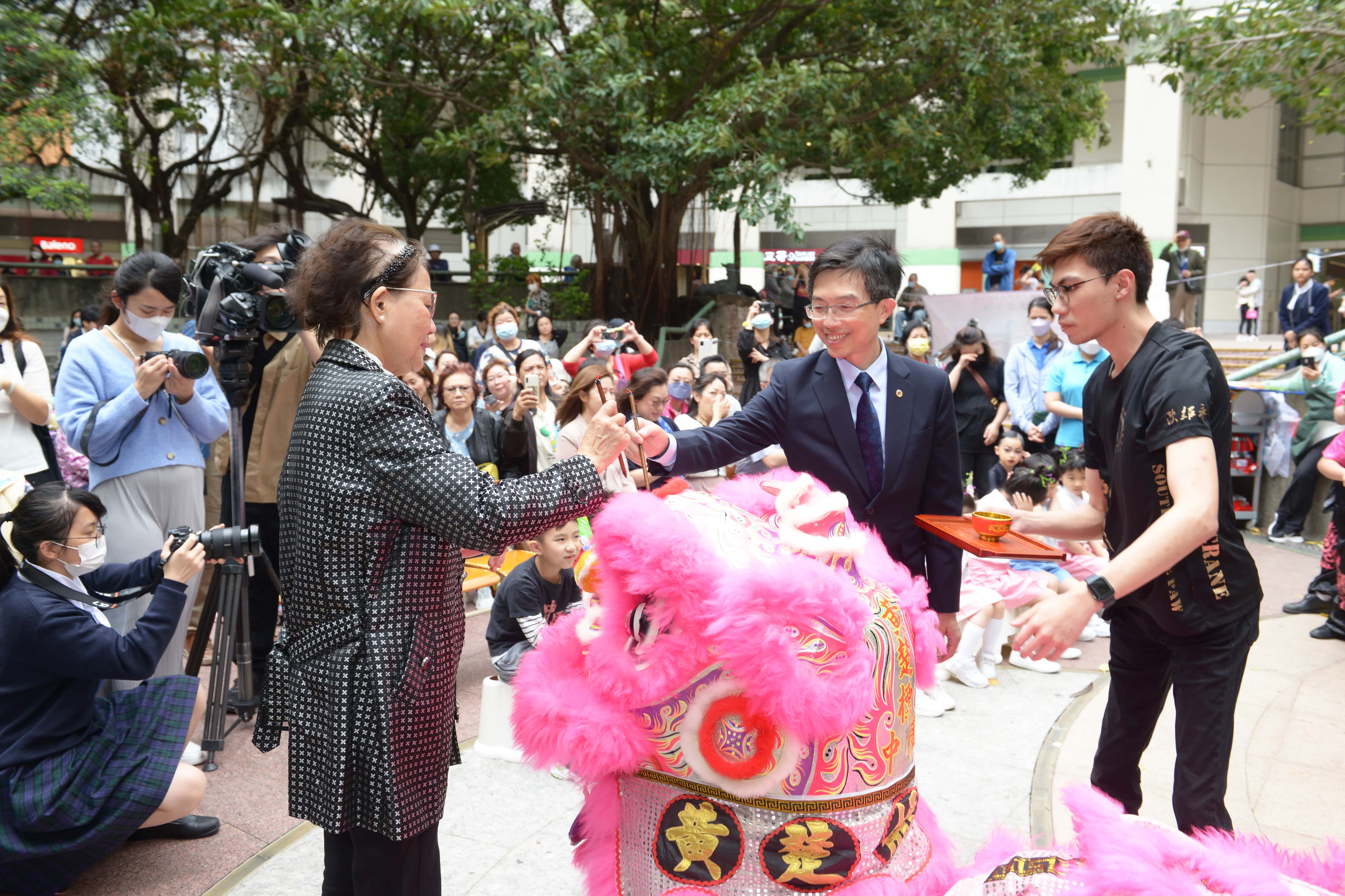 鏗鏘有力、熱鬧非凡的鑼鼓陣陣響起,標中龍獅隊率先登上舞台。精彩的表演,赢得满堂喝彩,帶動了現場的歡騰氣氛。