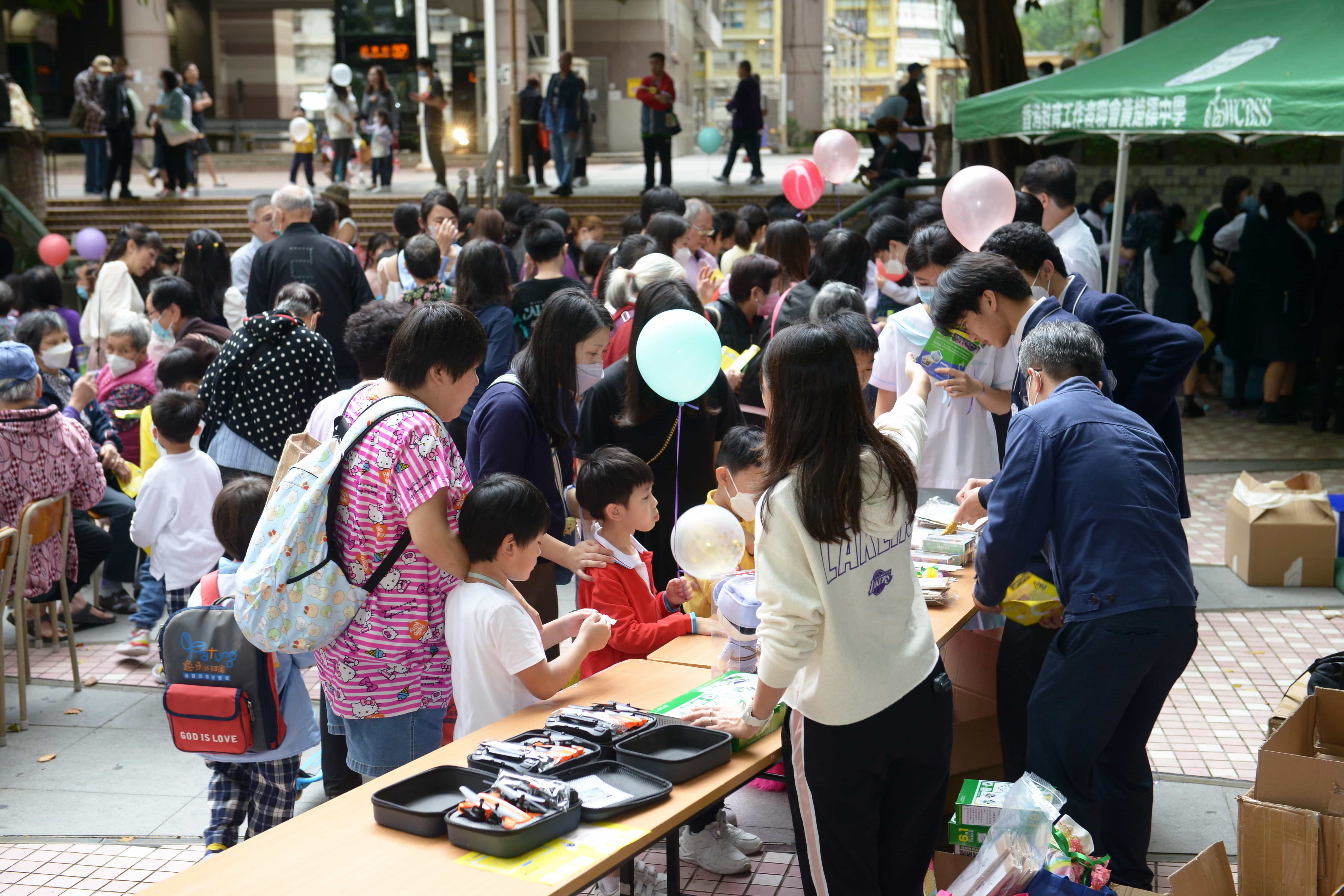表演過後,我校更為觀眾和社區街坊送上驚喜。學生義工們在場地周邊向街坊們送上愛心米券,為有需要的人送上自己的一份心意。