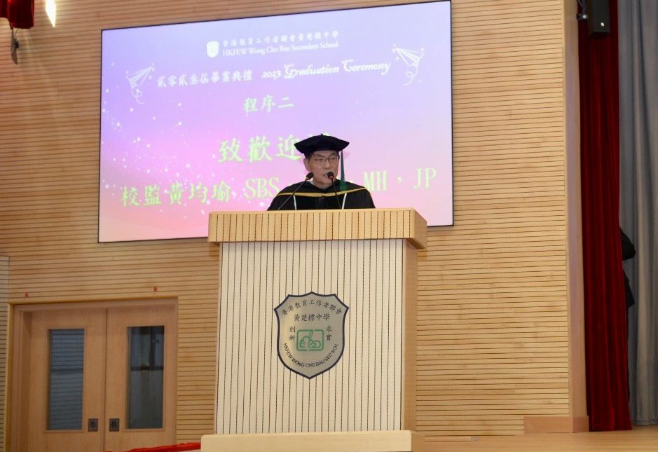 貳零貳叁屆畢業典禮於六月九日圓滿舉行,獲著名音樂教育家、作曲家陳永華教授蒞臨主禮,並得學校創辦人黃楚標太平紳士、校監黃均瑜太平紳士、榮譽校監楊耀忠太平紳士,以及一眾校董擔任台上嘉賓。