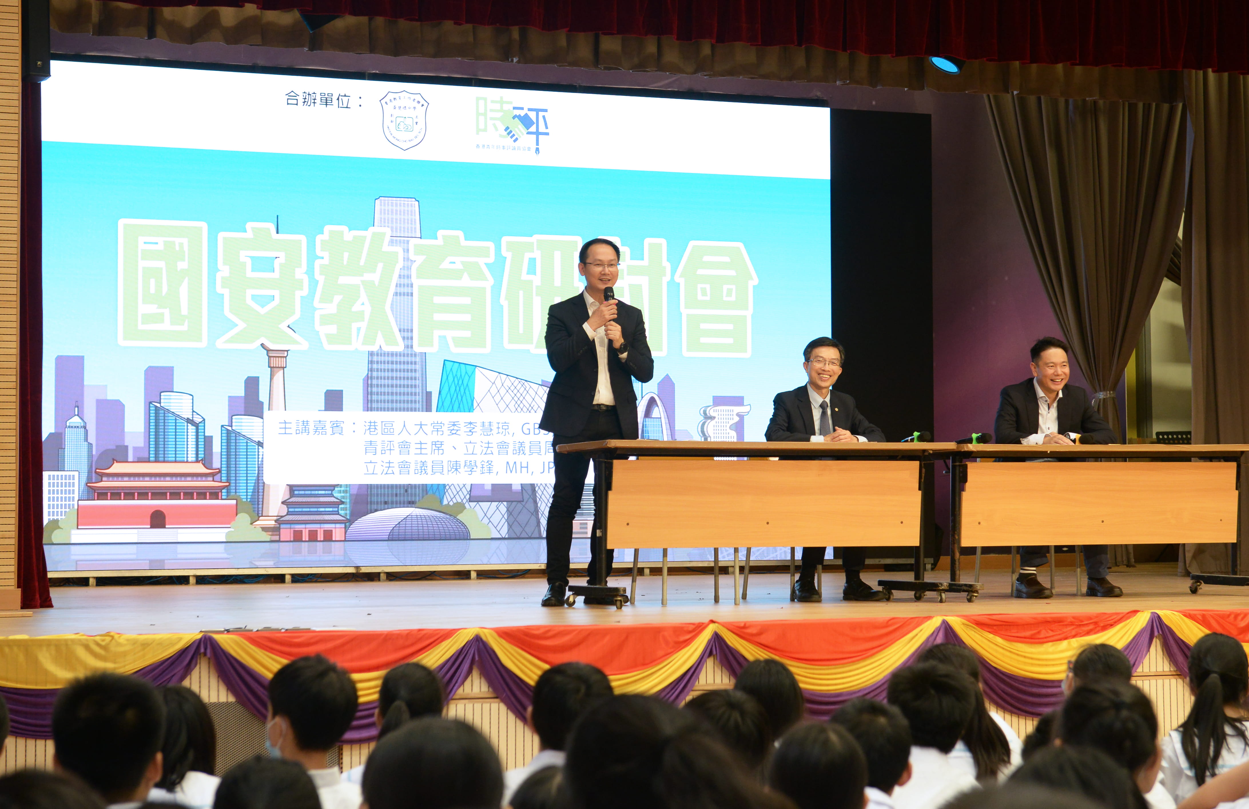 今天,我校與直播app青年時事評論員協會共同為初中學生主辦「國安教育研討會」,當中邀請到港區人大委員李慧琼議員GBS, JP、青評會主席周浩鼎議員JP及陳學鋒MH,JP蒞臨,以深入淺出的方式,探討與國安相關的內容。