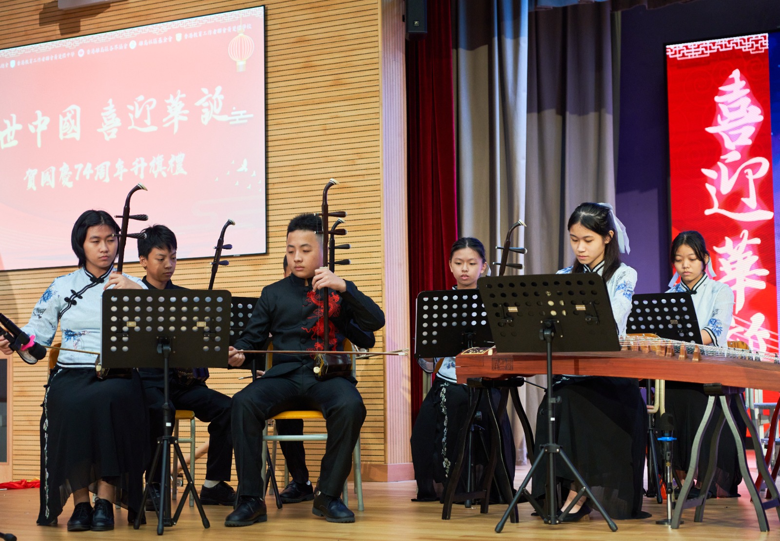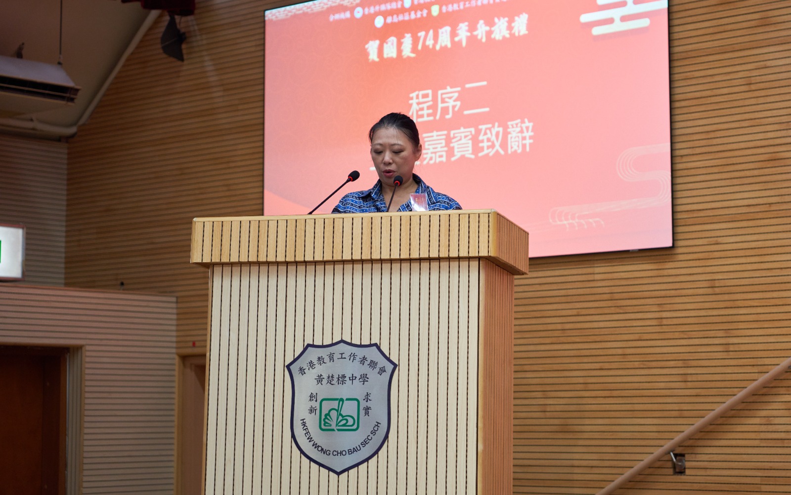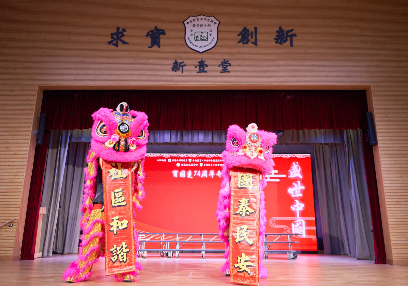 學生代表林明露同學發言時表示對祖國74周年的祝賀,並作為新時代青少年,學生們應該肩負起國家賦予大家的使命。而為慶祝中華人民共和國成立74周年,黃楚標中學及黃楚標學校的學生以中樂表演曲目《彩雲追月》、集誦「大寫的中國」、以「醒獅獻瑞賀國慶」為主題表演龍獅獻技、以主題單輪車「踏出新未來」表達對國慶的祝賀,全場參與者更以大合唱《今天是你的生日》是慶祝祖國成立四十週年時的一首紀念歌曲,由韓靜霆作詞,谷建芬作曲。作為壓軸,表現出中華兒女對祖國的真情表白和期望祖國和平、安寧、富強的真摯祝福更加深沉。
