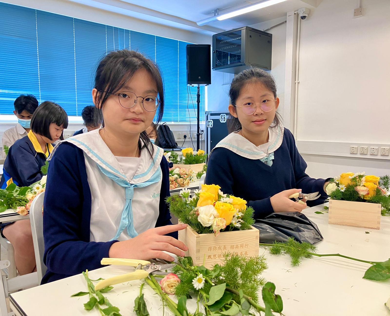活動當中學生們欣賞插花藝術,並跟導師學習插花技巧,最後每人完成自己的插花作品,在略有寒意的立冬時節,手捧著一盒芬芳與明媚完成整個活動。🪻🪻🪻