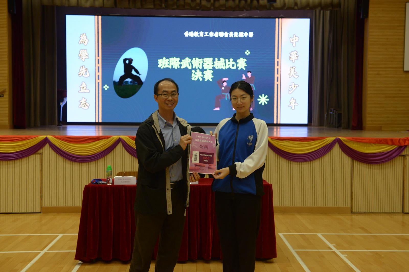 各班學生都非常投入,最終棍術及刀術的冠軍分別由2C班和4B班奪得,並獲得$500的體育用品禮券作為獎勵。再次感謝各班班主任的帶領及鼓勵,讓中國文化中的「武·德」得以流傳。☺