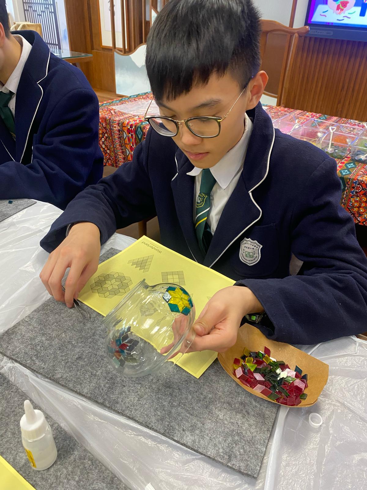 夜燈不過是平常的物品,但如果是自己親手製作的,便別具意義。為了讓學生認識工藝品製作技巧及舒緩壓力,我們舉辦了馬賽克燈工作坊。🎉