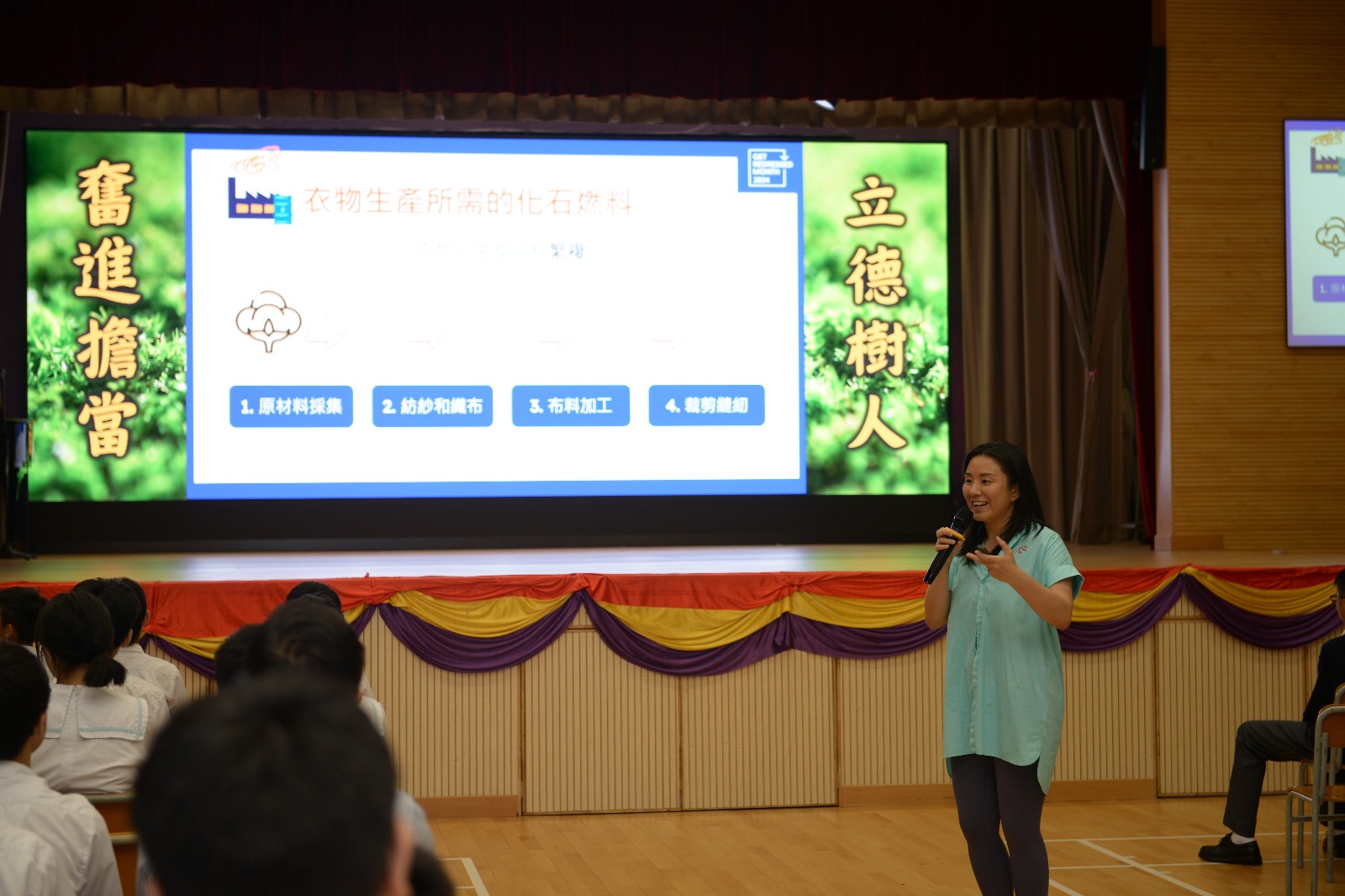 為加深初中同學對可持續時尚議題的認識,並提升他們對衣物再生概念的瞭解,本校邀請到環保非政府組織 Redress 進行互動講座。過程中,學生反應積極,并對衣物再生概念有新的認識。