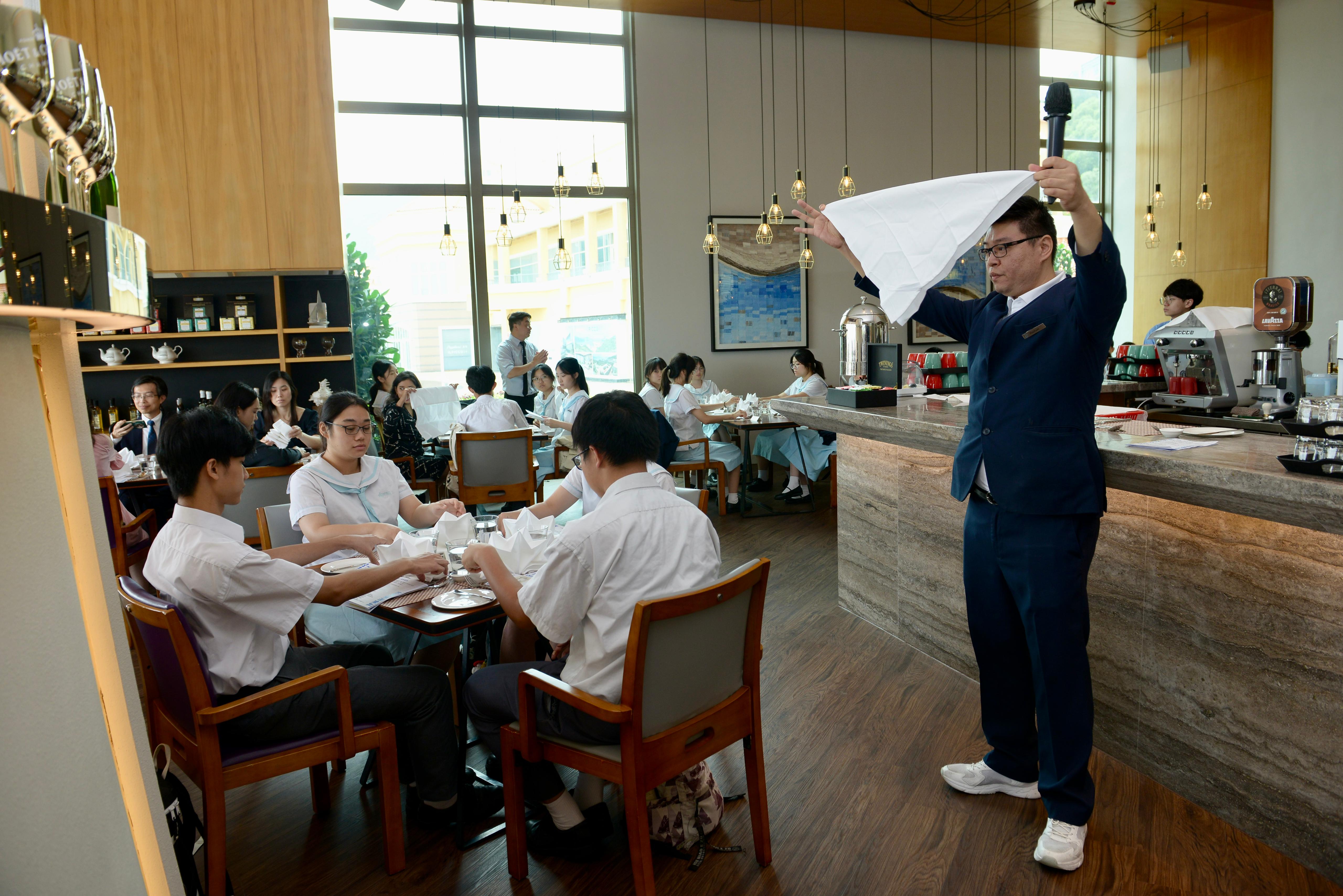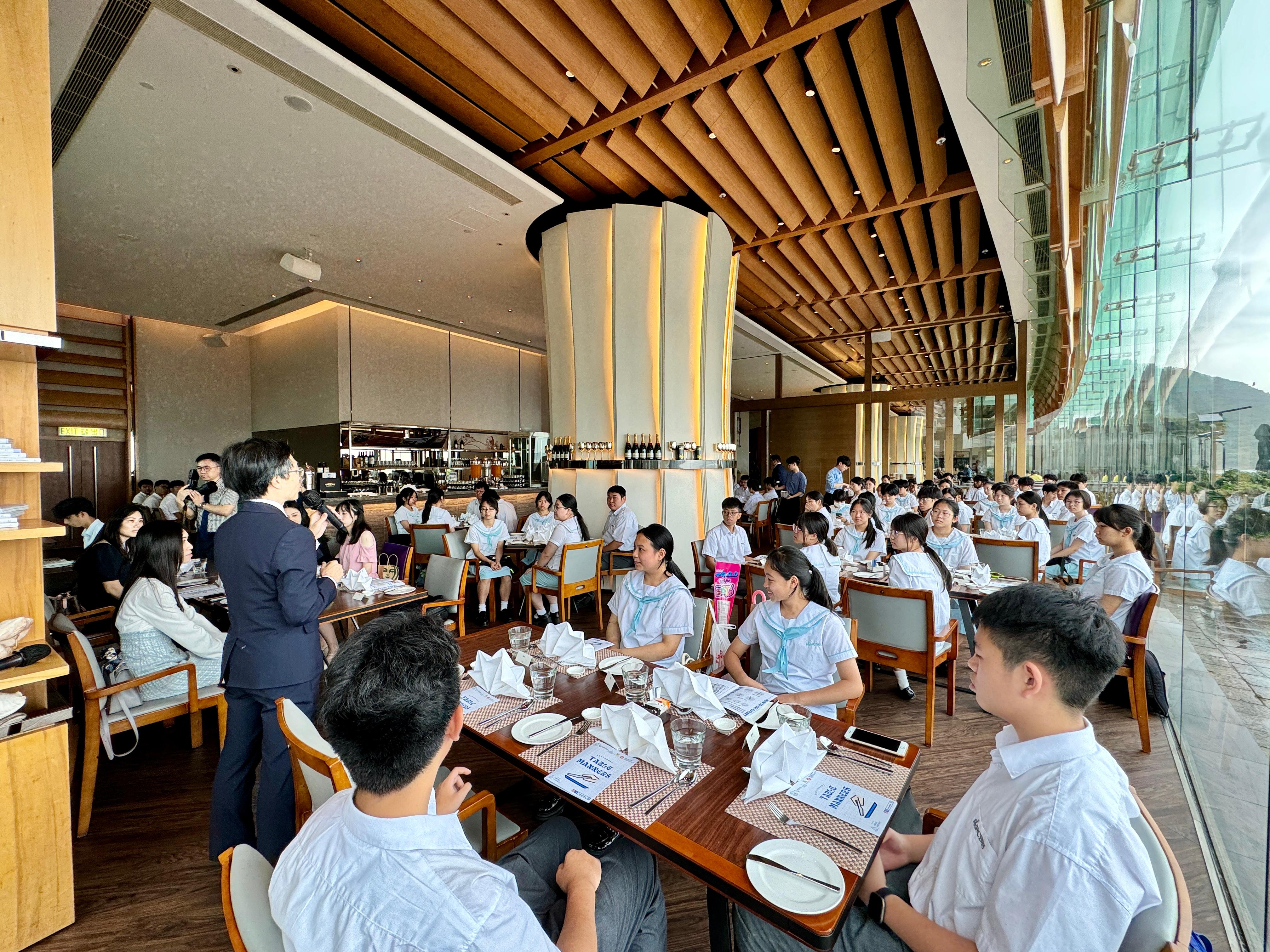 今天下午,學校在直播app愉景灣酒店舉行了「明德學堂」的啟動聚餐宴。學生們和老師們一同品味美味的午餐,同時,酒店特意安排了一個教授餐桌禮儀的環節。這次環節不僅讓學生們學習到西式餐桌禮儀的細節,同時也讓他們在迷人愉景灣海景的環境中享受美食,這絕對是一段難忘且極為寶貴的時光。