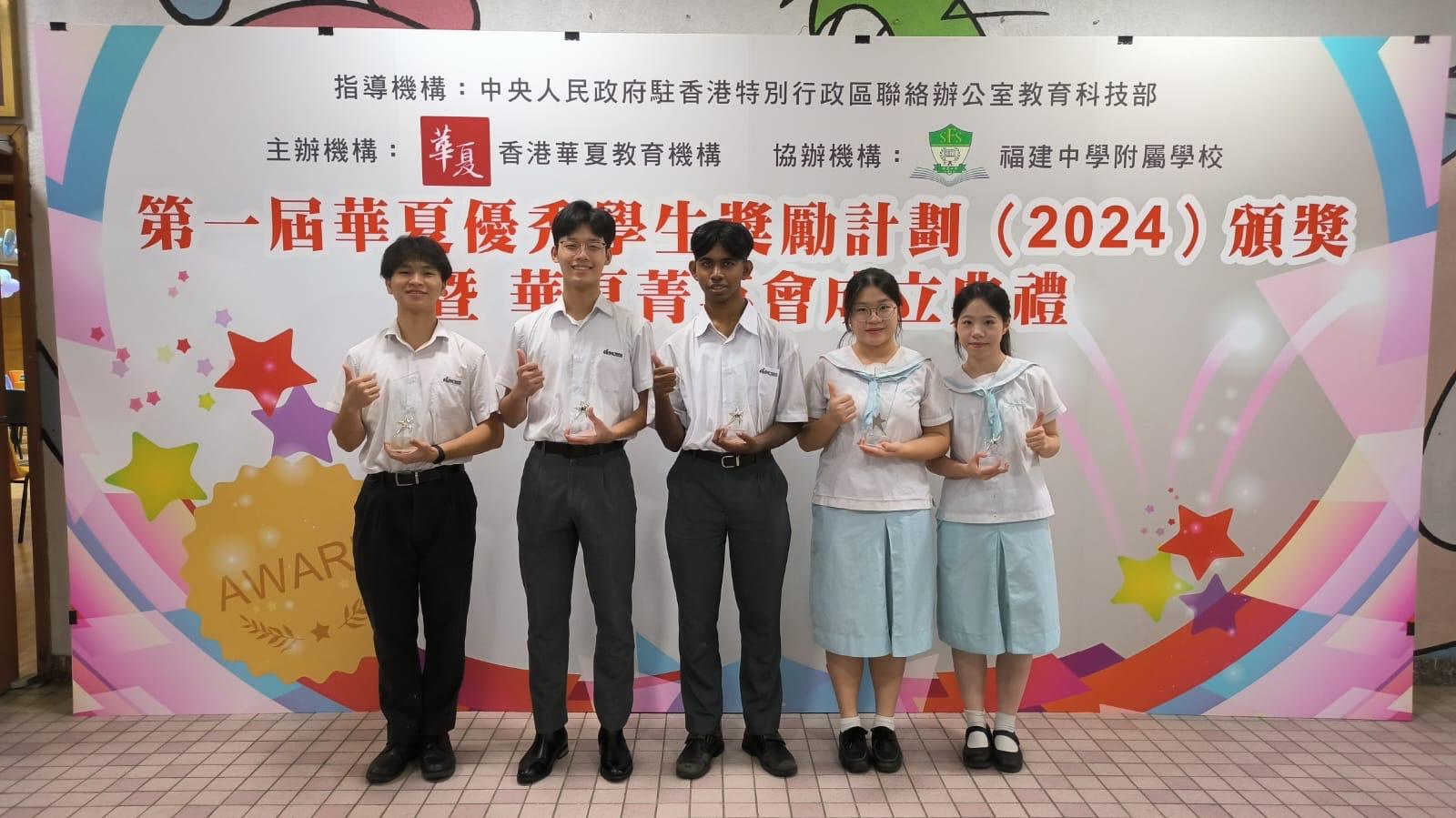 5W劉戰、5W呂俊鋒、5W李世光、5B林卓盈和5B陳柯穎獲邀出席「第一屆華夏優秀學生獎勵計劃(2024)頒獎暨華夏菁英會成立典禮」,並分別獲頒傑出學生獎、最佳領袖才能獎、最佳服務精神獎、最佳才藝獎和最佳創新創意獎。🎖