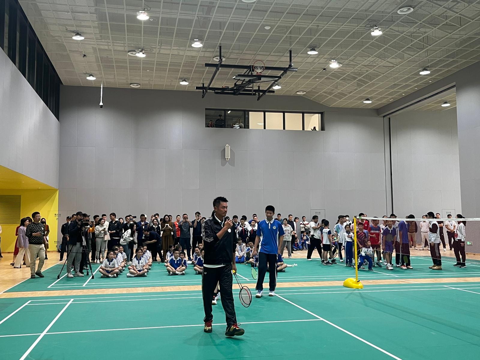 我校參加了深圳寶安區海天校區羽毛球課例展示半天學習活動。由中國史上最強羽毛球運動員、集大滿貫於一身的林丹「超級丹」設計羽毛球訓練,且廣泛推廣及應用至深圳寶安海天校區中。是次活動師生可以了解到海天校區體育課的示範,同時也可近距離欣賞到世界冠軍林丹精彩的獻技。學生難得親眼目睹偶像,不忘索取偶像簽名,呂俊鋒同學更獲林丹親手送出唯一的訓練球拍,獲全場起哄,活動也在歡呼聲完滿結束。