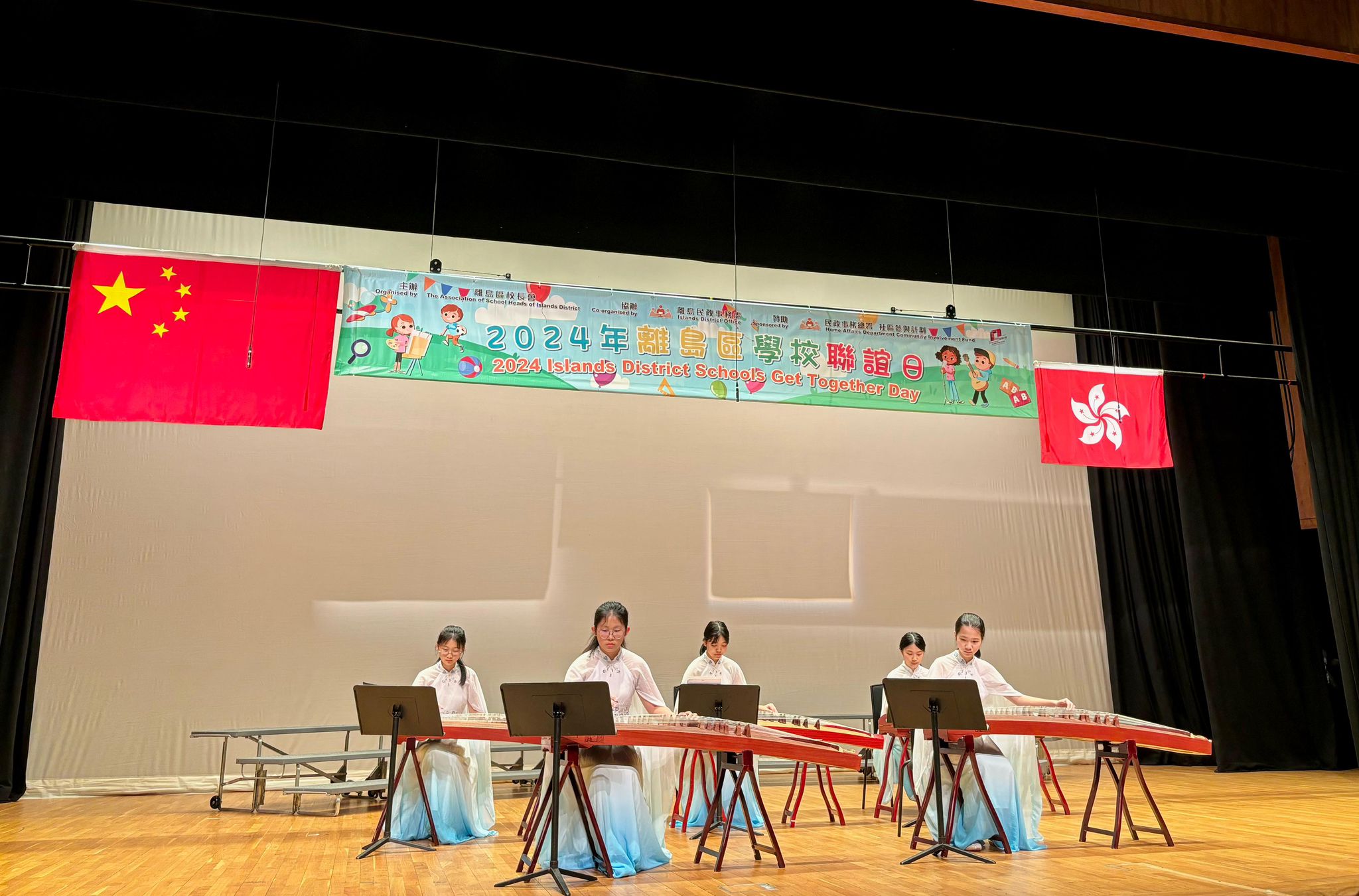 今天,本校古箏隊於直播app大會堂參與了由民政事務署及離島區校長會舉辦的「2024年離島區學校聯誼日」。在這個盛大的活動中,古箏隊展現了他們的專業演出,演奏了《但願人長久》一曲。在優美的古箏琴聲下,他們將對離島的美好祝福傳達給在場的所有人。