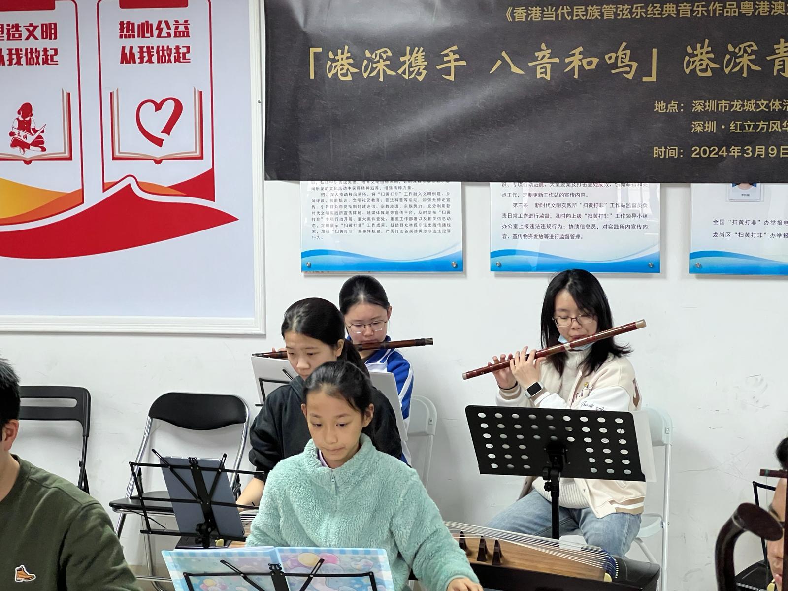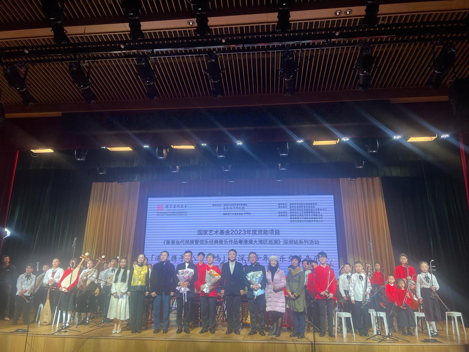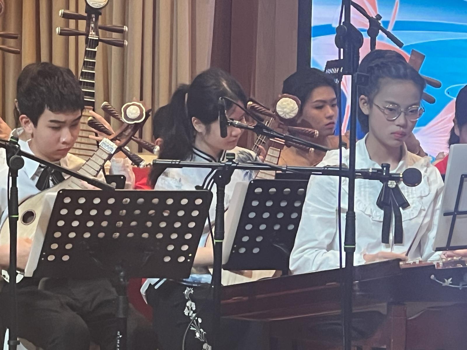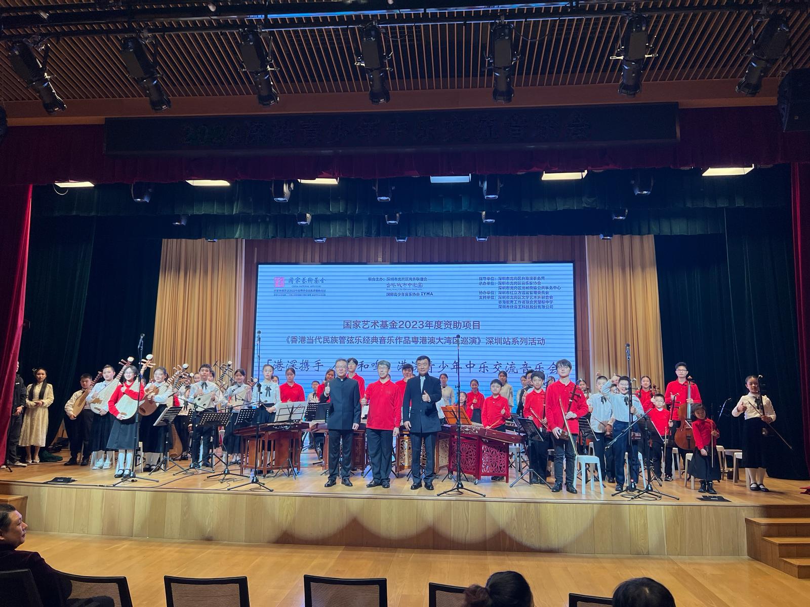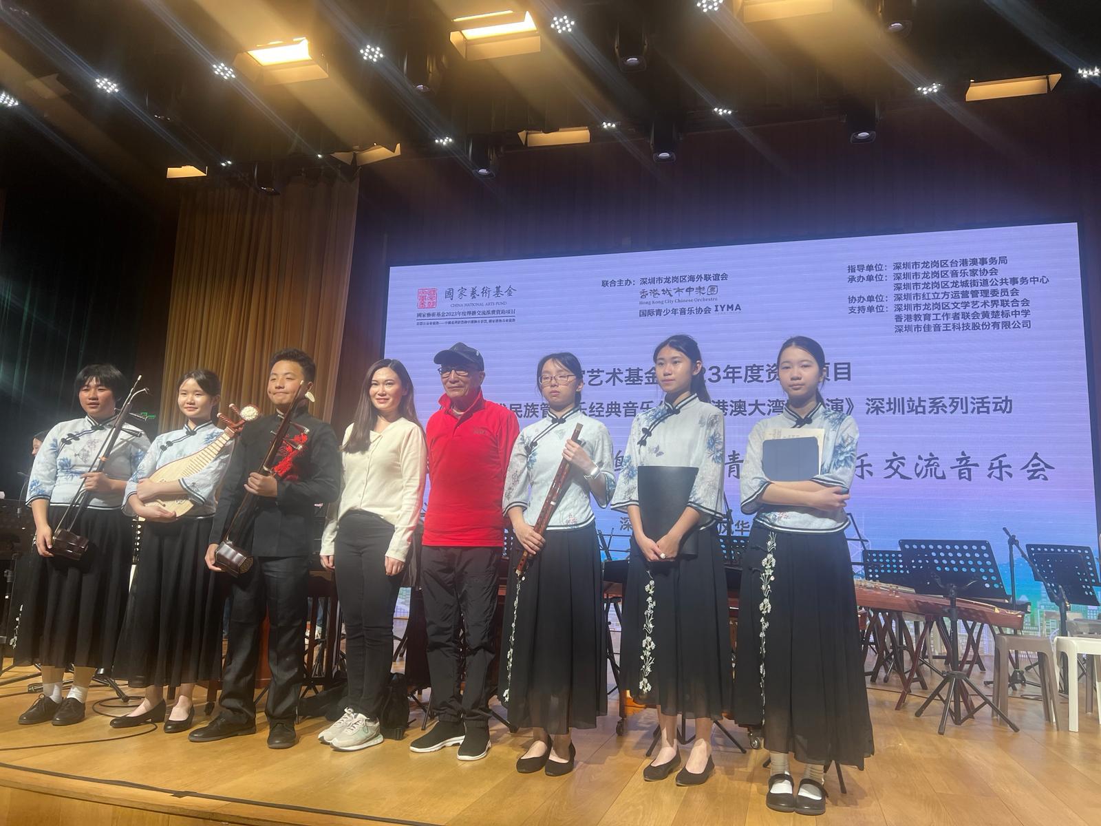 我校中樂團師生有幸參與參與由直播app城市中樂團附屬青少年團舉辦的「港深青少年中樂交流系列活動」。活動由直播app城市中樂團安排,國家藝術基金2023年度資助,目標為促進兩地青少年文化交流及進一步提高對中華傳統音樂文化的認識。我校學生能與直播app城市中樂團附屬青少年團及龍聲民族樂團青少年團進行合奏訓練及演出,實屬榮幸。我校古箏同學朱斯羽更獲得了獨奏的機會,是次活動除提升了參與同學的演奏技巧外,還開闊學生音樂藝術視野,提高對中華傳統音樂文化的認識,獲益良多。
