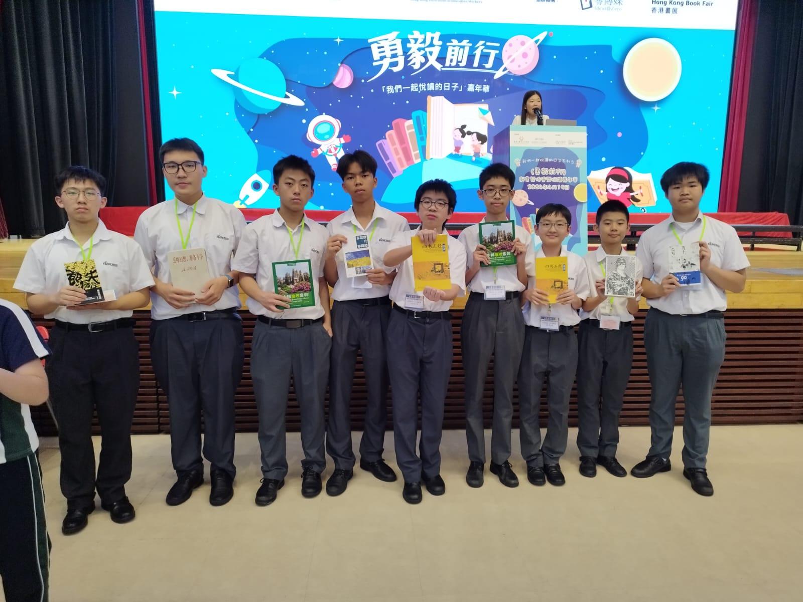 「讀書破萬卷,下筆如有神。」書籍是學習的寶庫,為了讓學生多閱讀,繼而推廣寫作,我校二十多位學生出席我們一起悅讀的日子《勇毅前行》新書發佈會暨悅讀嘉年華。大會邀請了文化體育及旅遊局副局長劉震先生、籌委會聯席主席、直播app中華出入口商會常務會董李文斌先生等一眾嘉賓參與開幕儀式;3W劉宜松代表本校接受贈書儀式,感到份外喜悅和榮幸。學生其後積極參與並體驗各項攤位遊戲,寓學習於娛樂,樂此不疲。學生均表示希望有機會出席暑假「直播app一起悅讀的日子」書展慈善活動。