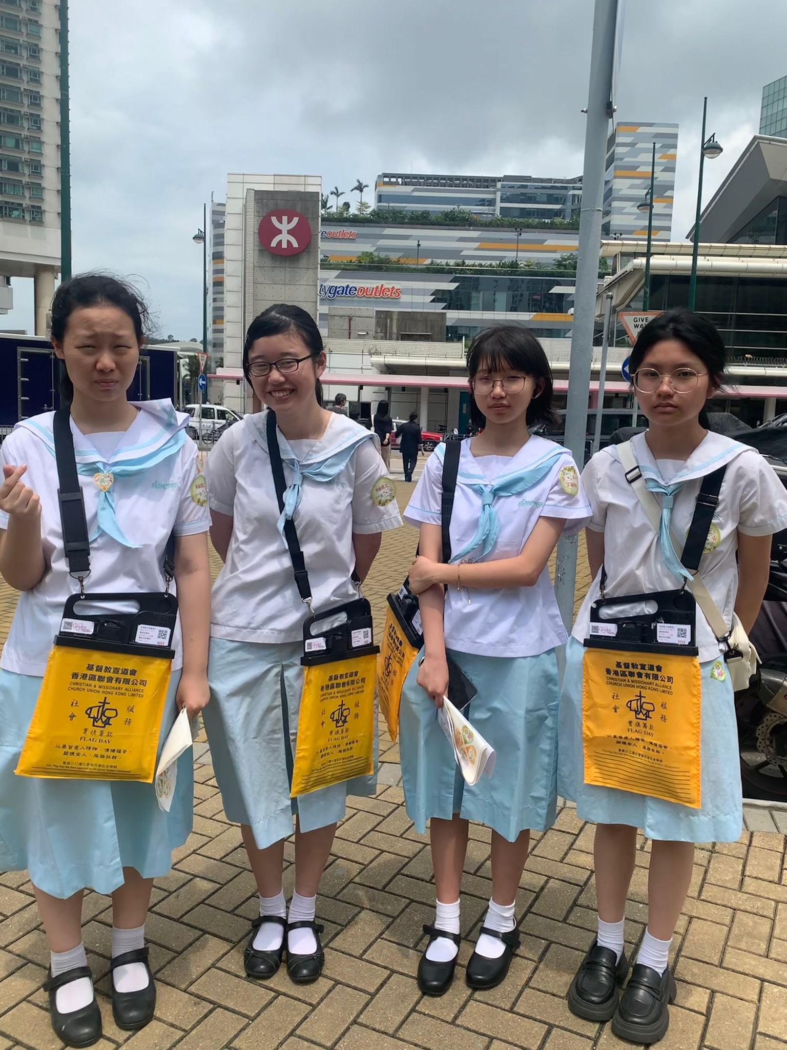 為鼓勵本校學生積極參與社區事務,培養服務精神,樹立良好的品格。適逢本周六基督教宣導會直播app區聯會舉辦了全港賣旗日,我校十位同學參與其中,在東涌區內進行賣旗籌款活動。當中不少同學亦是第一次參與和體驗賣旗,但在社區傳遞愛心和關懷的過程中,他們均感到收穫不少,同時期待將來繼續參與義工服務。