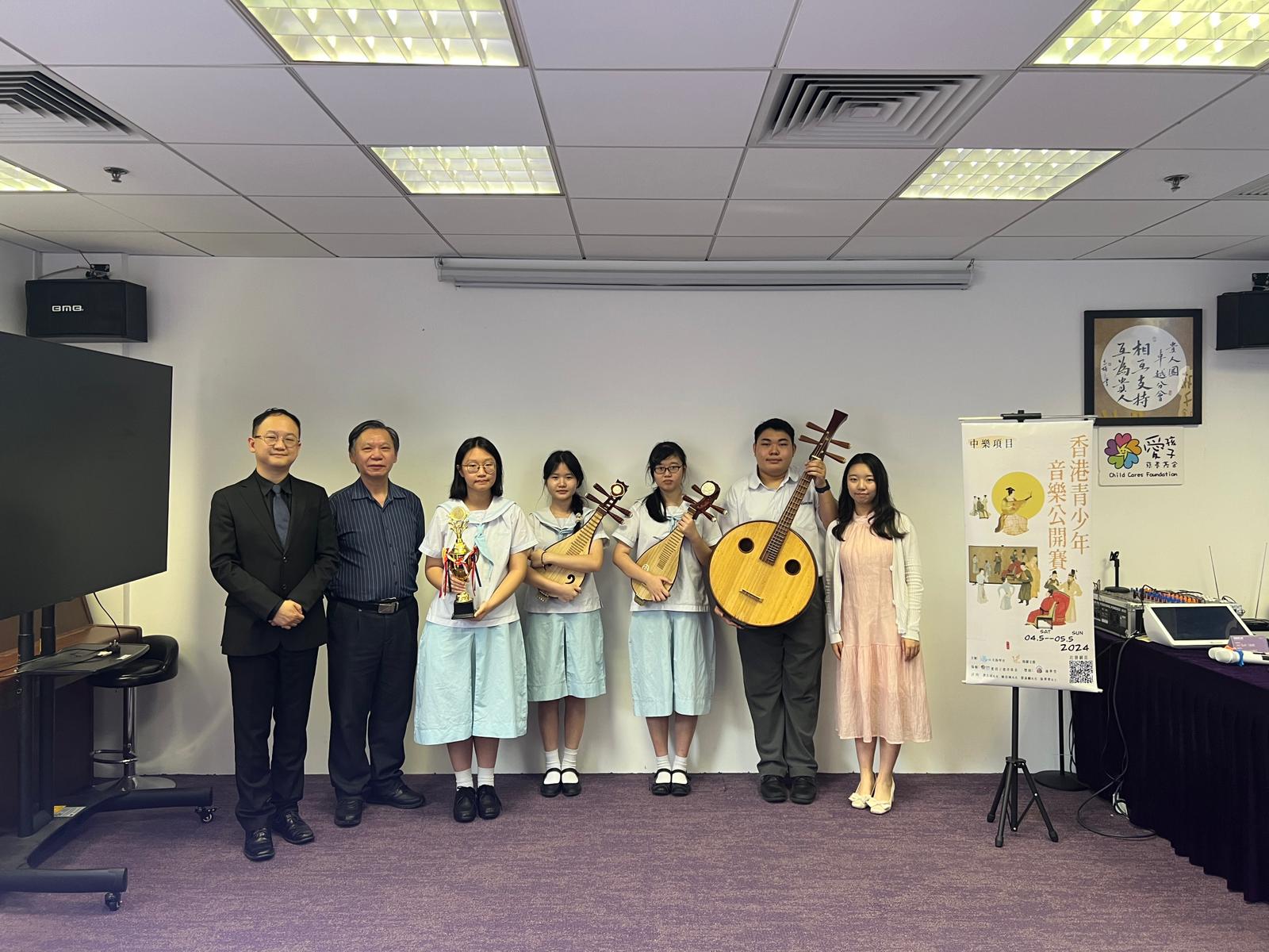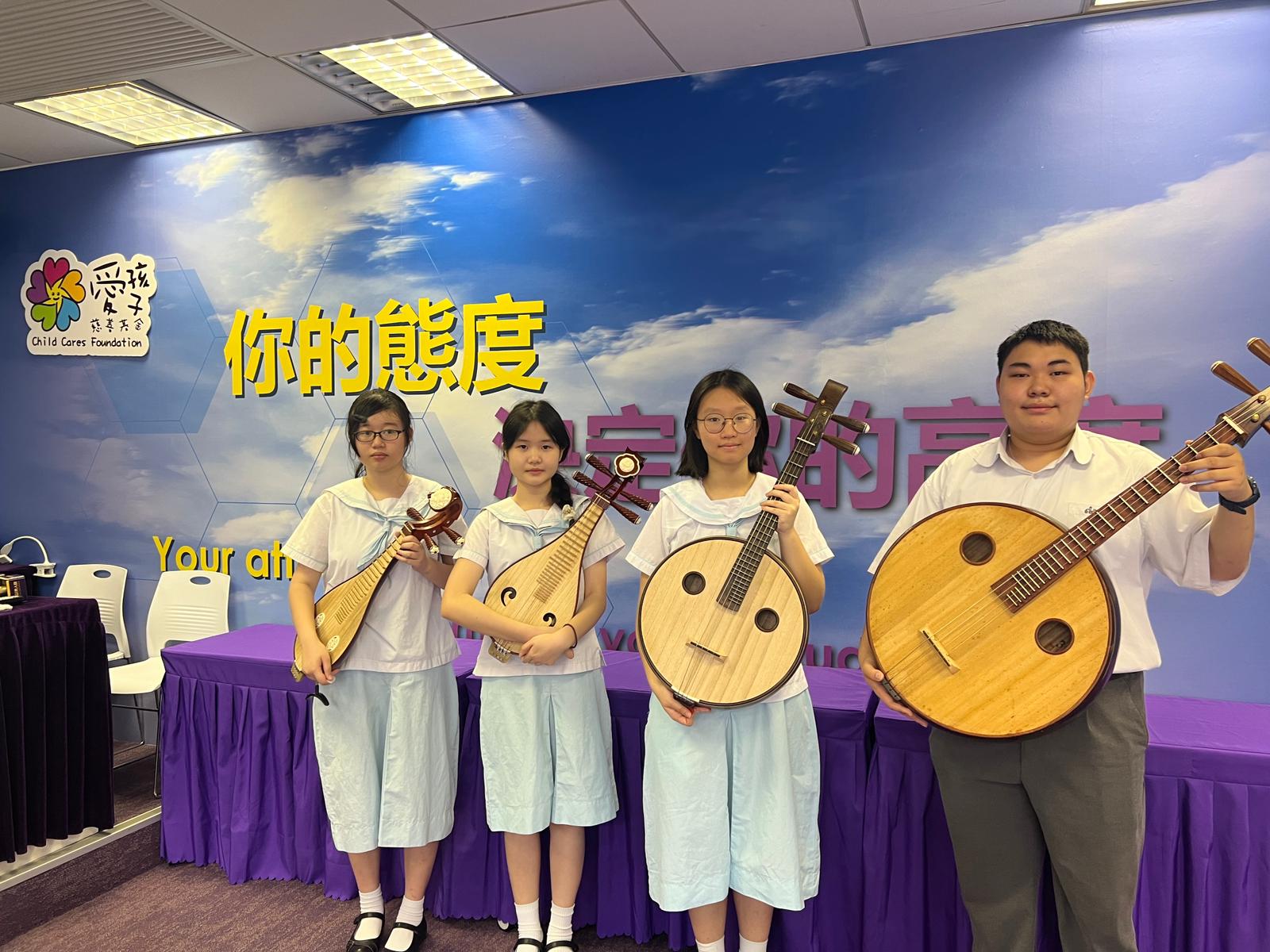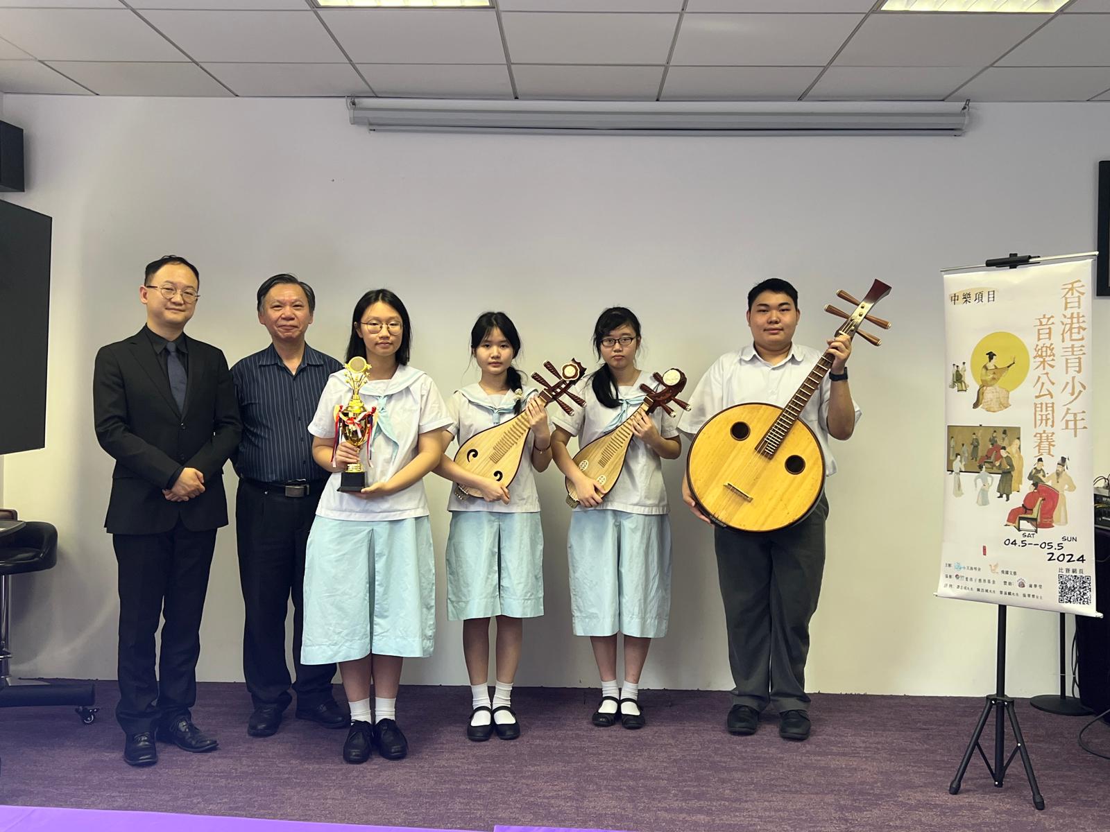中樂組四位同學參與「直播app青少年音樂公開賽2024」中阮柳琴合奏比賽,表現出色,獲得佳績。比賽過程中雖有緊張,但仍能克服緊張發揮如常,這離不開她們的勤奮練習。比賽結束後獲得評判的專業點評及指導,讓同學明白合奏的要領及如何提升演奏技巧。四位同學經過今次的比賽,累積了比賽經驗,也增強了對中樂合奏的興趣。