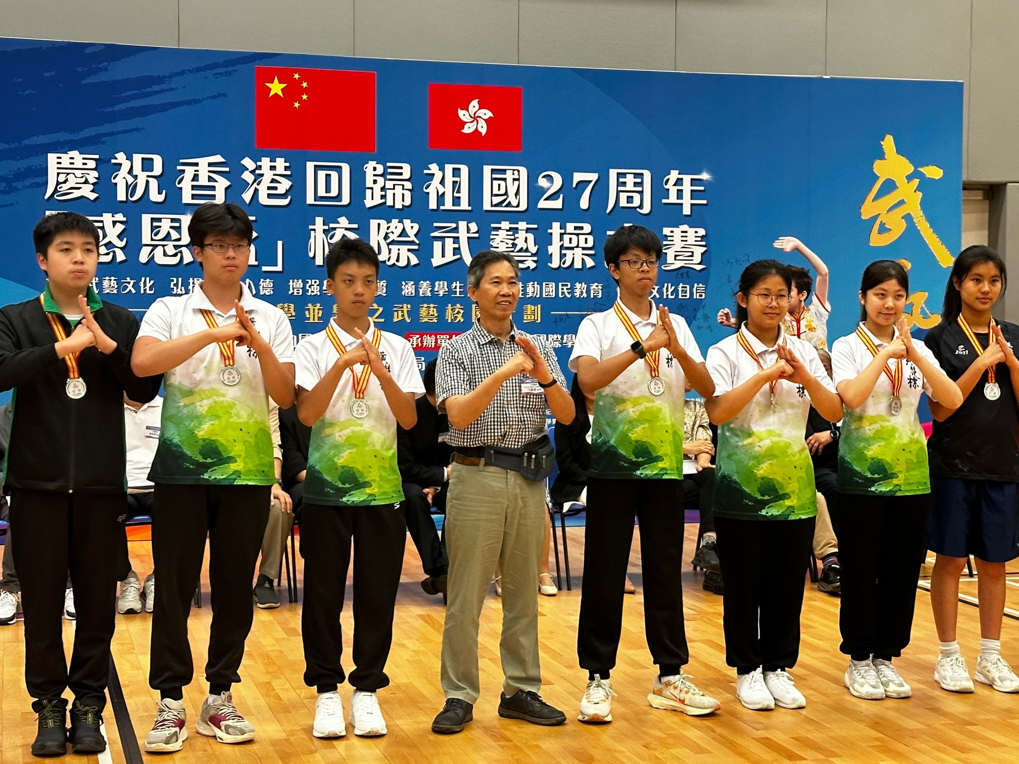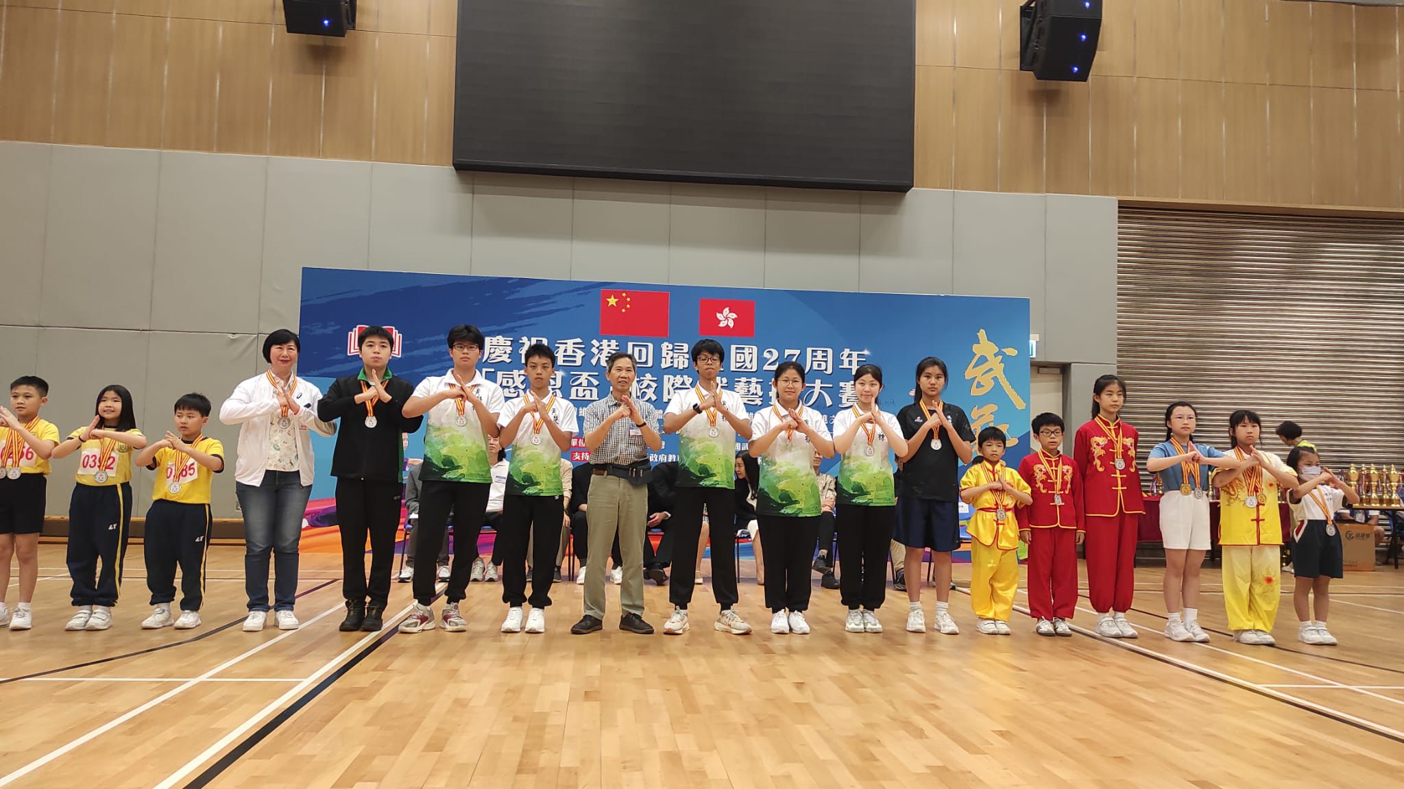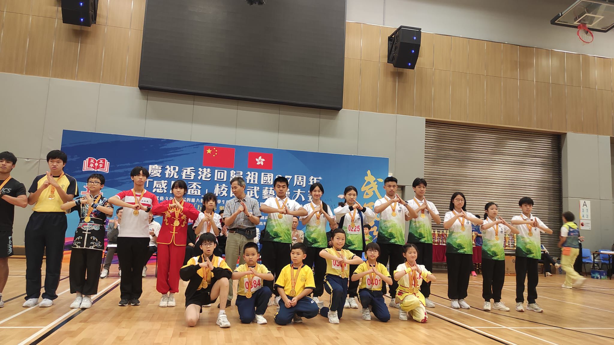 踏入五學並舉之武藝校園計劃第二年,全港中小學參與數目增至約40間。今年的「感恩杯」比賽可謂激烈非凡,每位選手在舞台上盡情展現出他們的武藝英姿。我校的學生無論是在集體武藝操還是個人比賽項目中,默默耕耘追求個人突破,最終獲得了不俗的成績。
