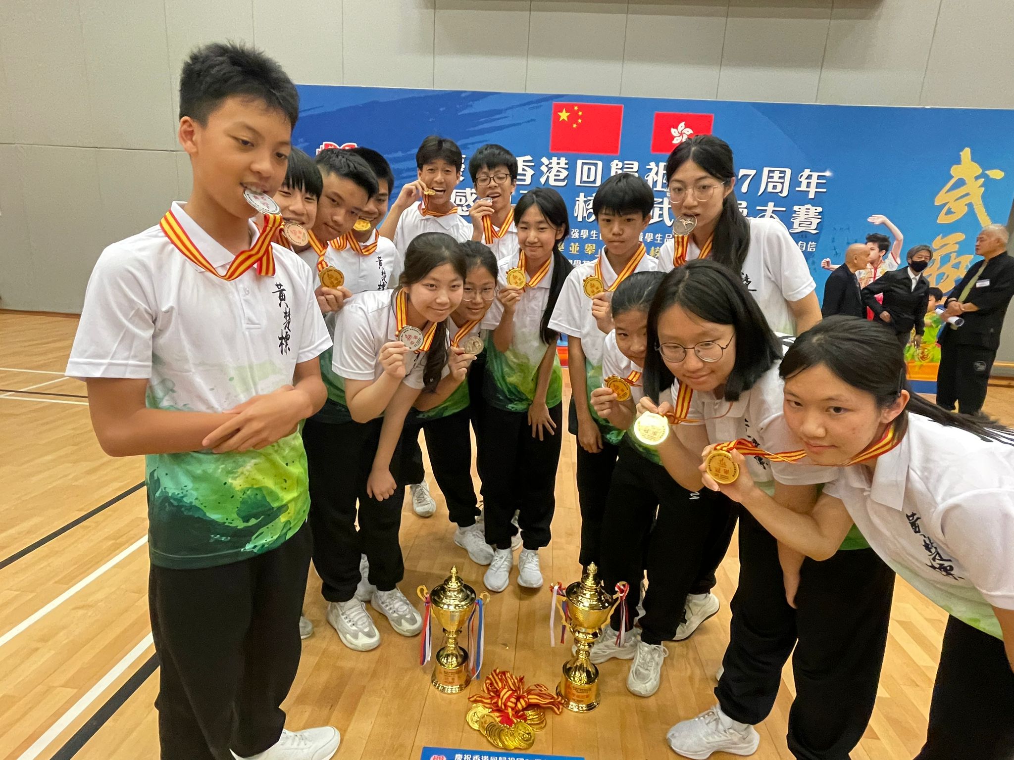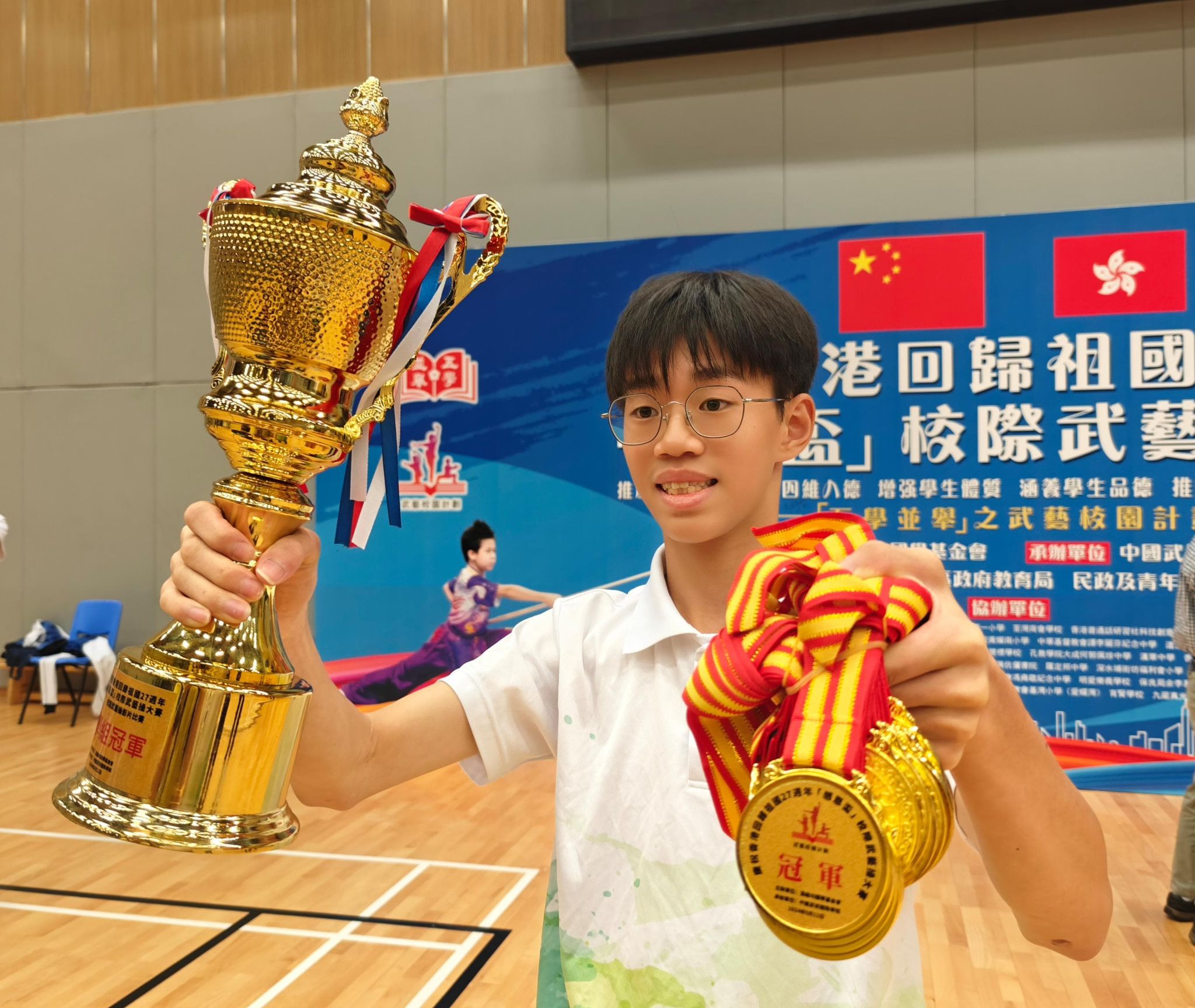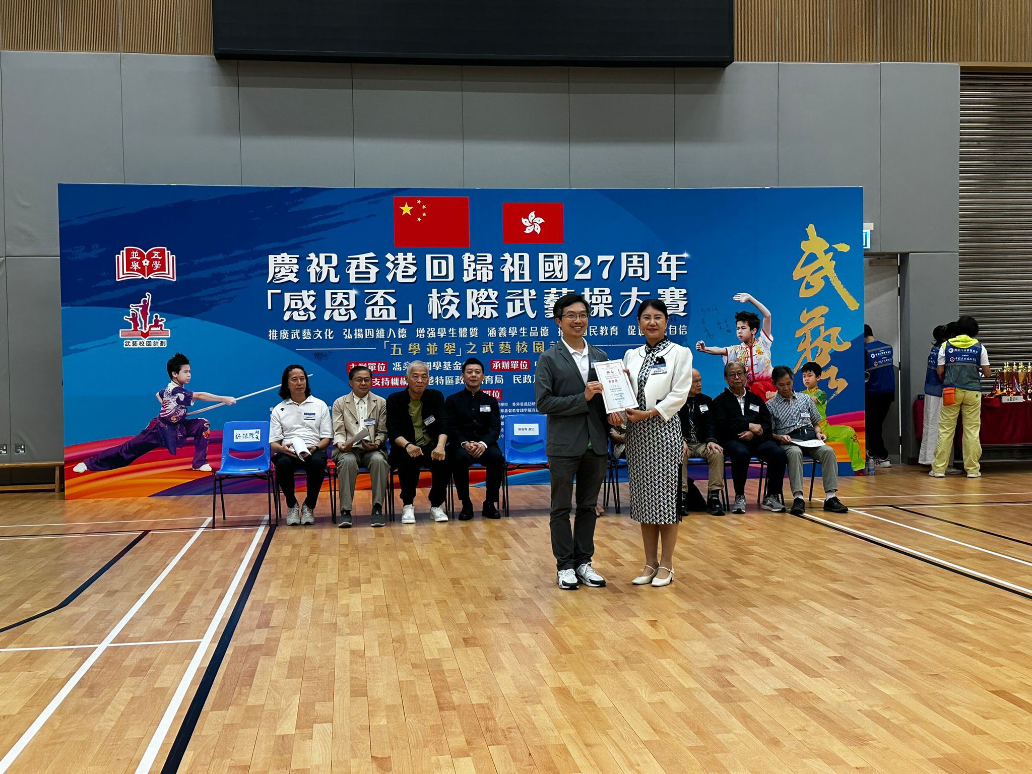踏入五學並舉之武藝校園計劃第二年,全港中小學參與數目增至約40間。今年的「感恩杯」比賽可謂激烈非凡,每位選手在舞台上盡情展現出他們的武藝英姿。我校的學生無論是在集體武藝操還是個人比賽項目中,默默耕耘追求個人突破,最終獲得了不俗的成績。