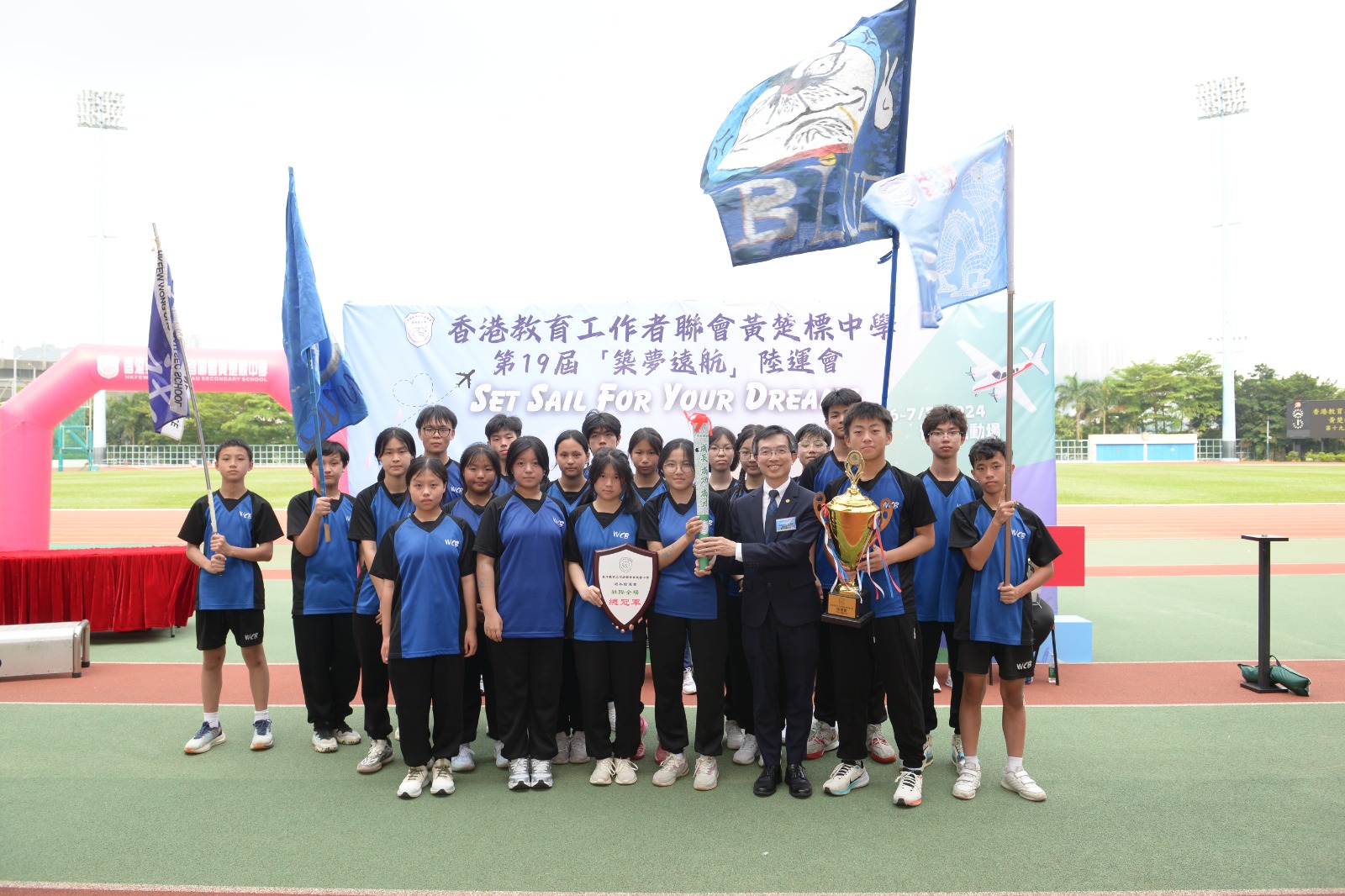 這次運動會以「築夢遠航」為主題,象徵著學生和老師在競技場上付出辛勤努力,實現了各自不同的夢想。而今年首次舉行的燃點夢想火炬儀式,寓意著我校的同學們通過努力學習和自我提升,在德、智、體、群、美各方面都獲得了豐碩的成長。他們向著無限廣闊的天空高飛,不僅在這次運動會中熠熠生輝,更將這種全力以赴的體育精神傳承給未來的每一屆學生和教師。